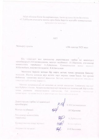 2022-2023 оқу жылындағы мектеп асханасына тексеру жасалып, акт жасау