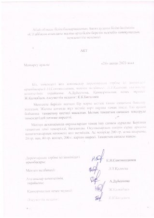 Тамақтың сапасын тексеру туралы АКТ