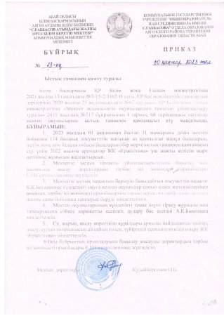 Ыстық тамақпен қамту туралы бұйрық