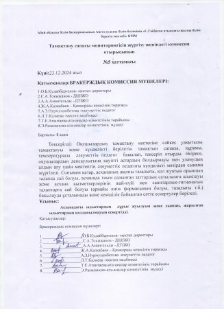 Бракераж комиссиясының хаттамасы Желтоксан