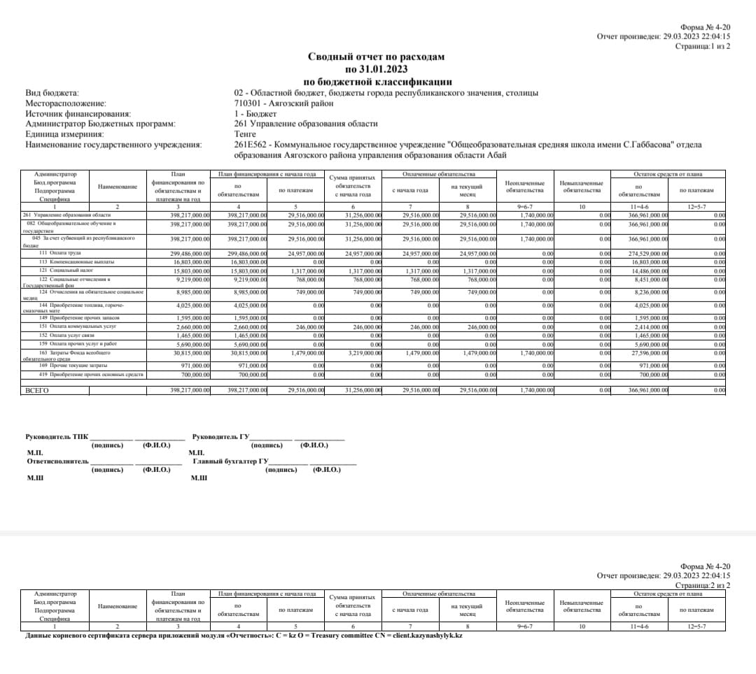 » Сводный отчет по росходам