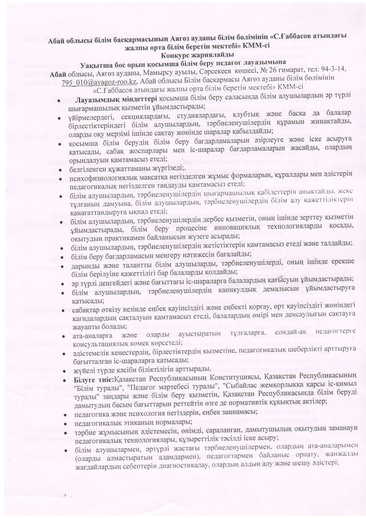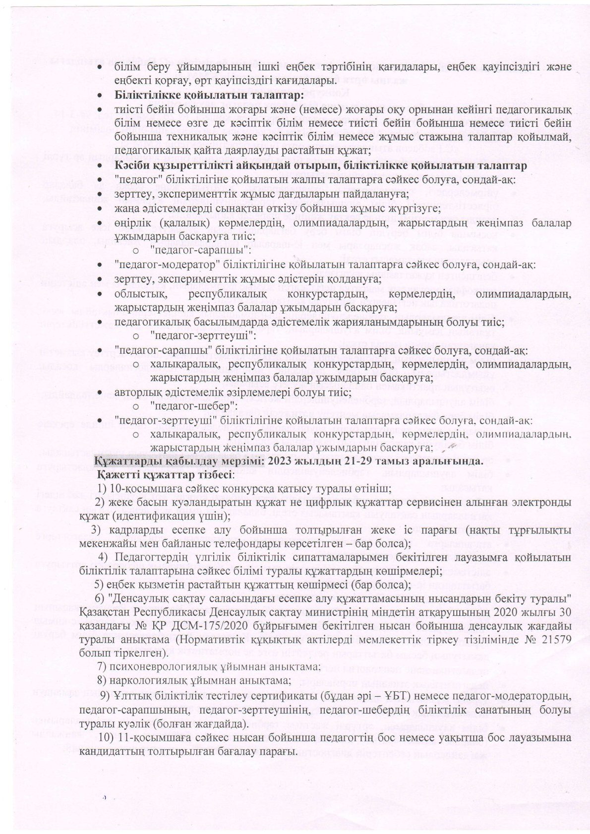 » Конкурс. Уақытша қосымша білім беру педагогі