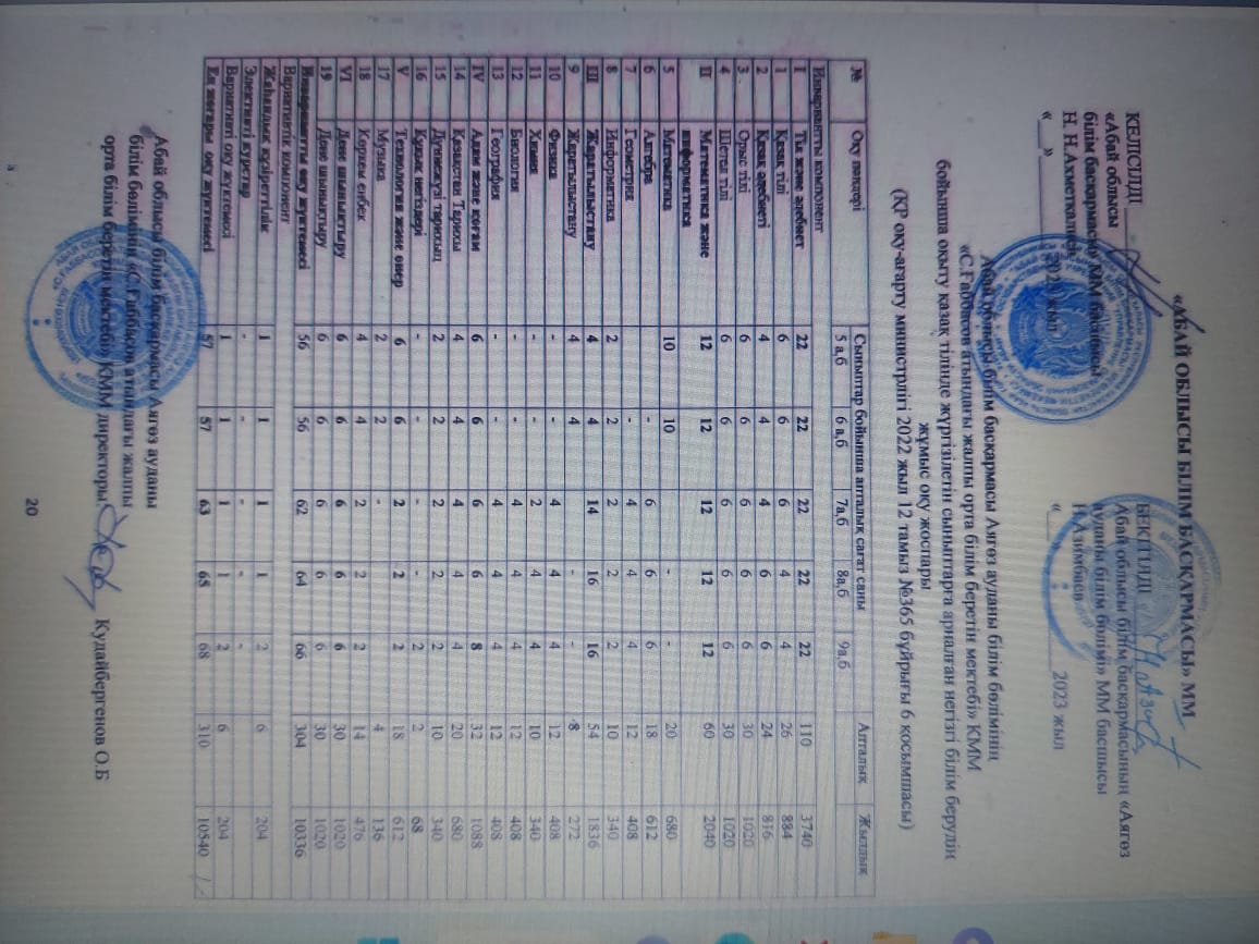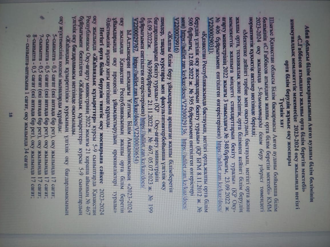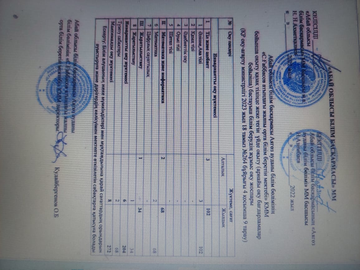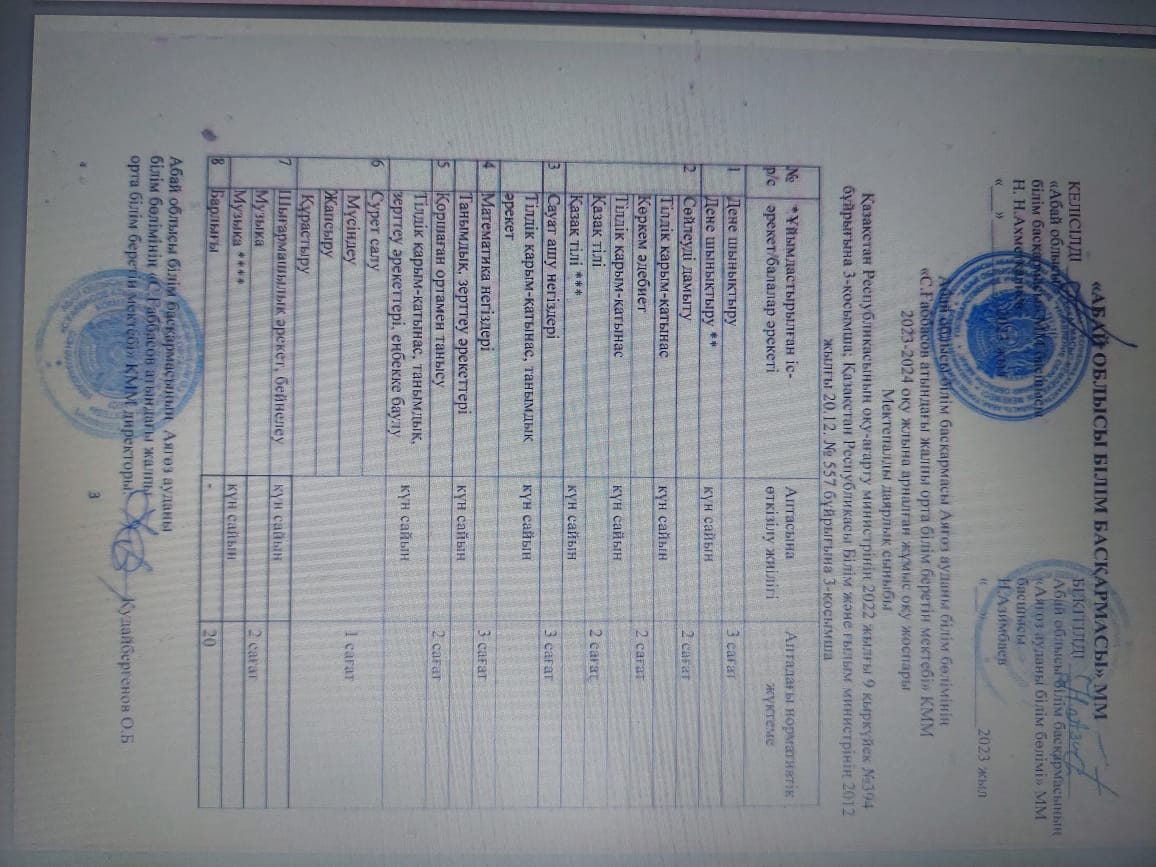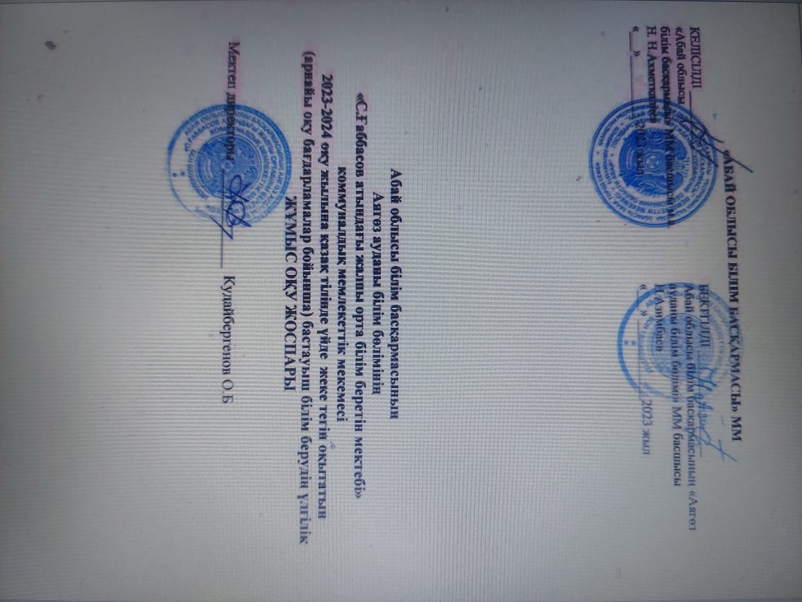 2023-2024 Оқу жылы жұмыс оқу жоспары