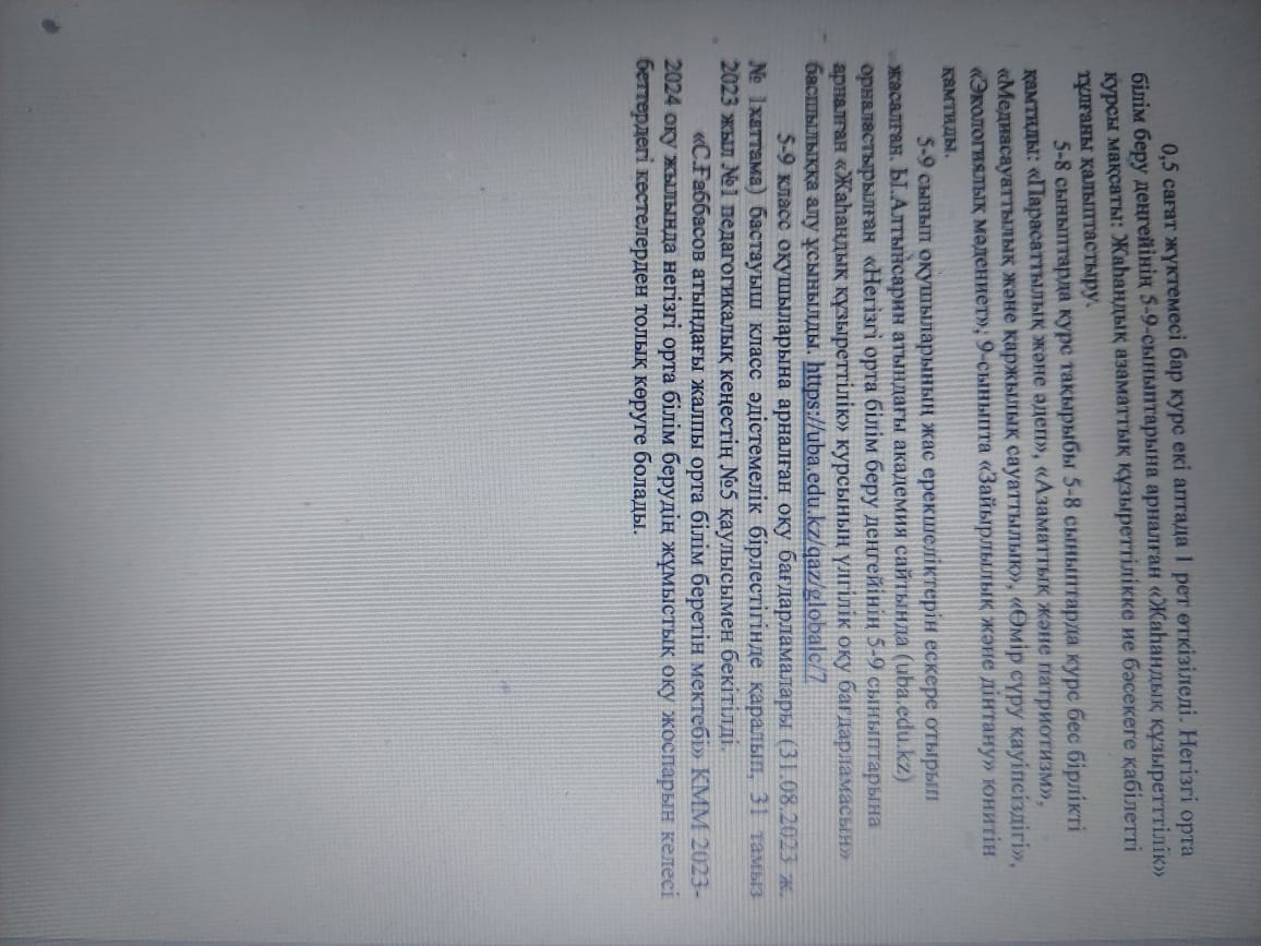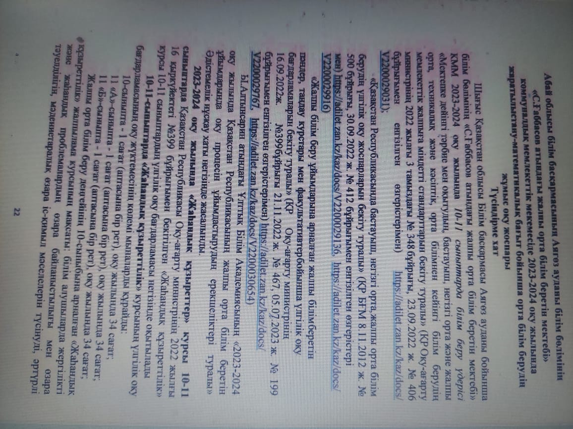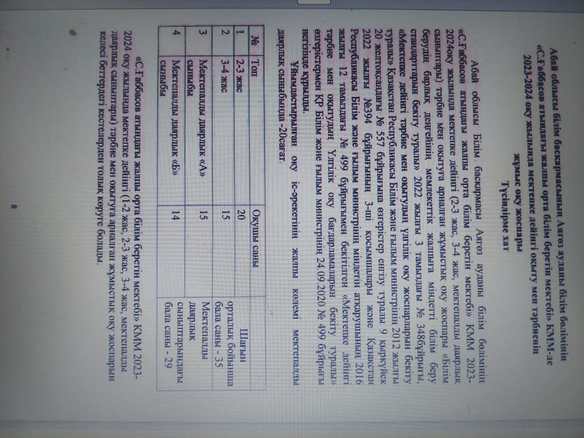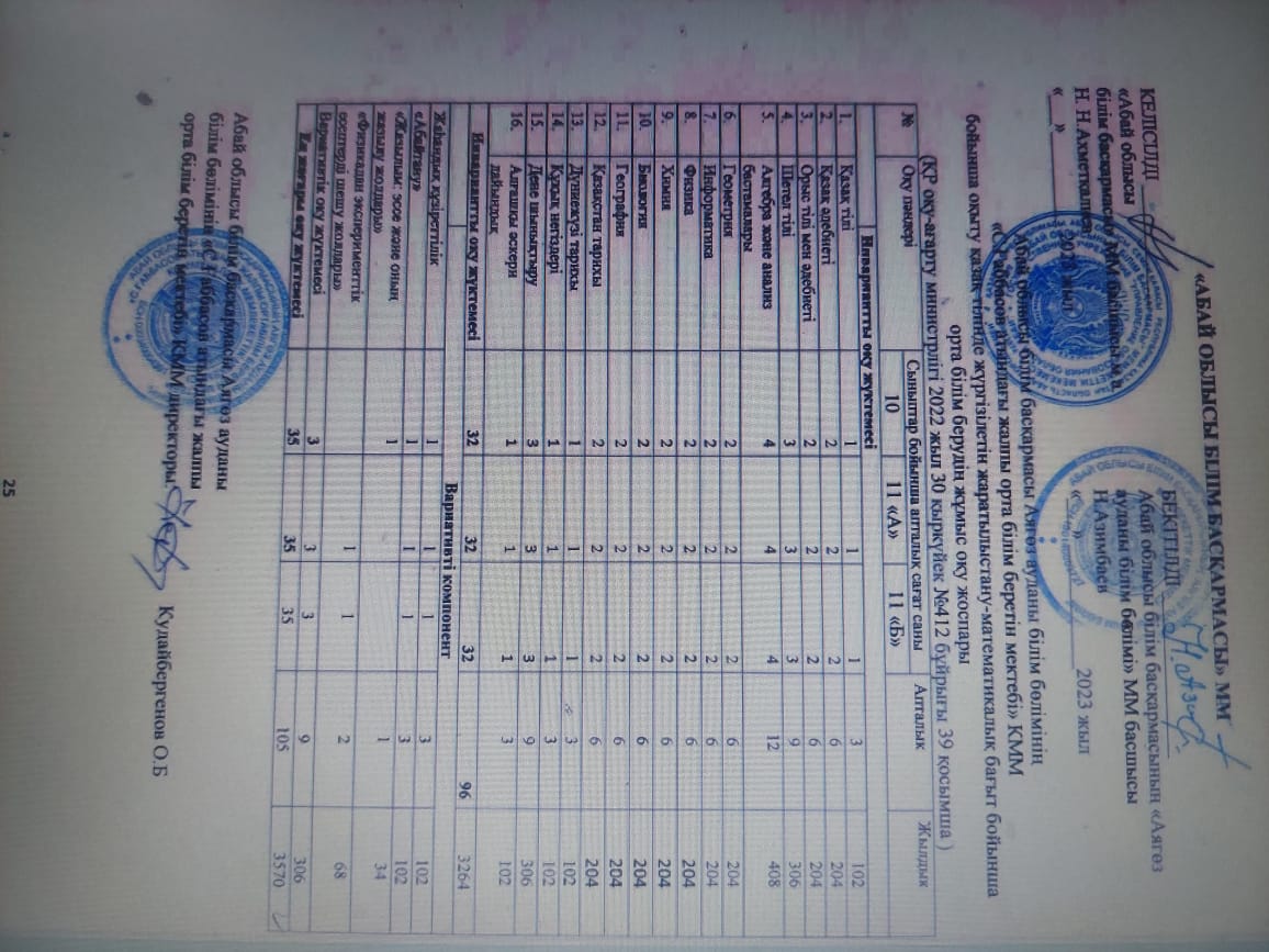 2023-2024 Оқу жылы жұмыс оқу жоспары