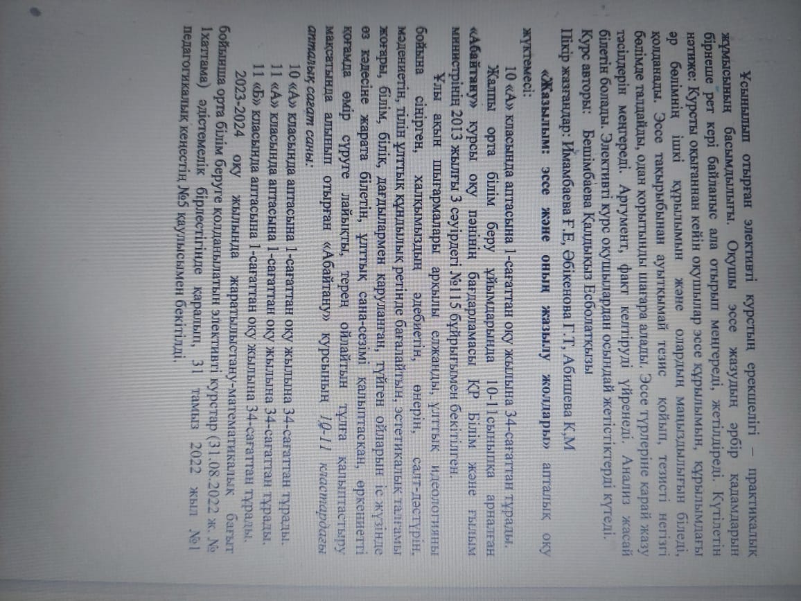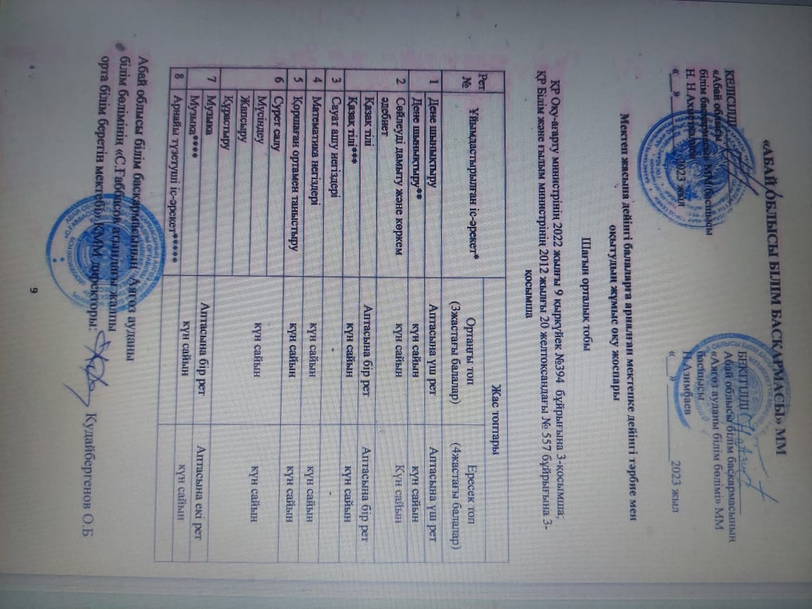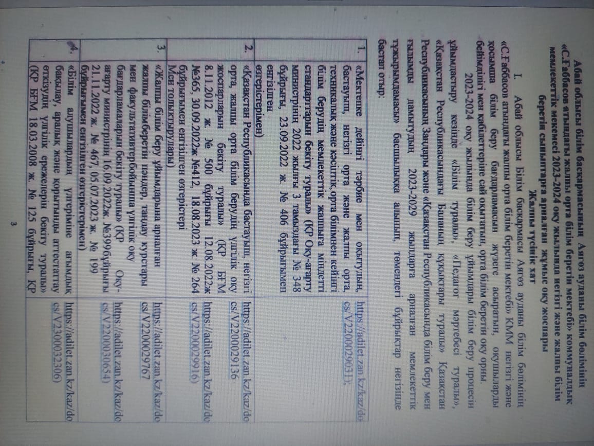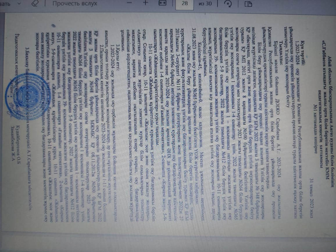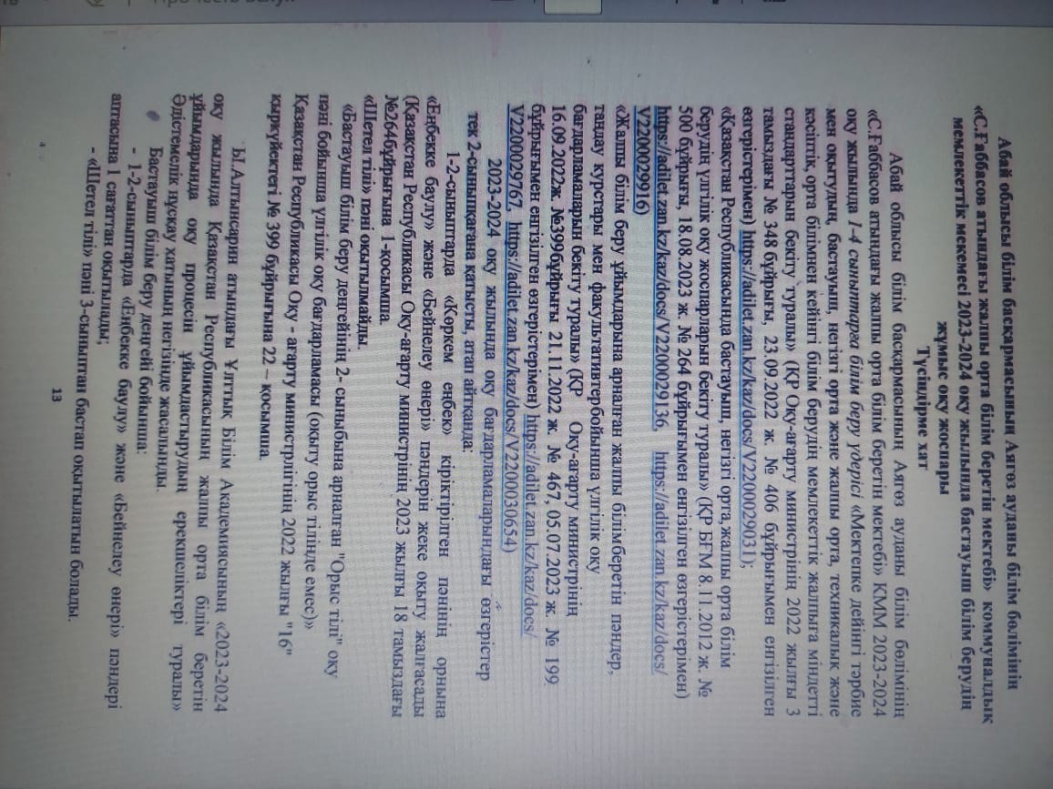 2023-2024 Оқу жылы жұмыс оқу жоспары