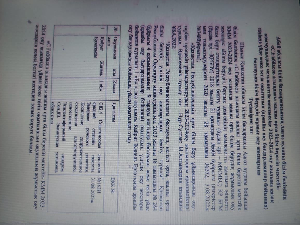 Абай облысы білім басқармасының Аягөз ауданы білім бөлімінің «С. Ғаббасов атындағы жалпы орта білім беретін мектебі»