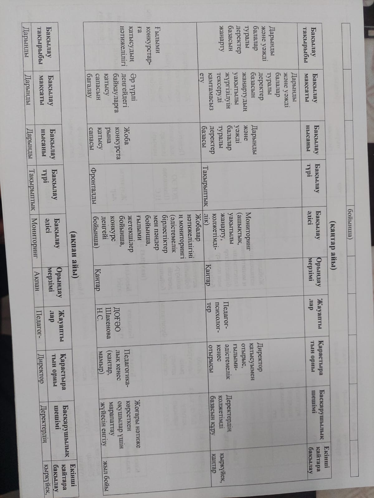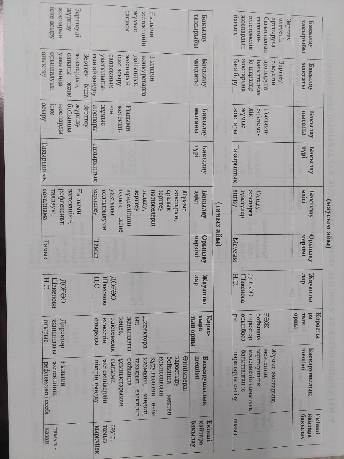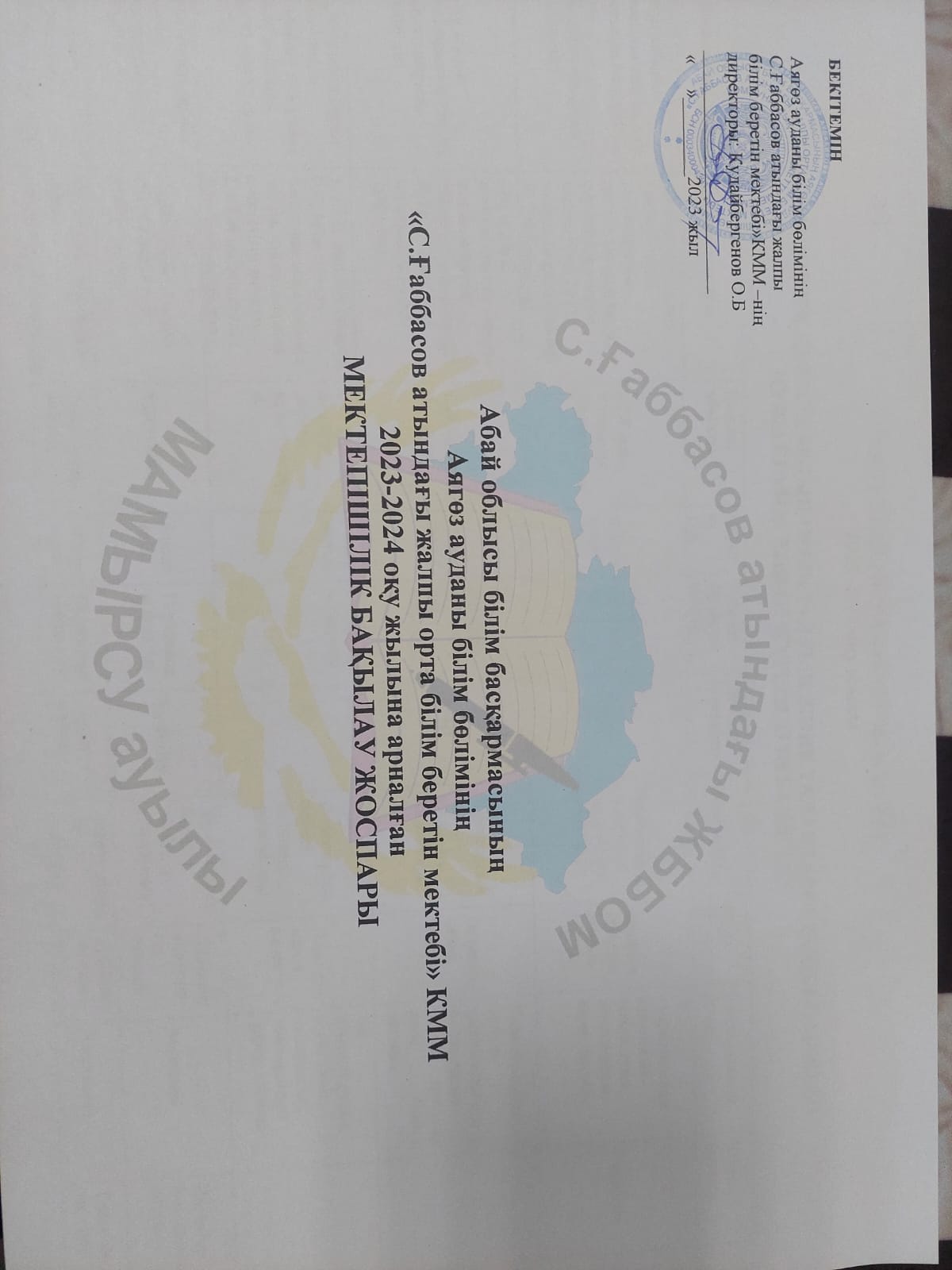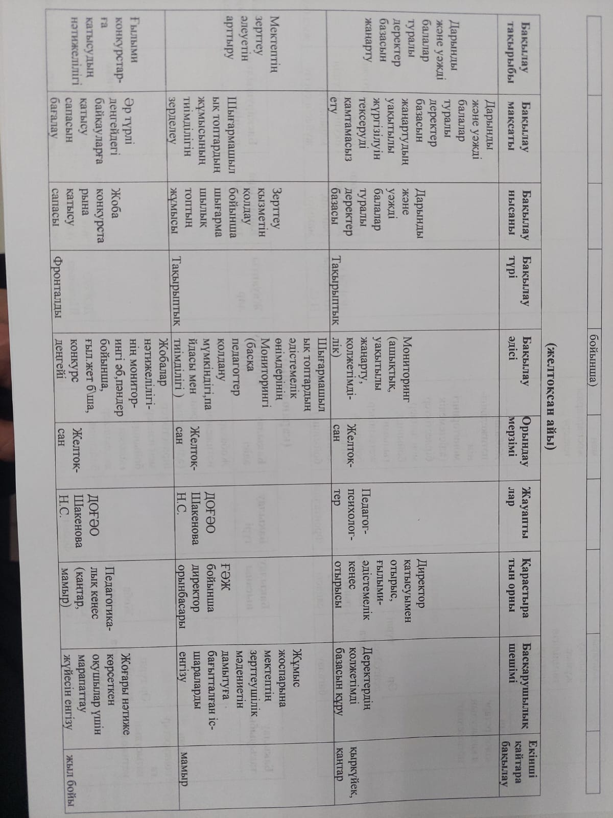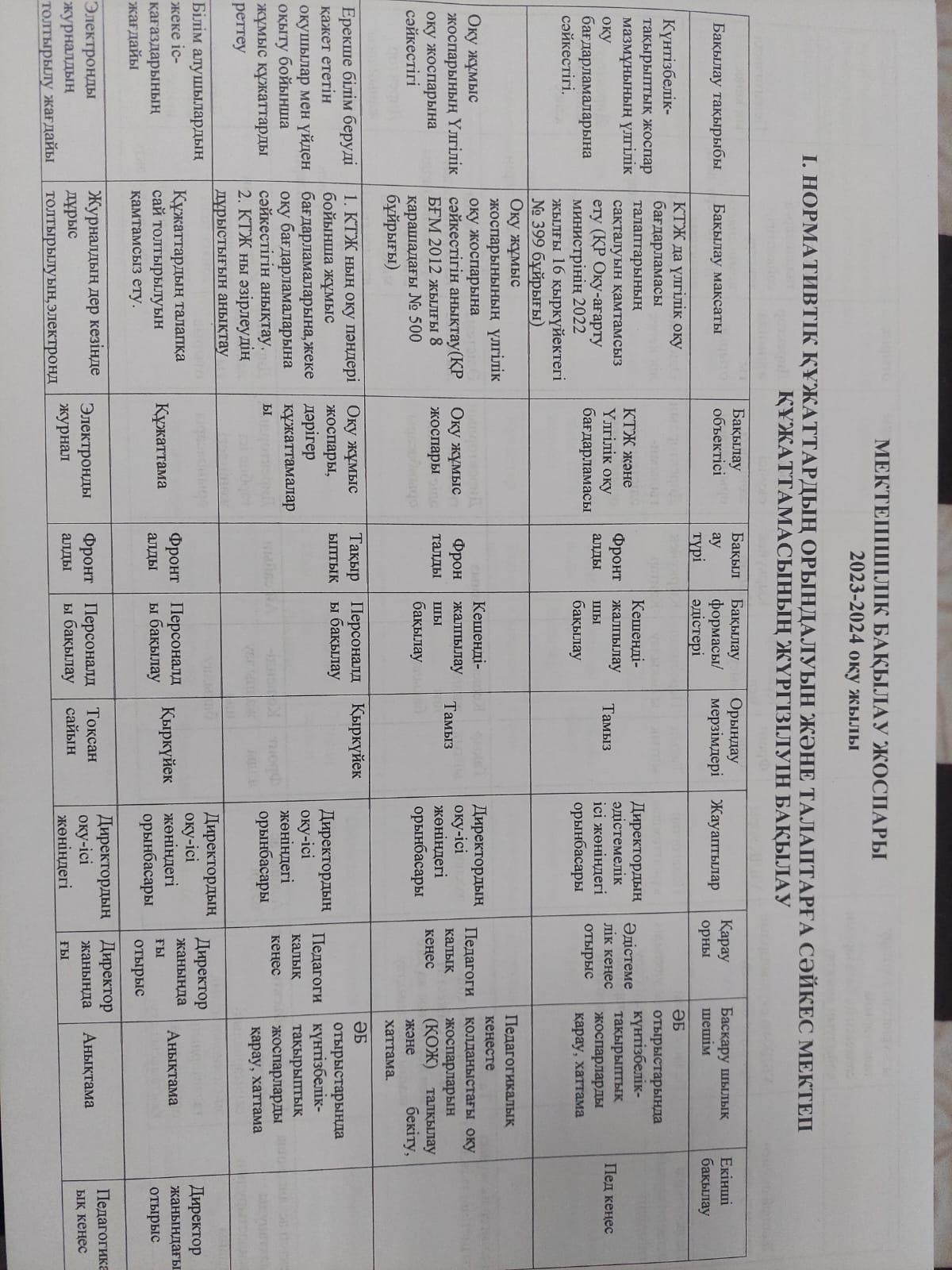 2023-2024 оқу жылына арналған Мектепшілік Бақылау Жоспары
