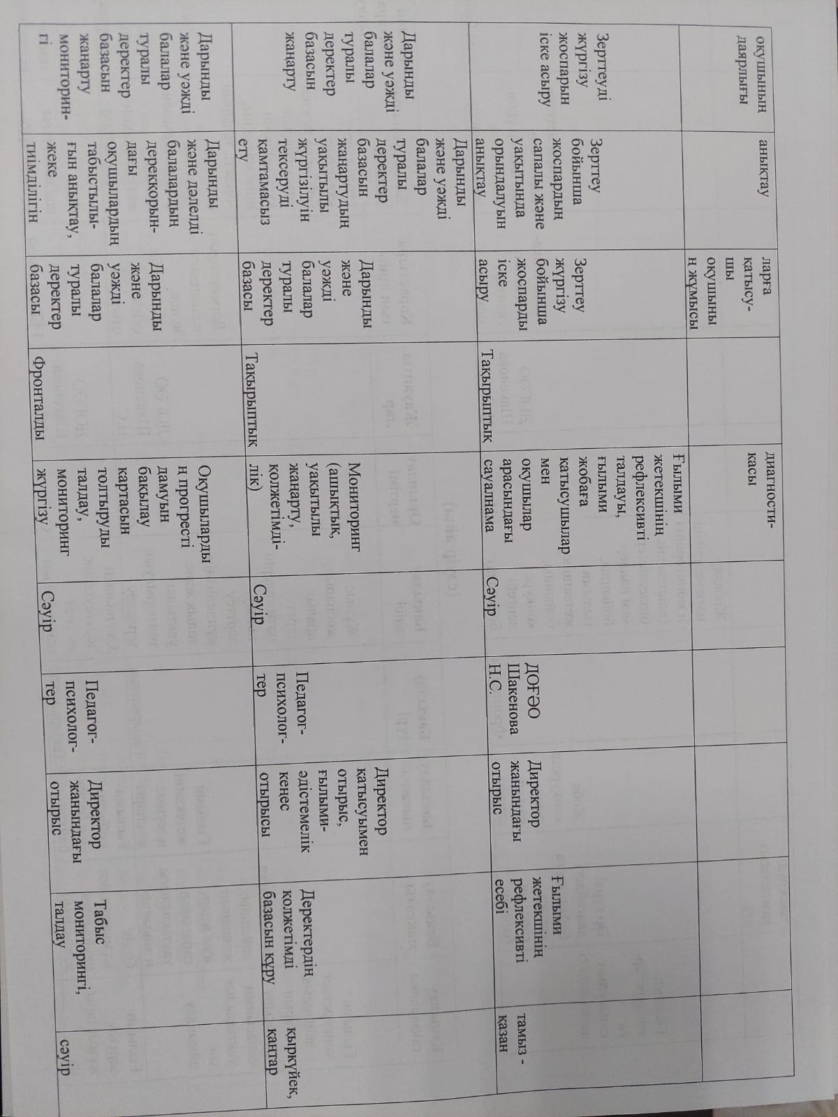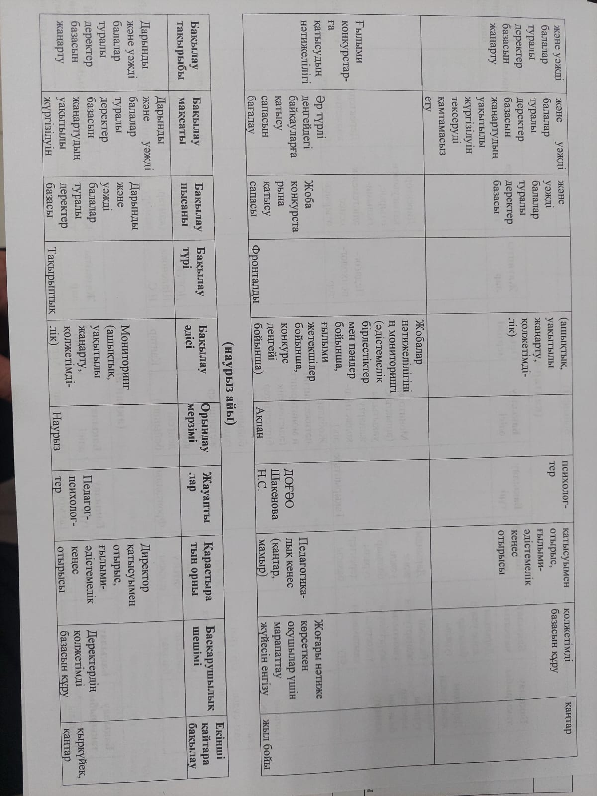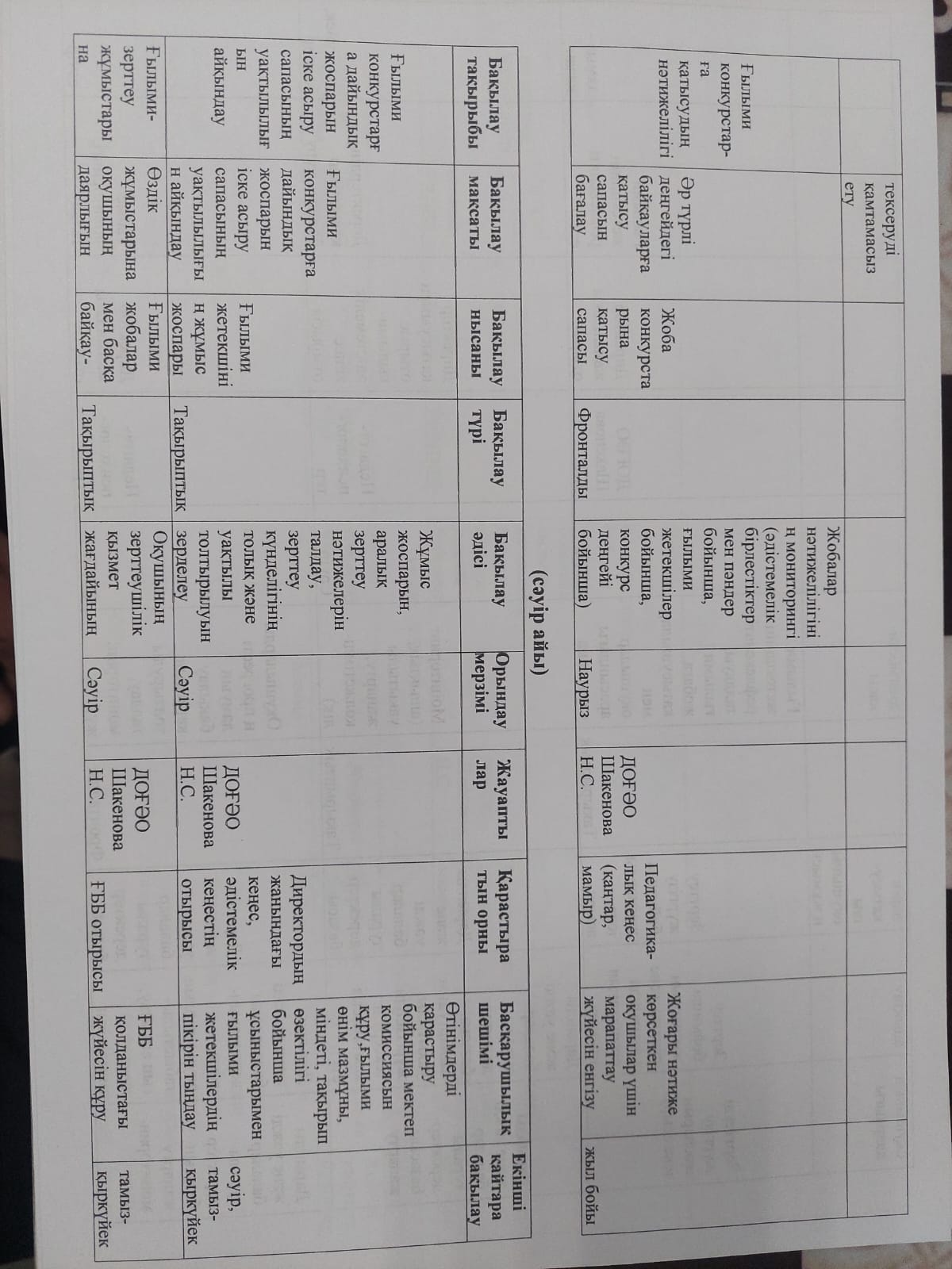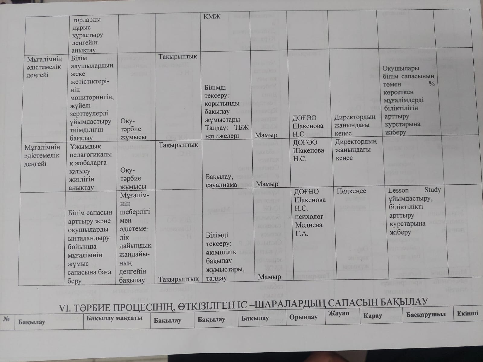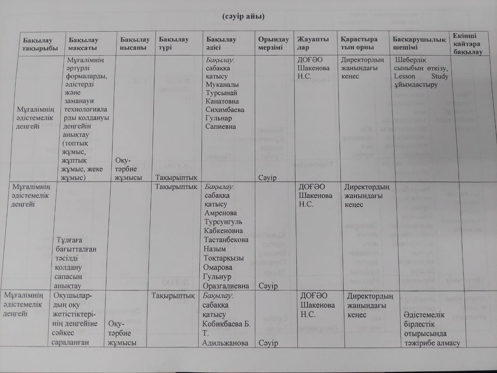 2023-2024 оқу жылына арналған Мектепшілік Бақылау Жоспары