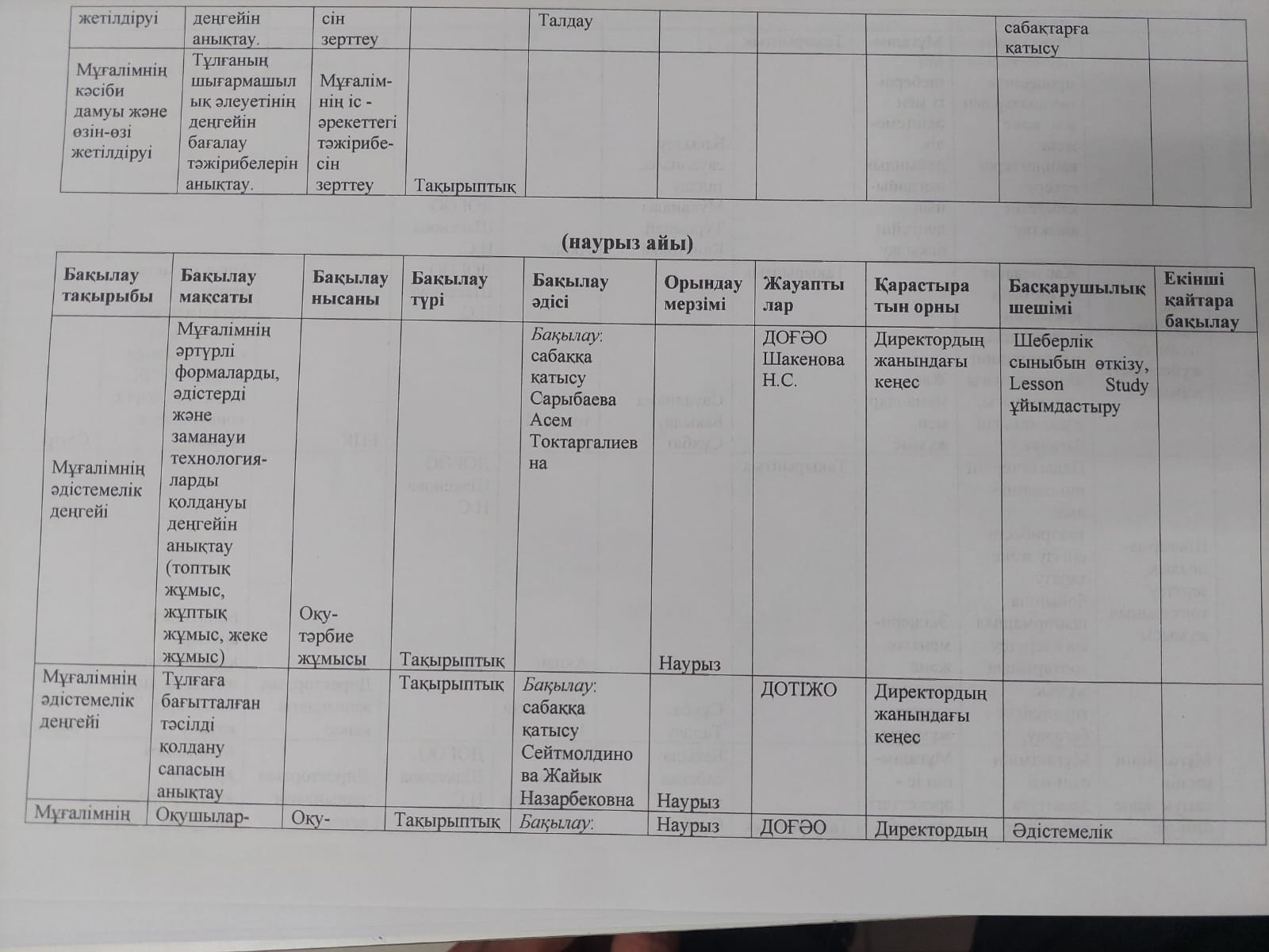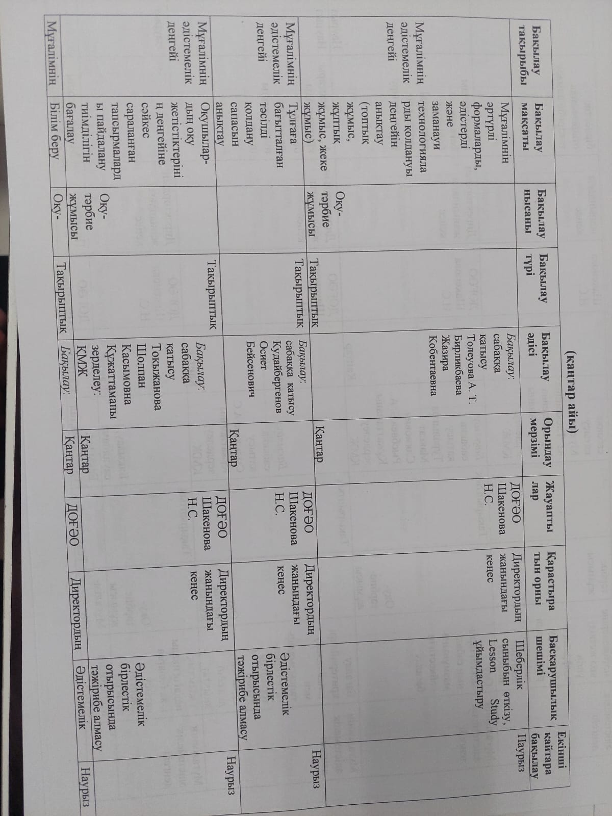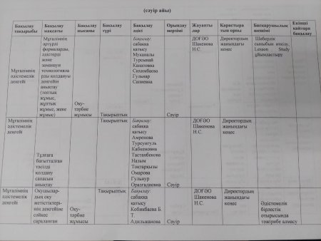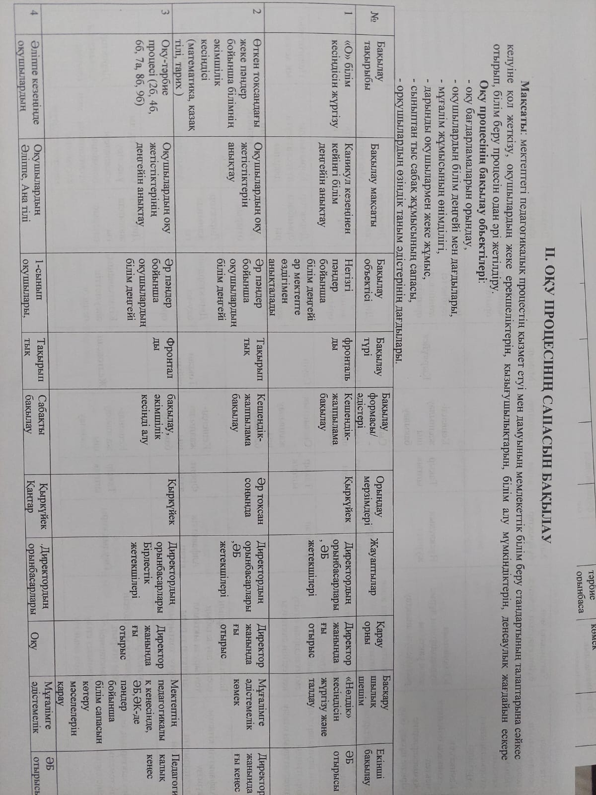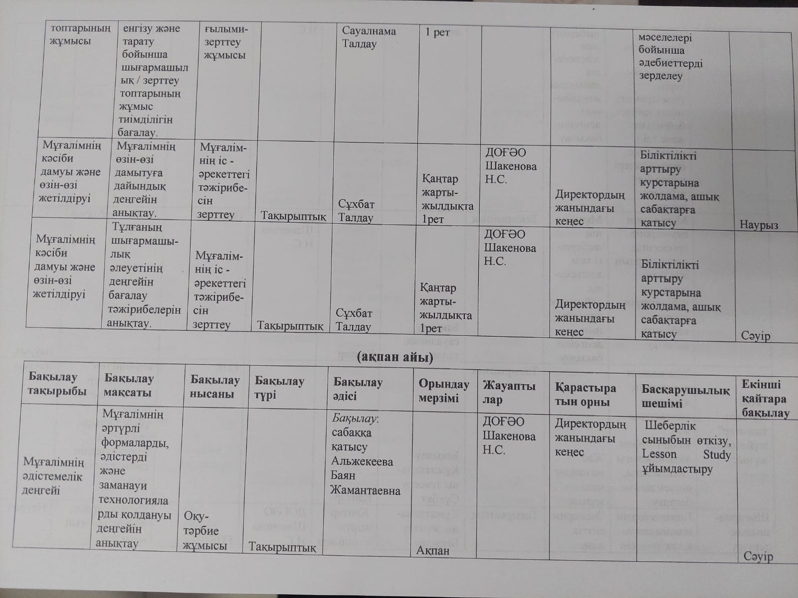 2023-2024 оқу жылына арналған Мектепшілік Бақылау Жоспары