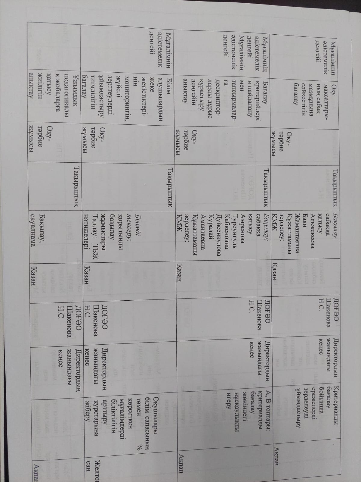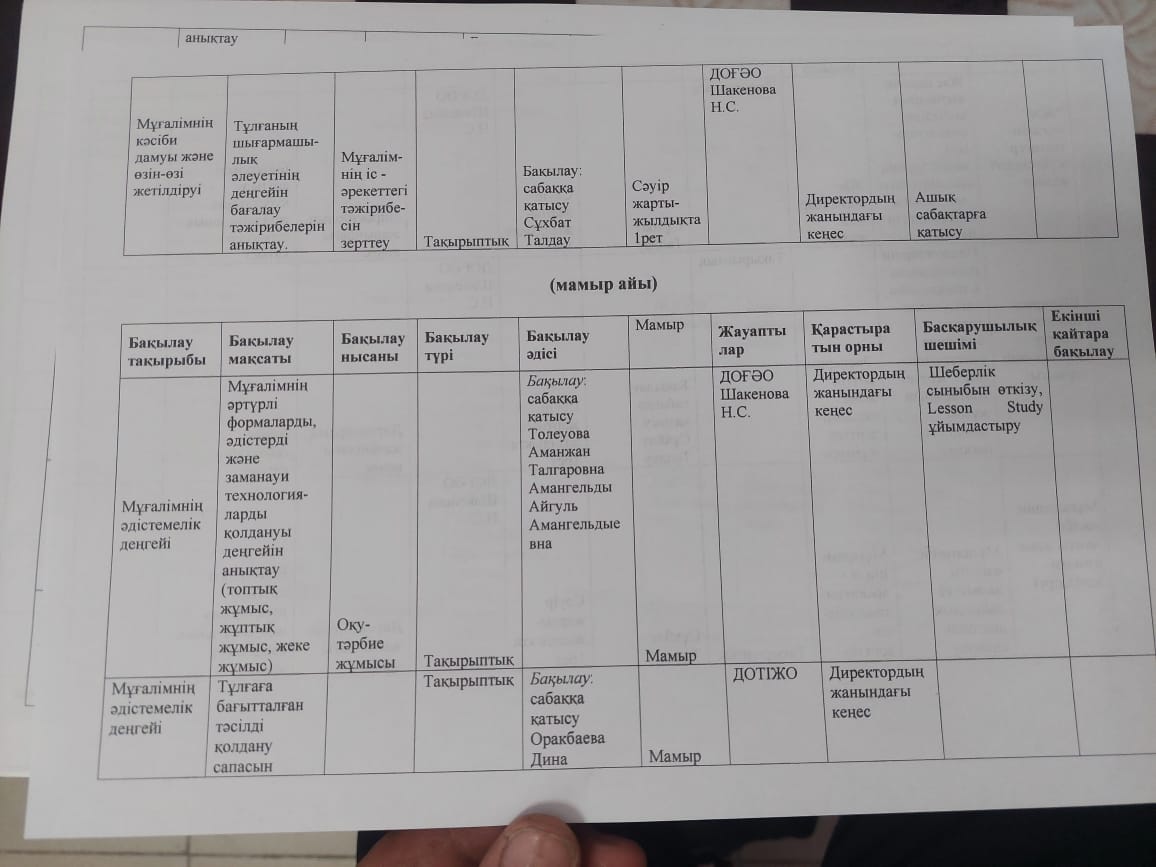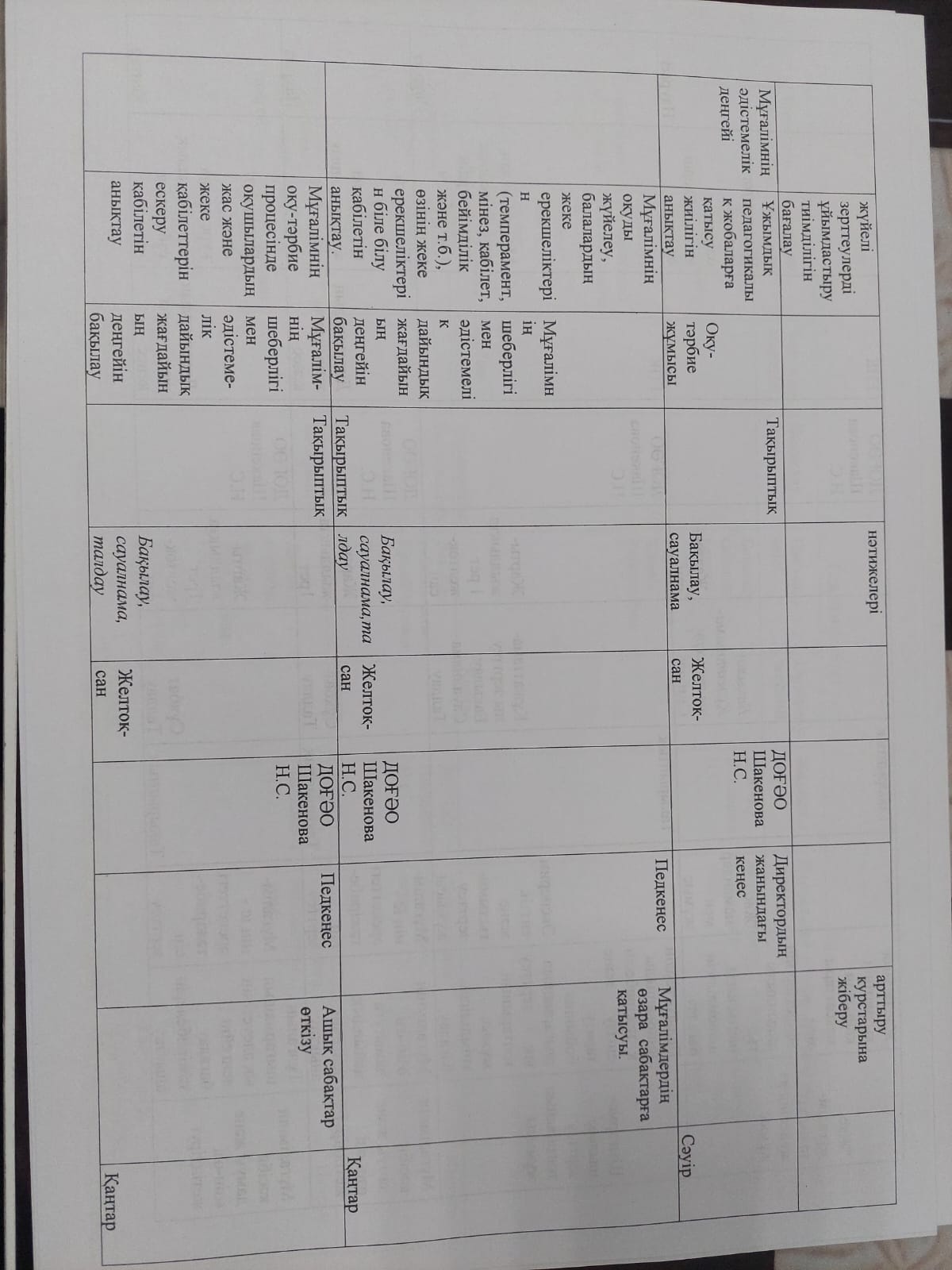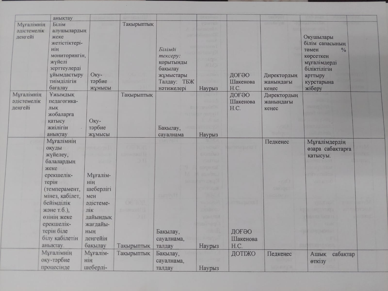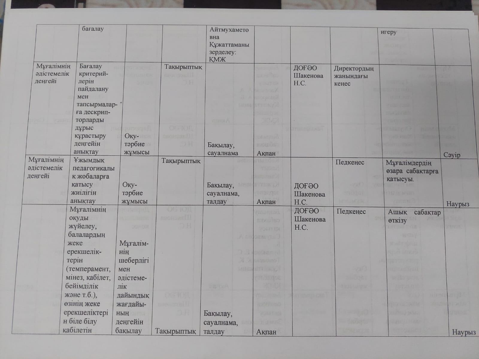 2023-2024 оқу жылына арналған Мектепшілік Бақылау Жоспары