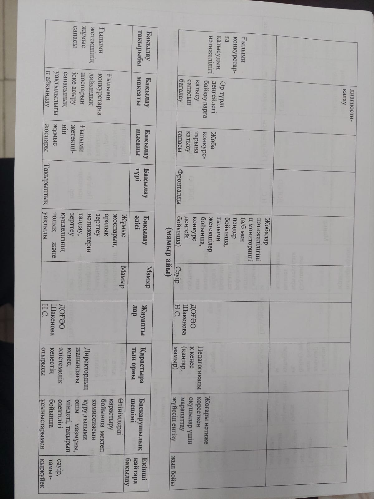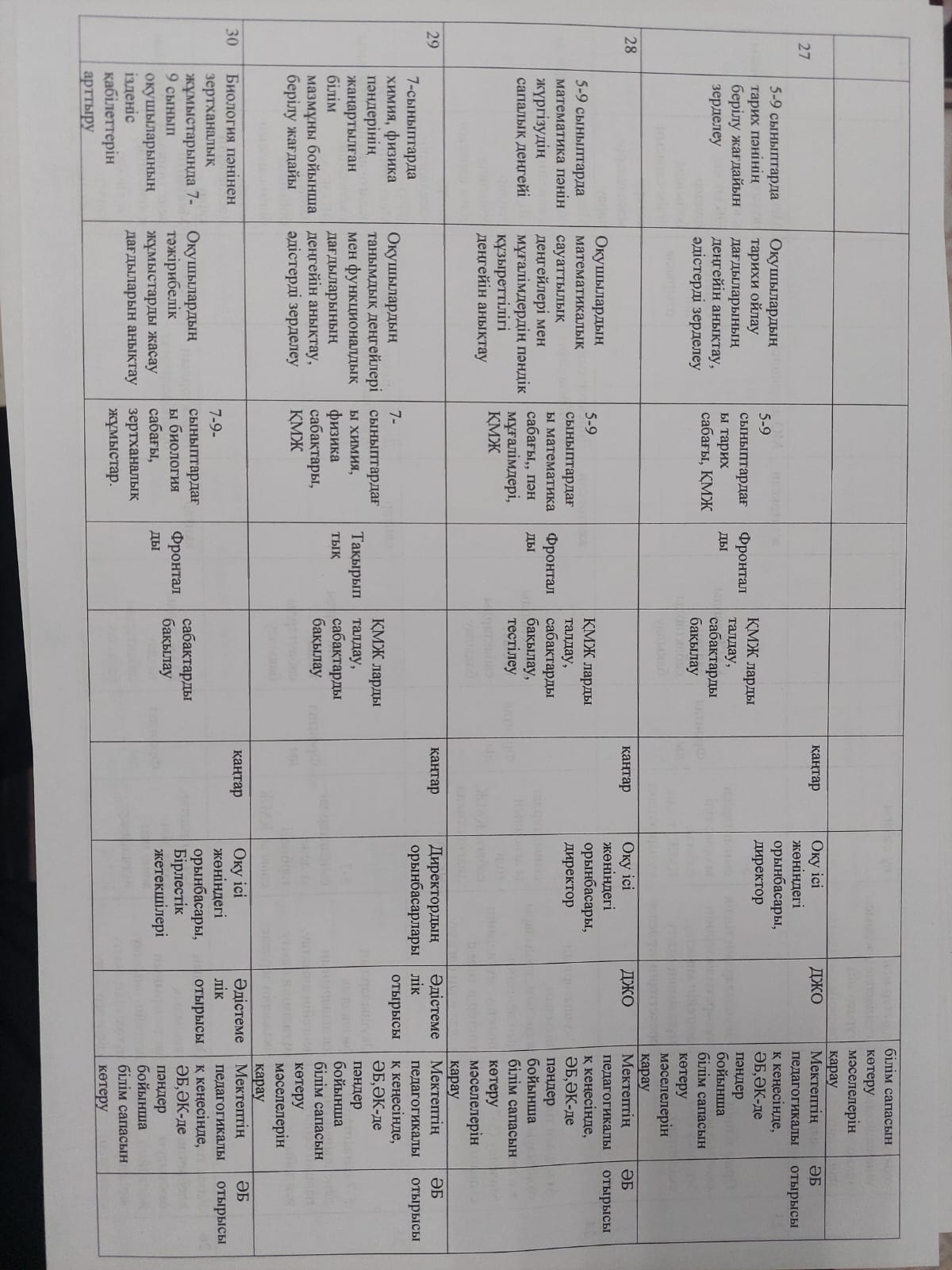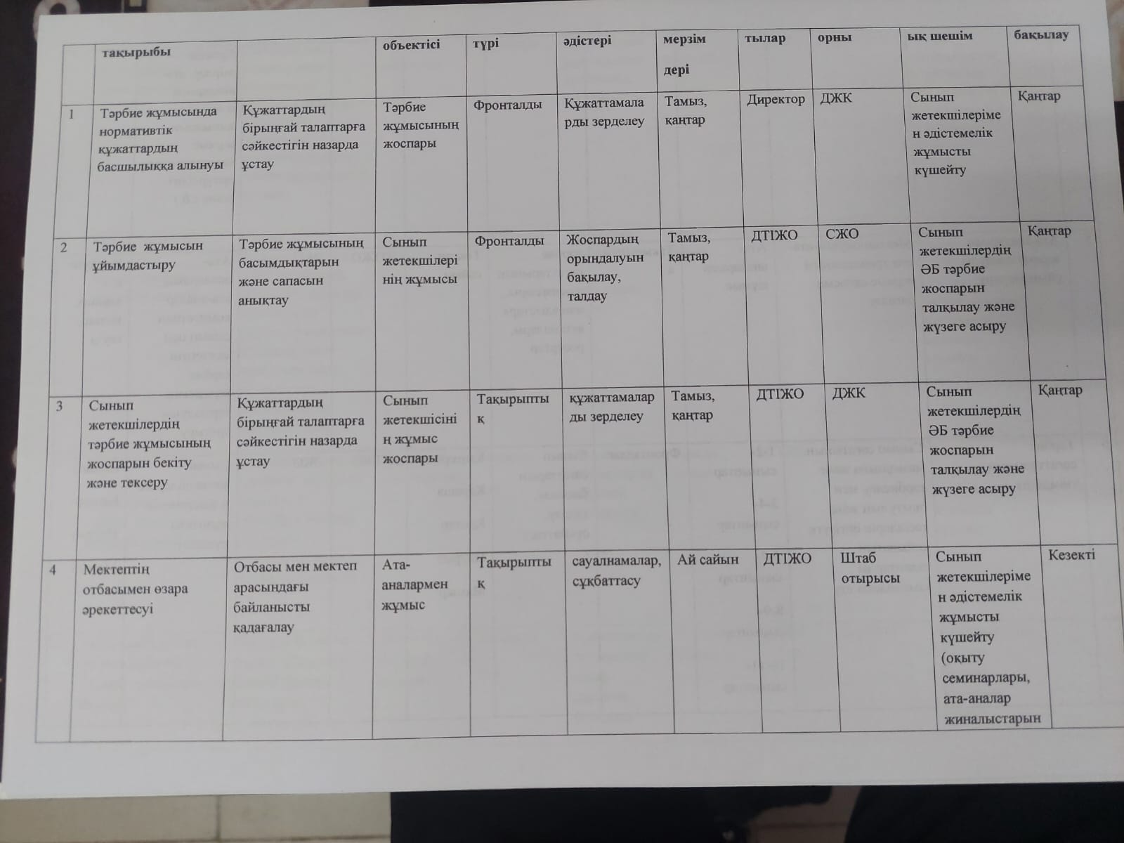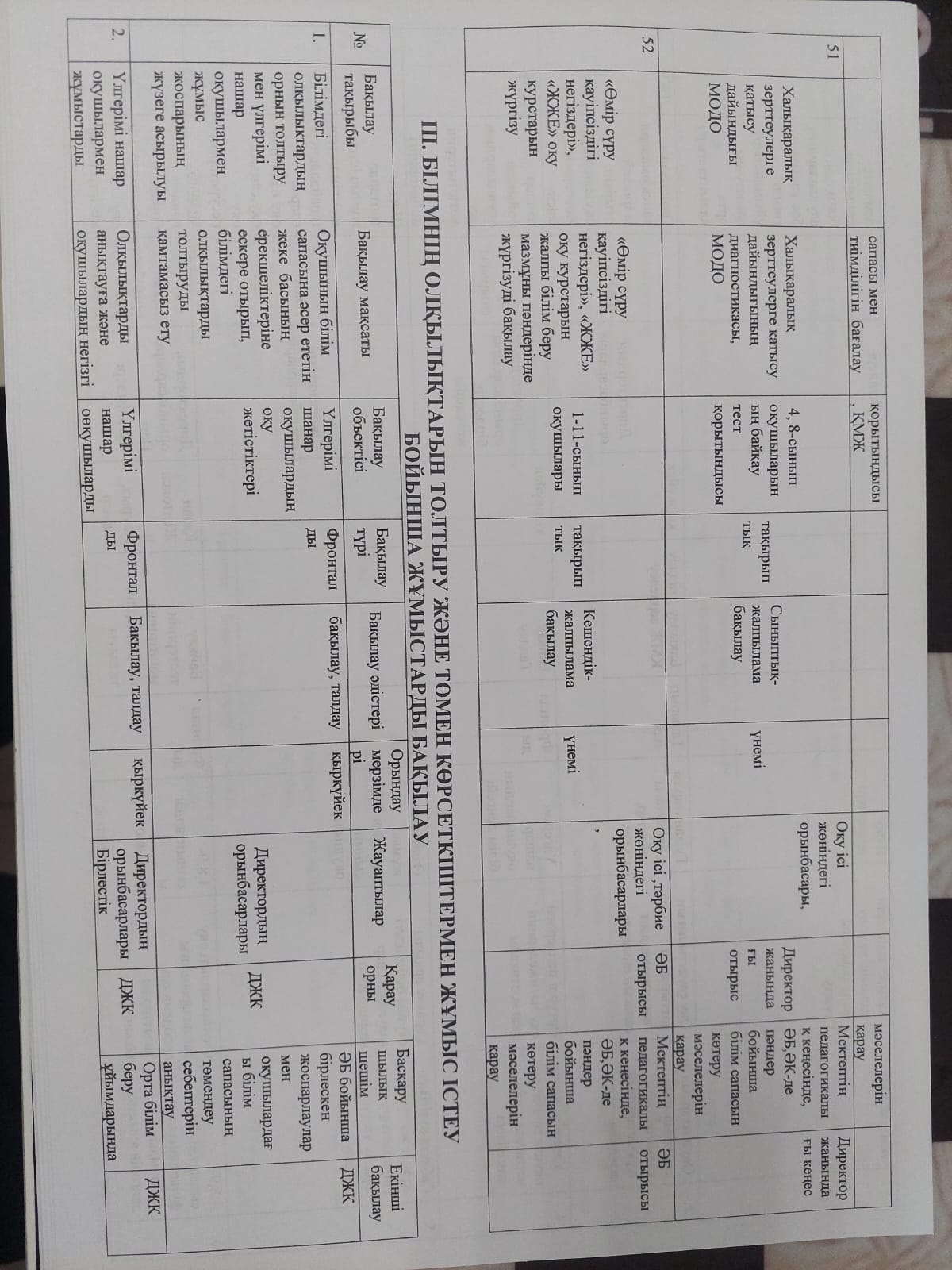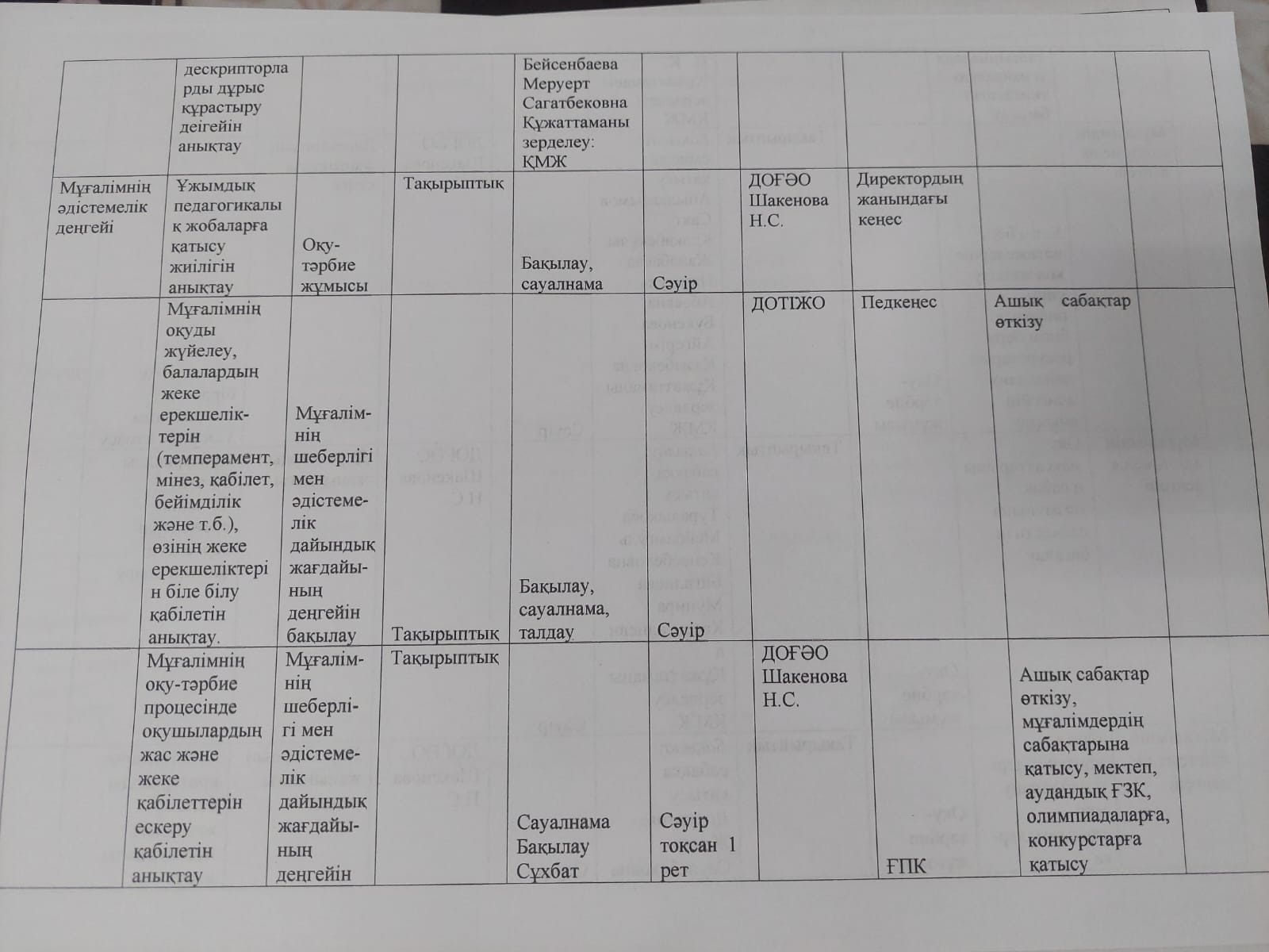 2023-2024 оқу жылына арналған Мектепшілік Бақылау Жоспары