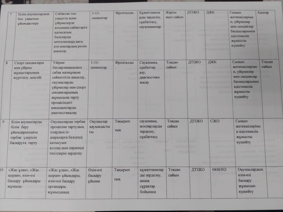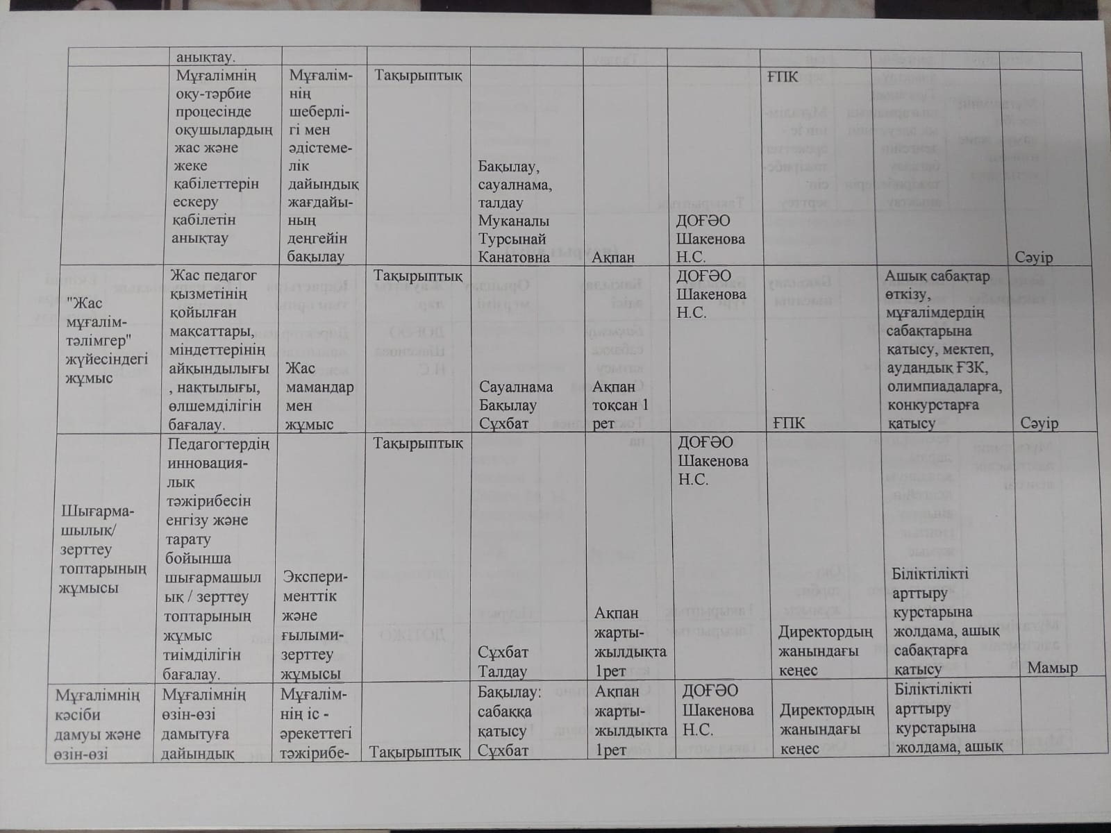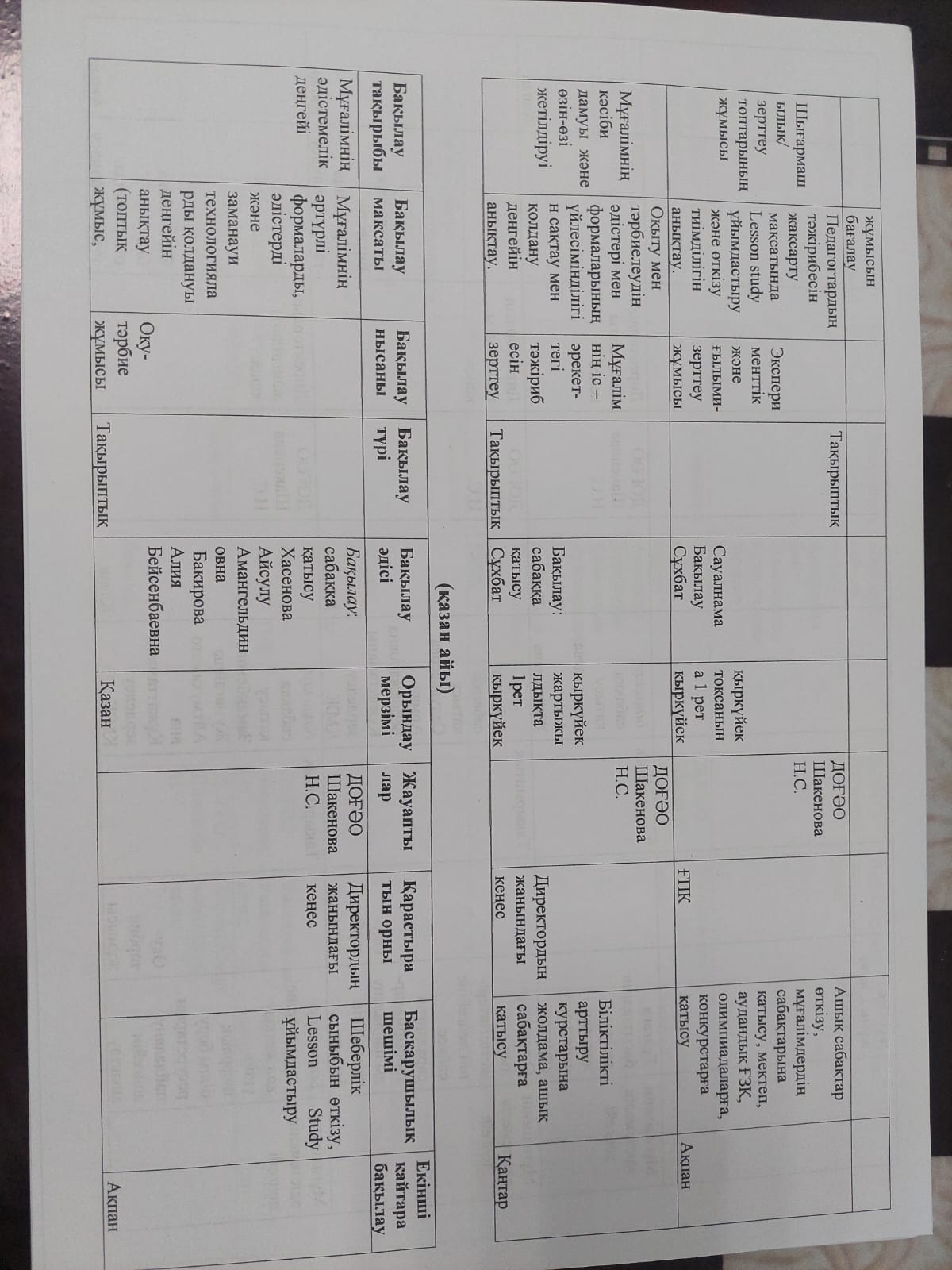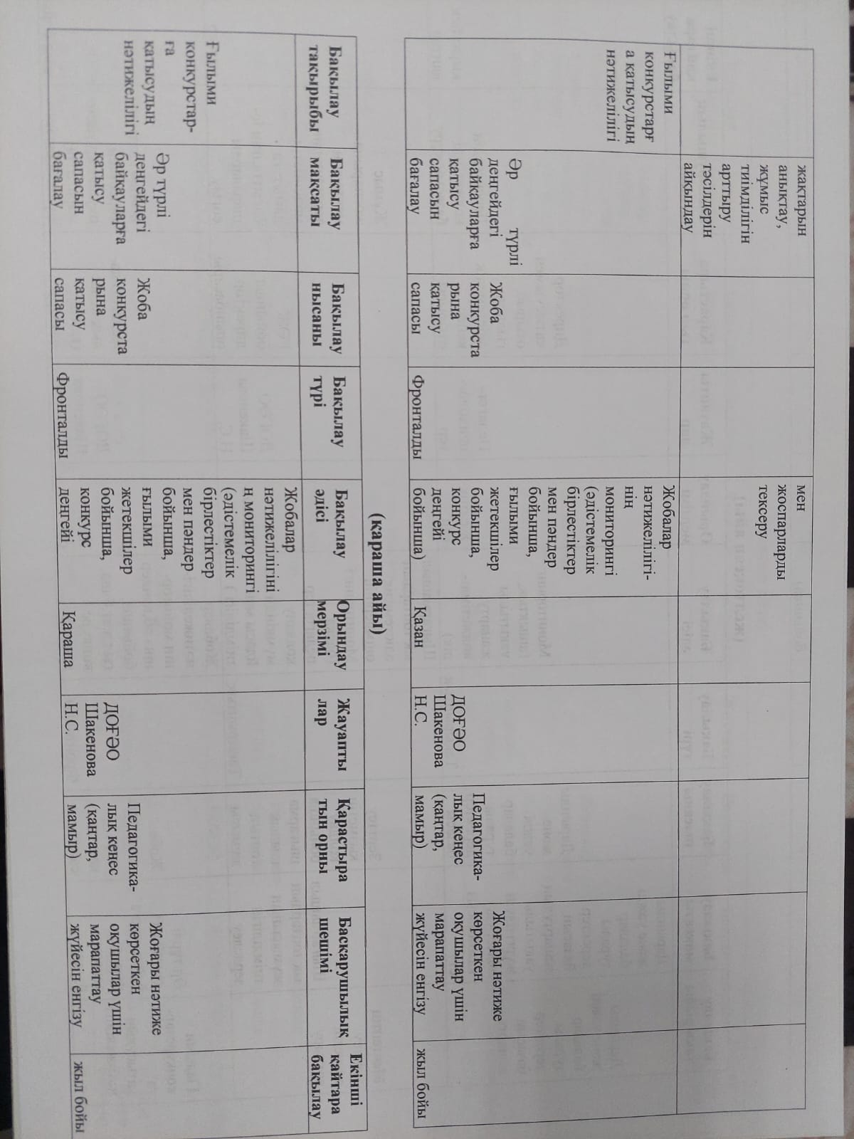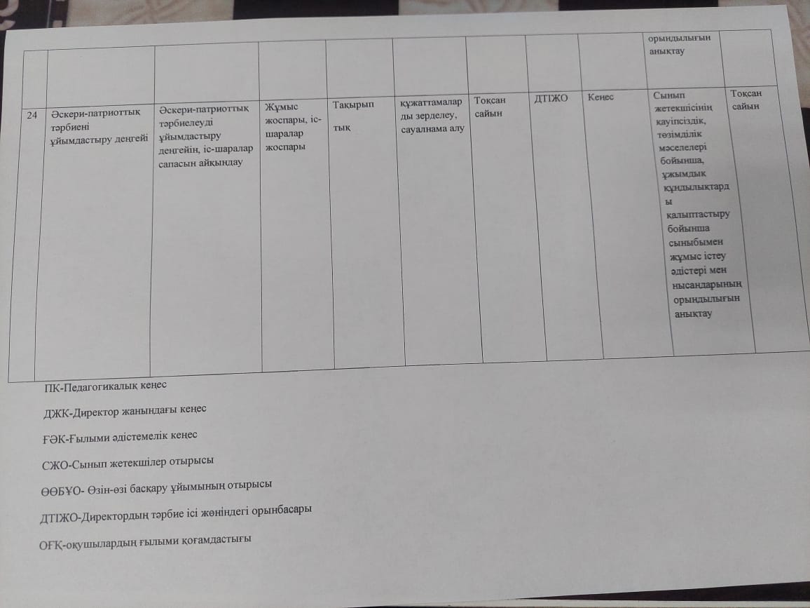 2023-2024 оқу жылына арналған Мектепшілік Бақылау Жоспары