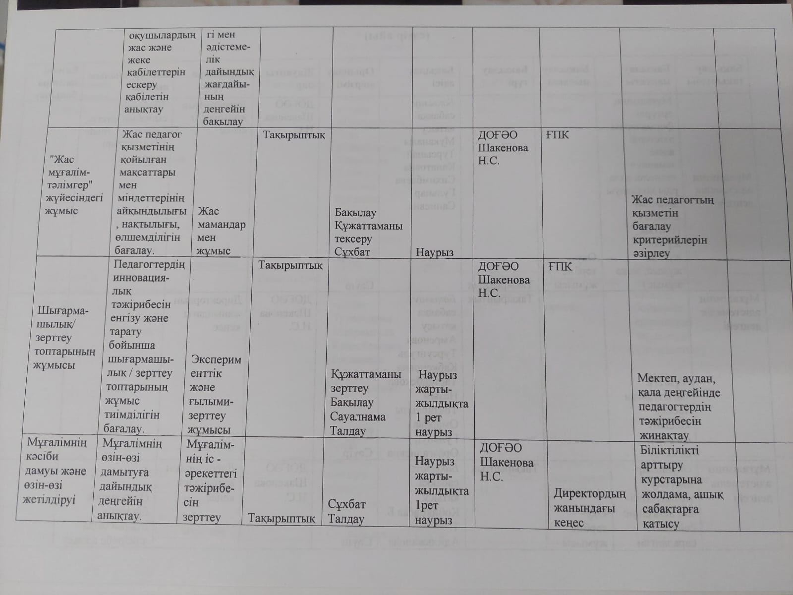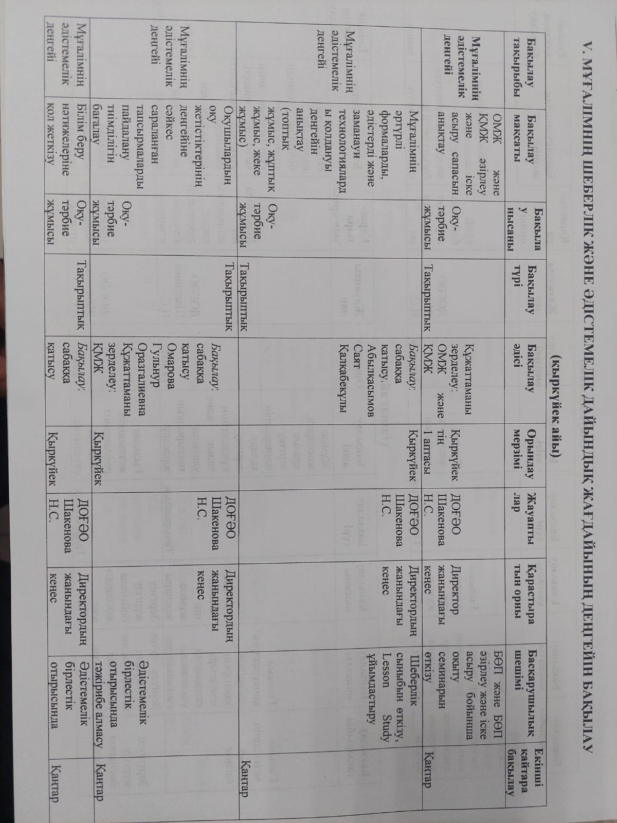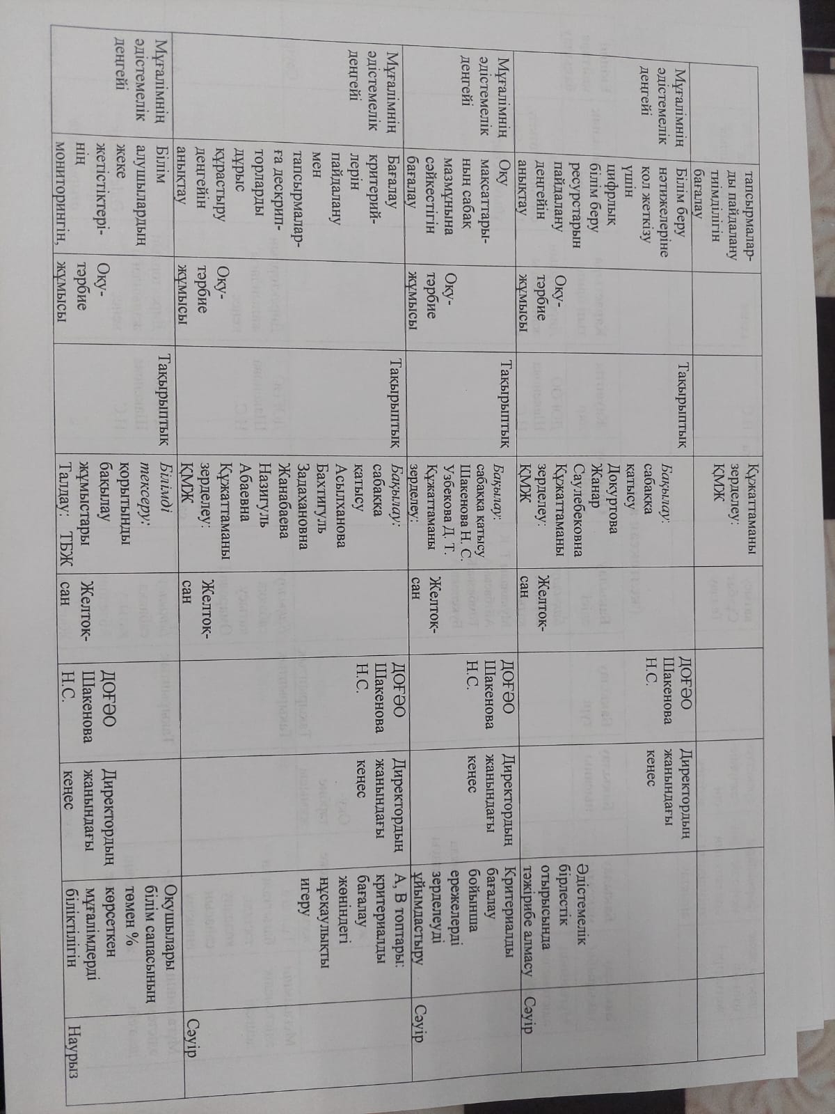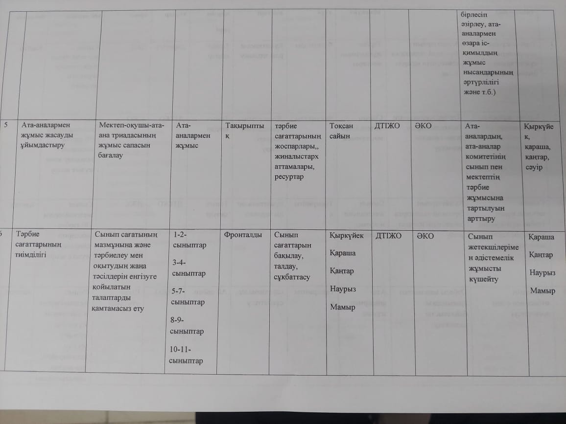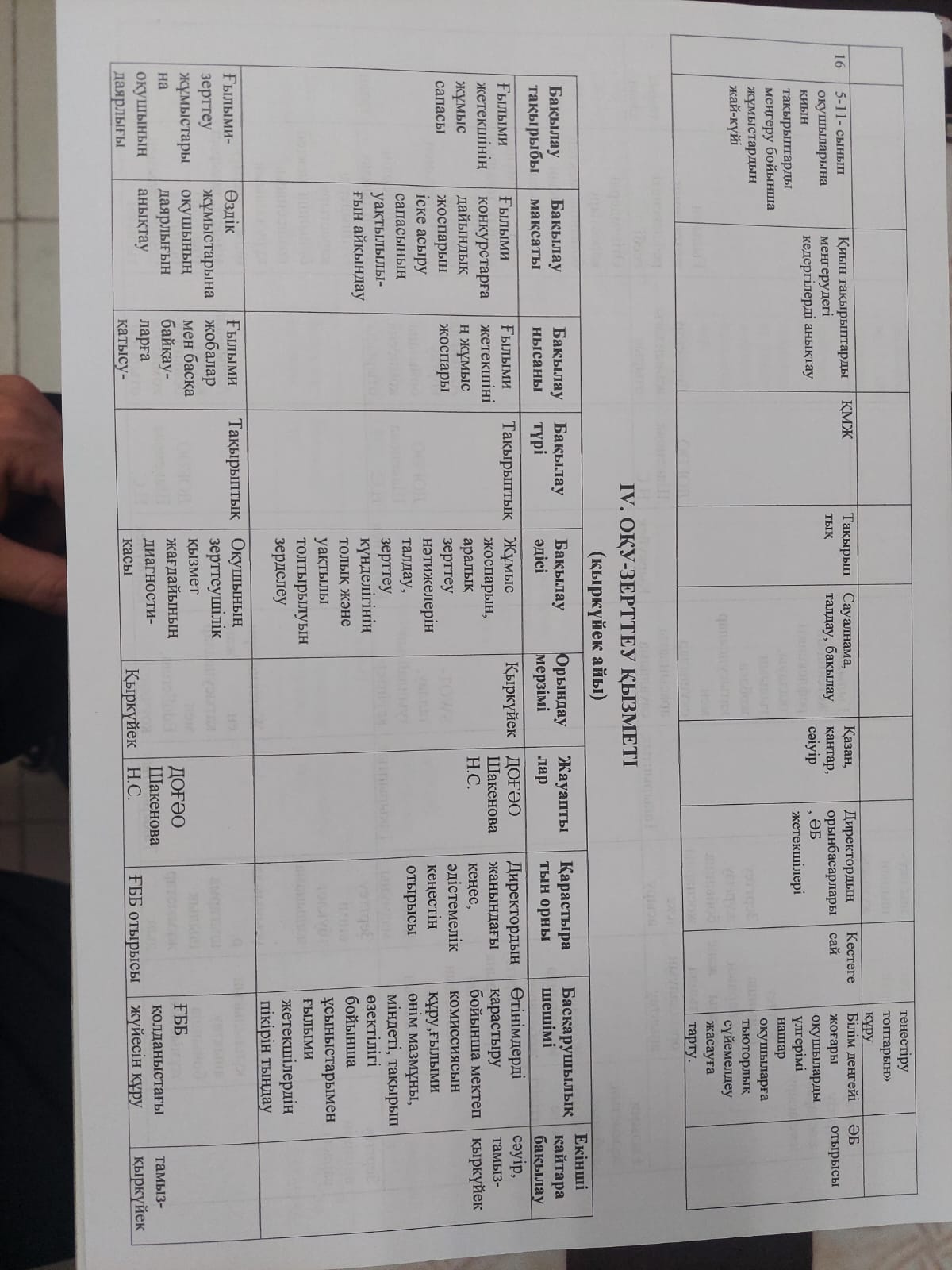 2023-2024 оқу жылына арналған Мектепшілік Бақылау Жоспары