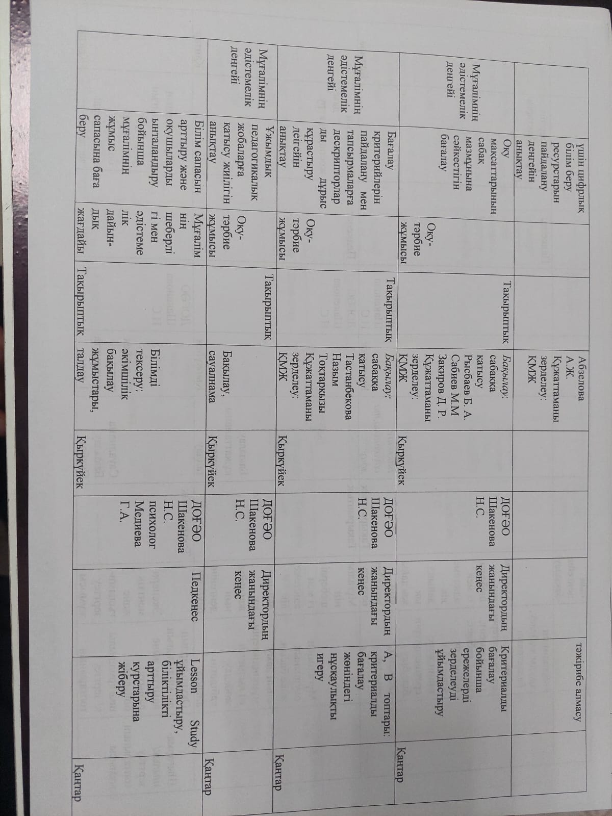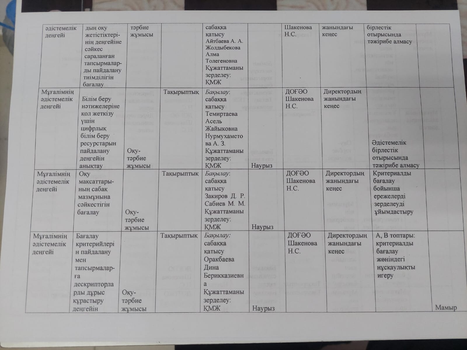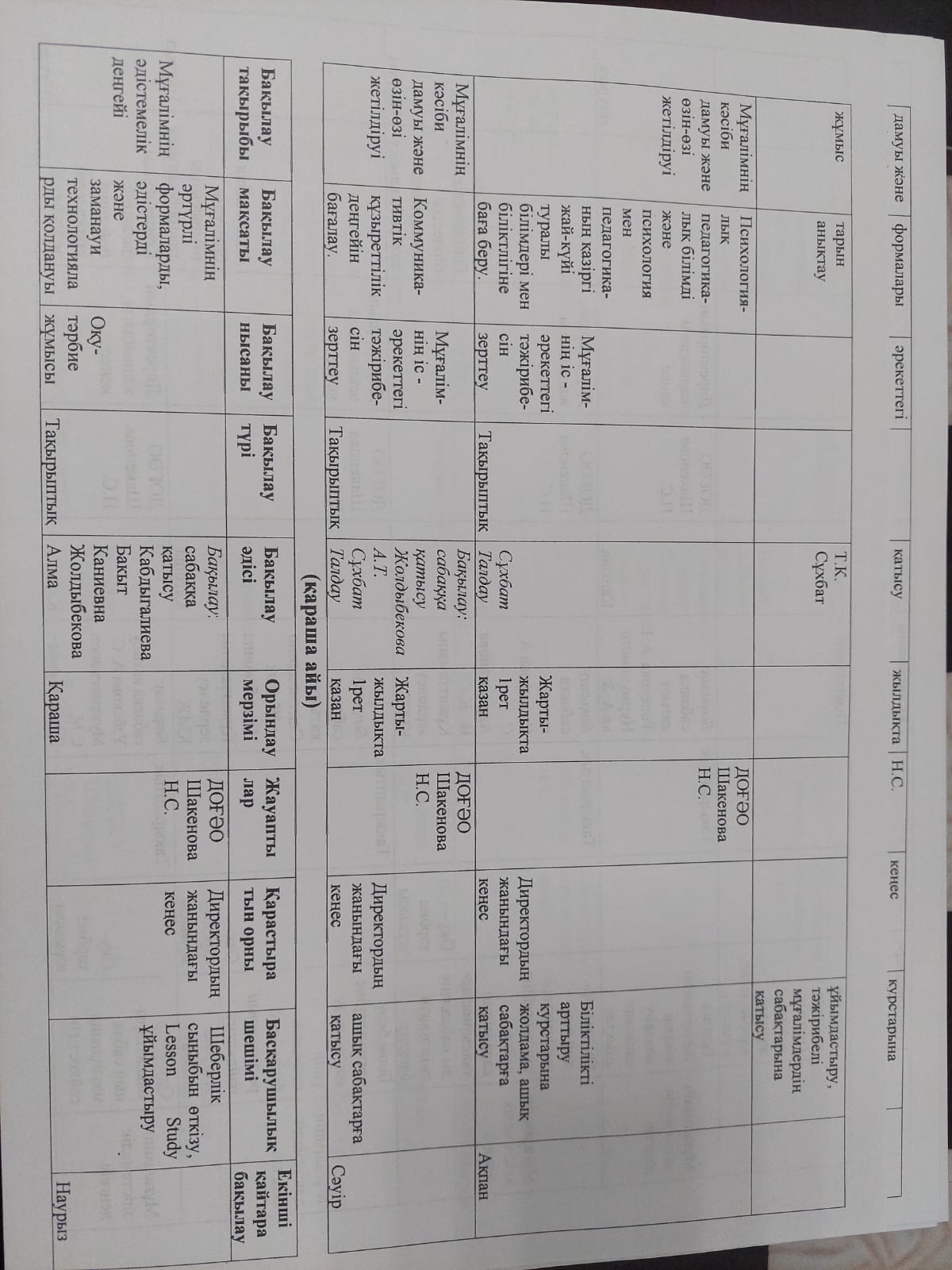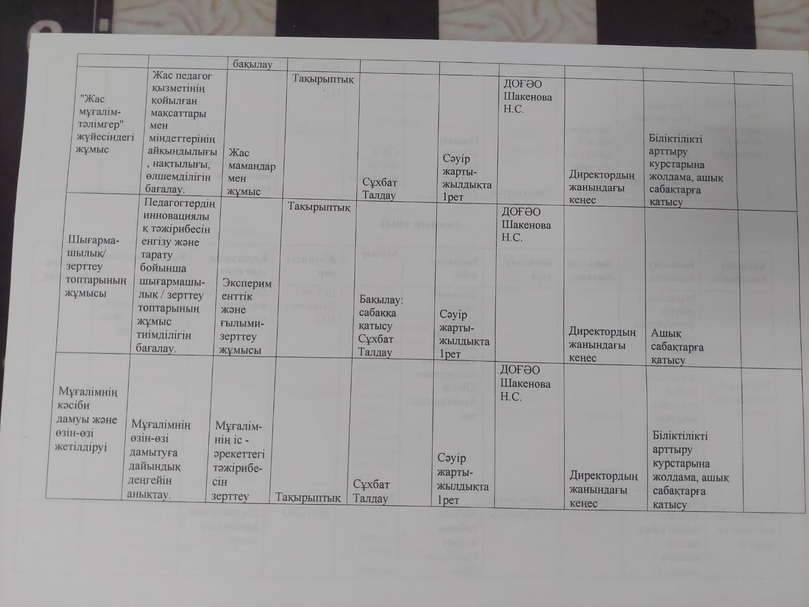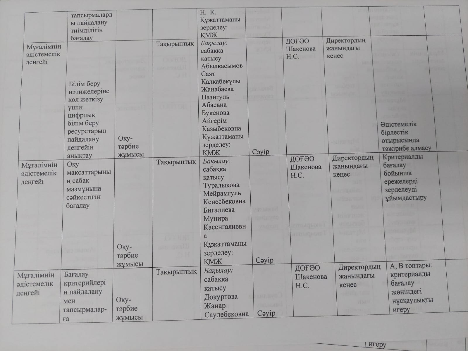 2023-2024 оқу жылына арналған Мектепшілік Бақылау Жоспары