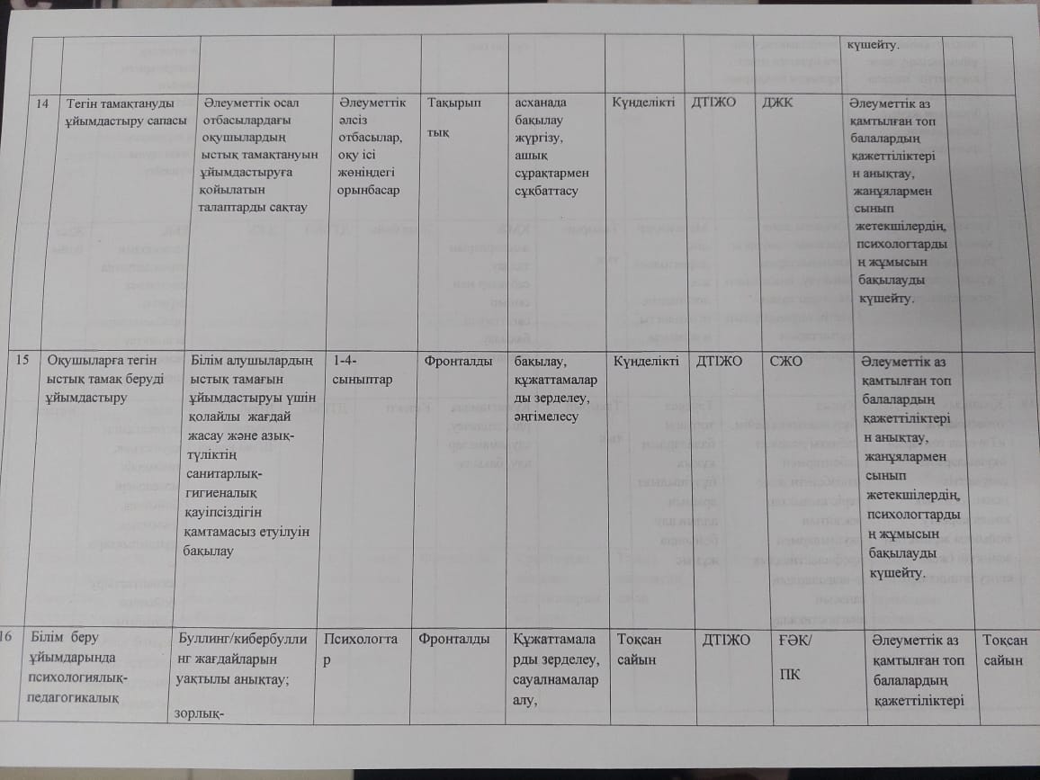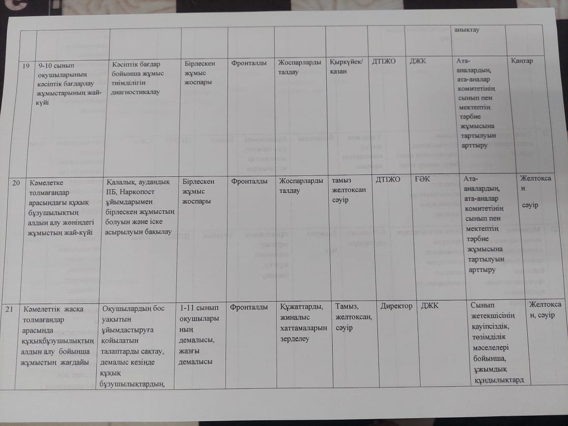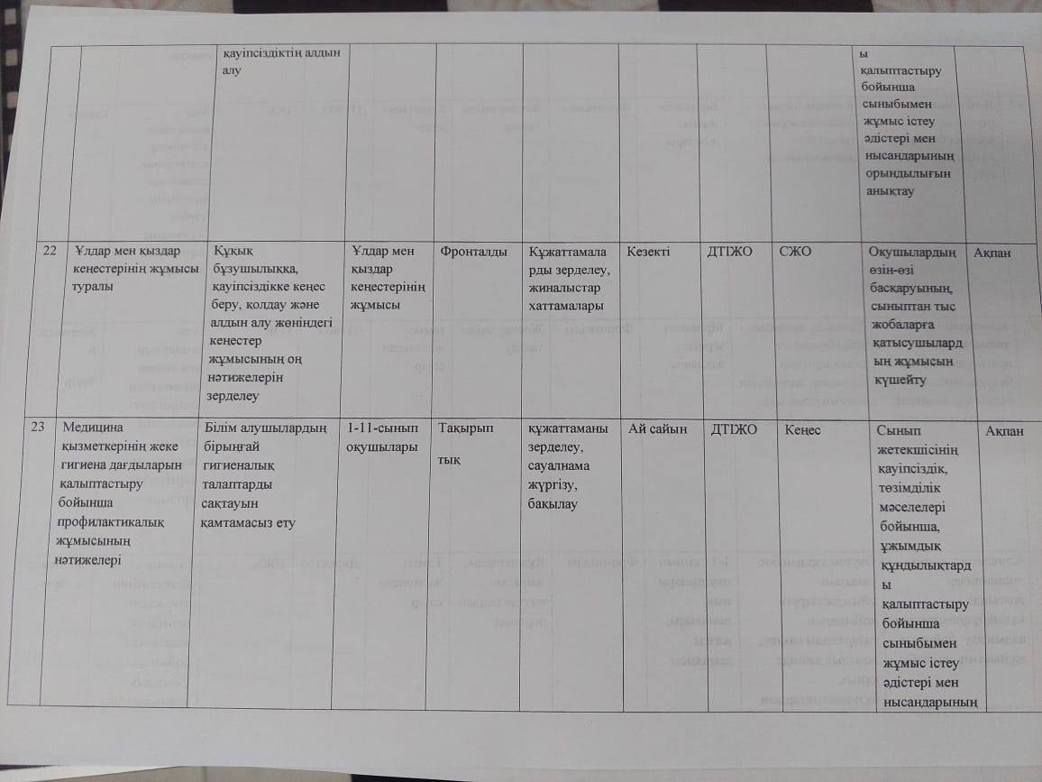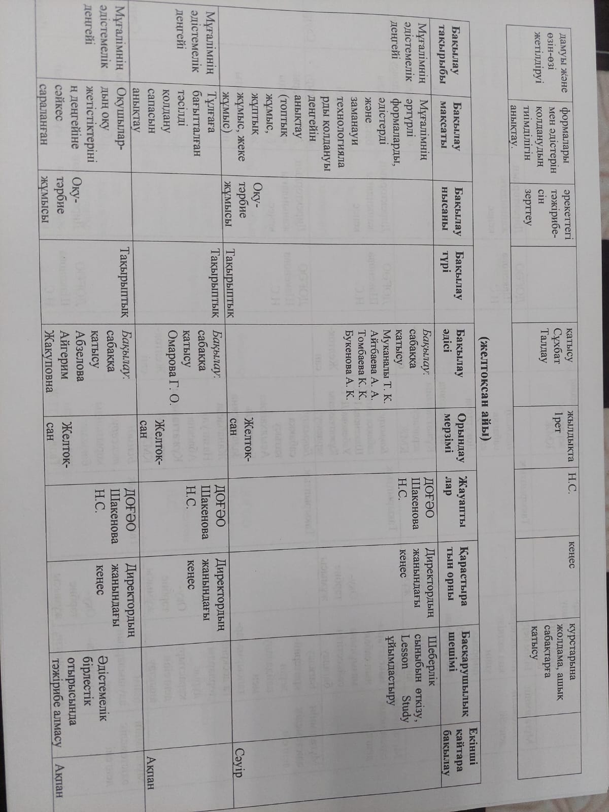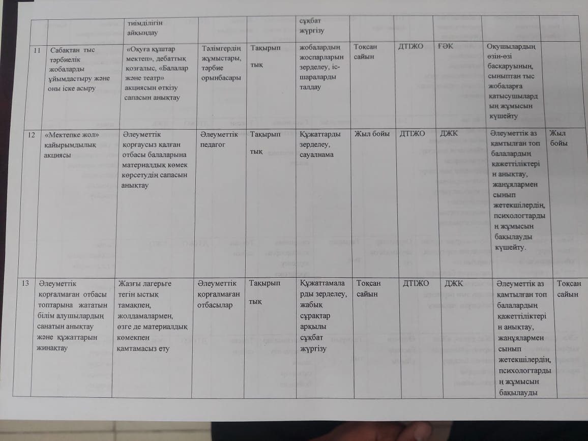 2023-2024 оқу жылына арналған Мектепшілік Бақылау Жоспары