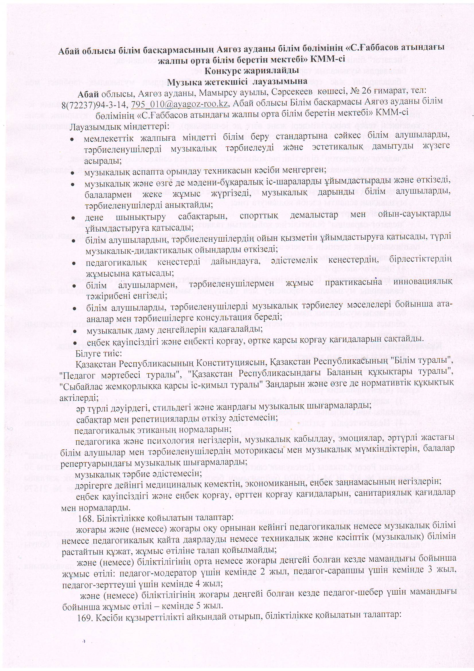 Абай облысы білім басқармасының Аягөз ауданы білім бөлімінің «С. Ғаббасов атындағы жалпы орта білім беретін мектебі»