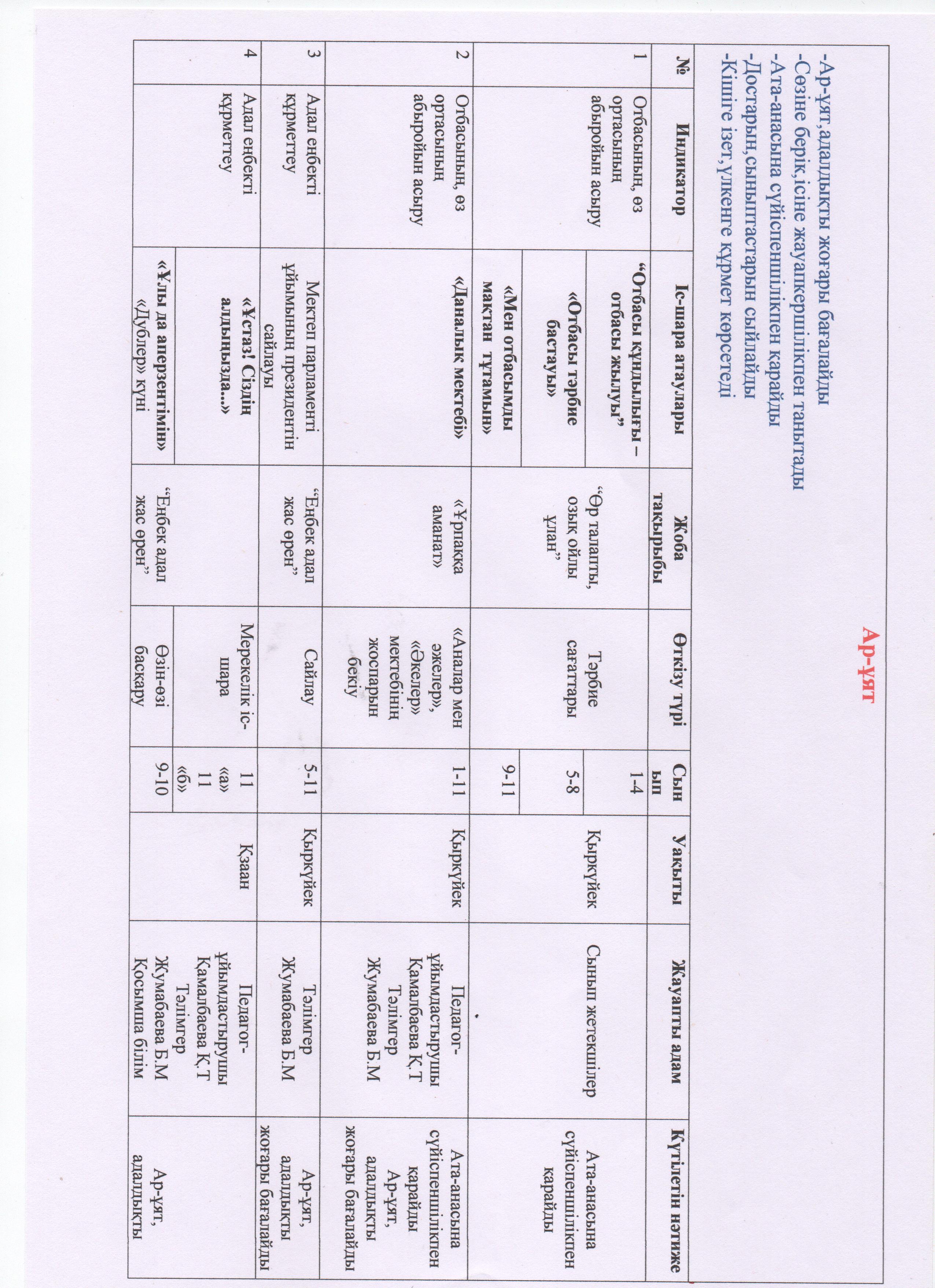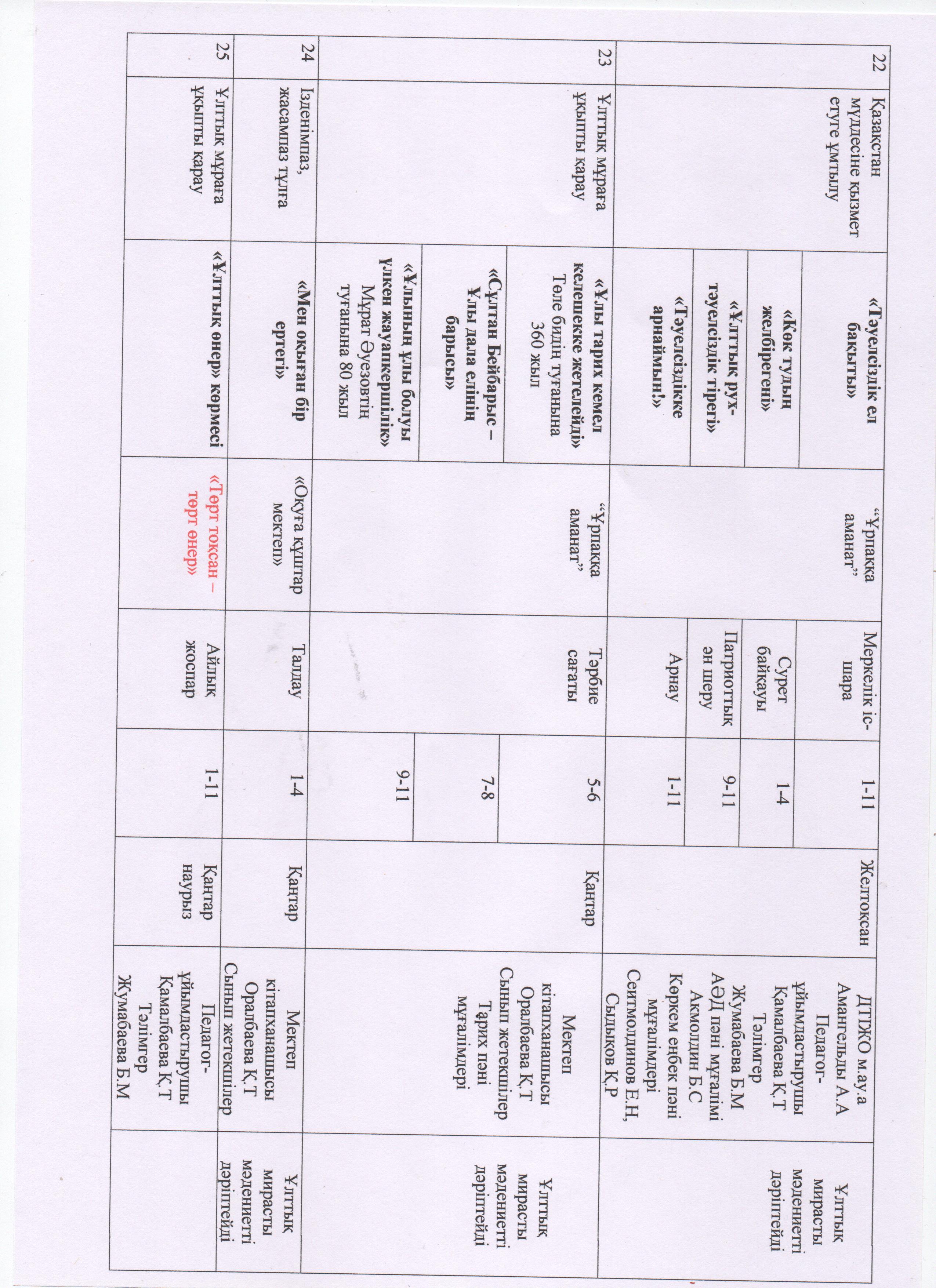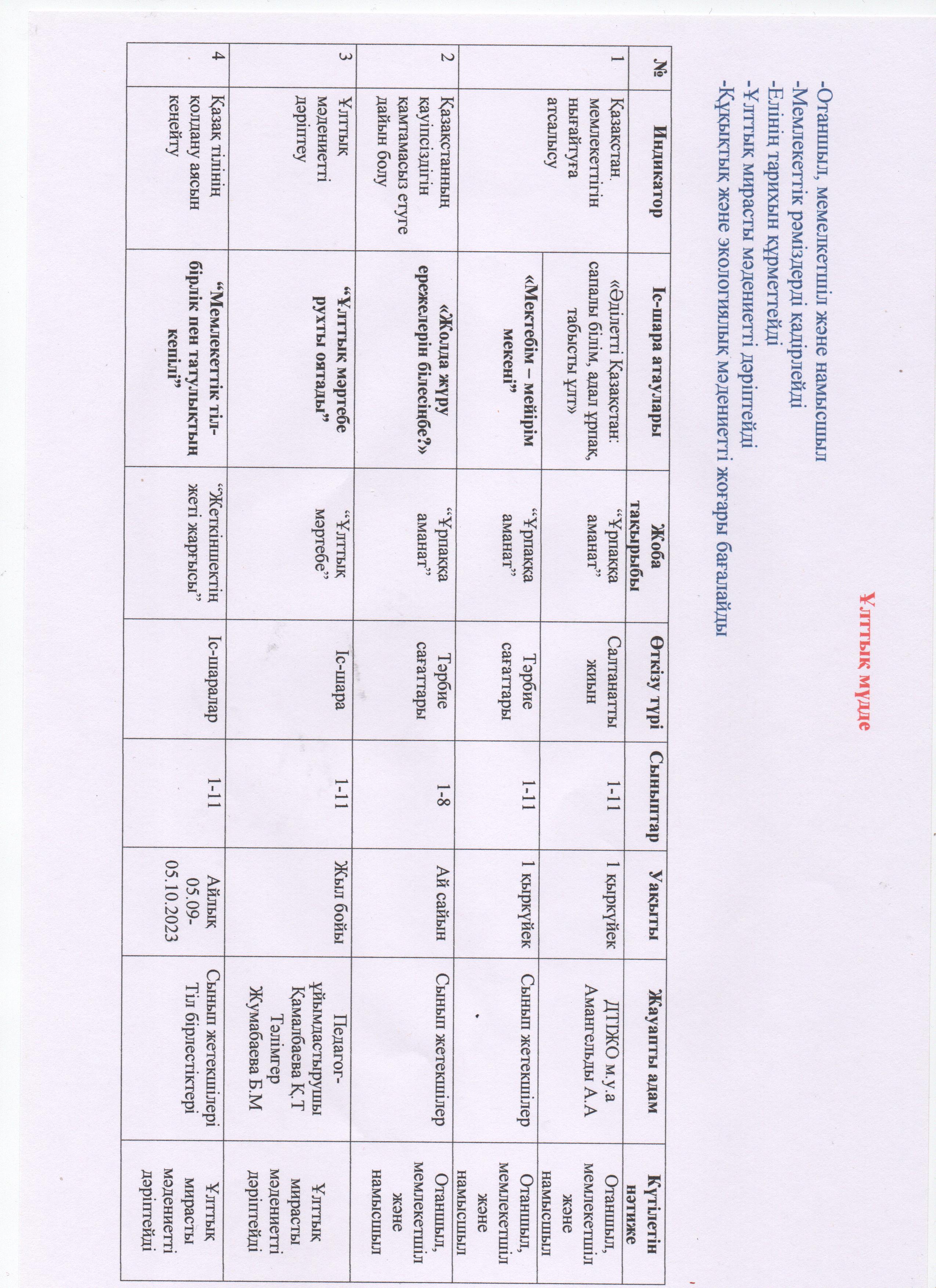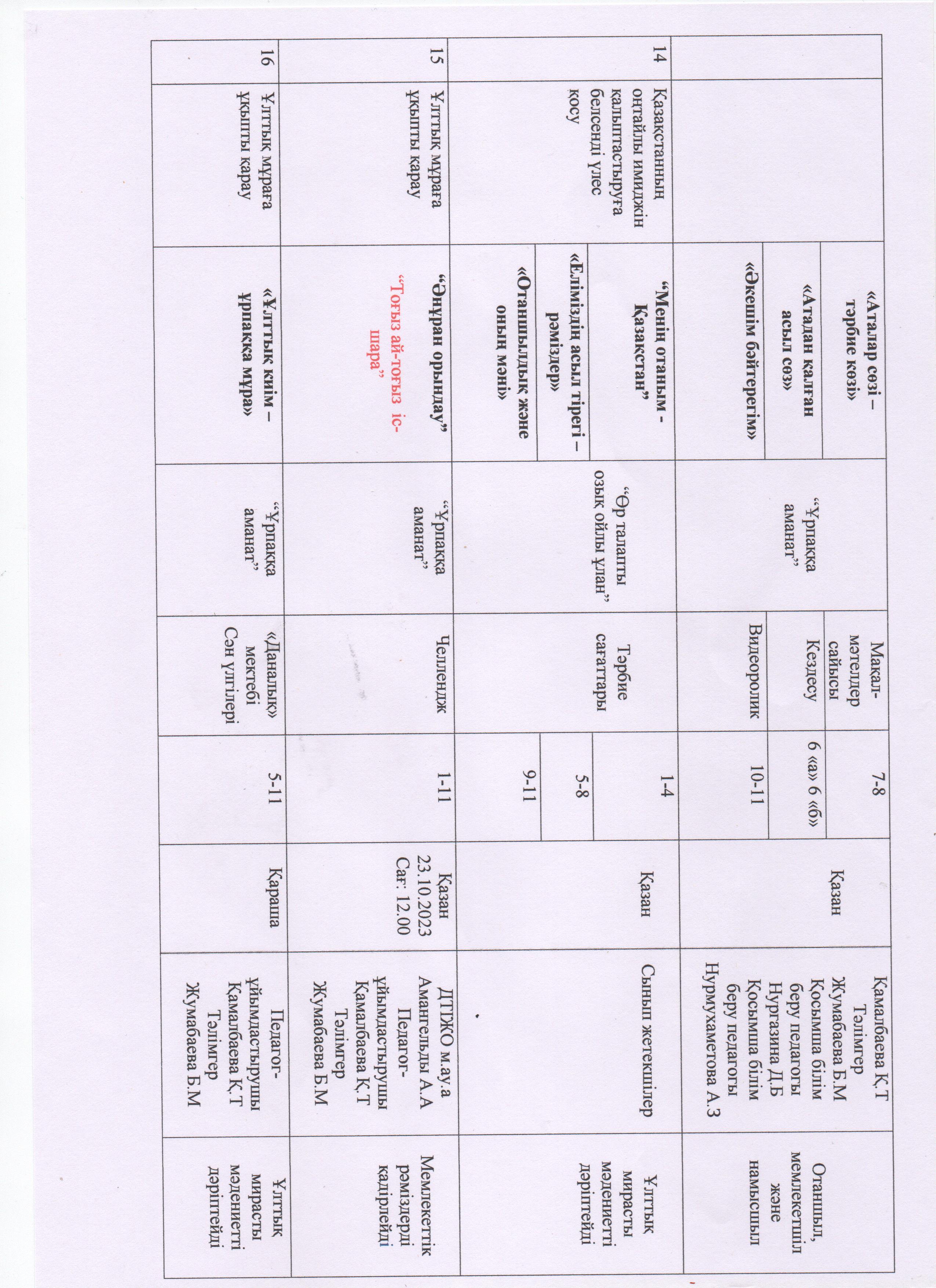 2023-2024 оқу жылына арналған тәрбие жұмысының жоспары