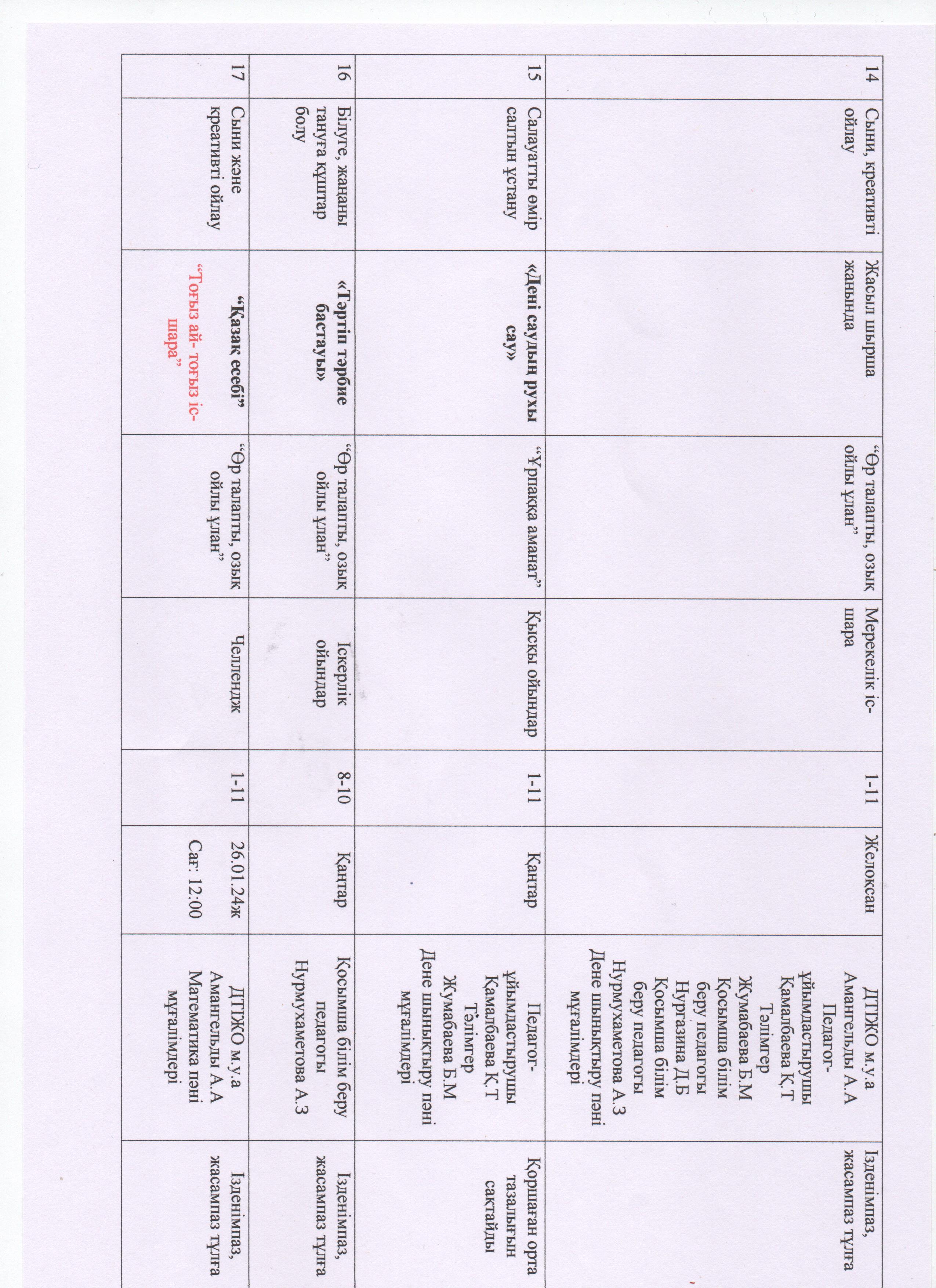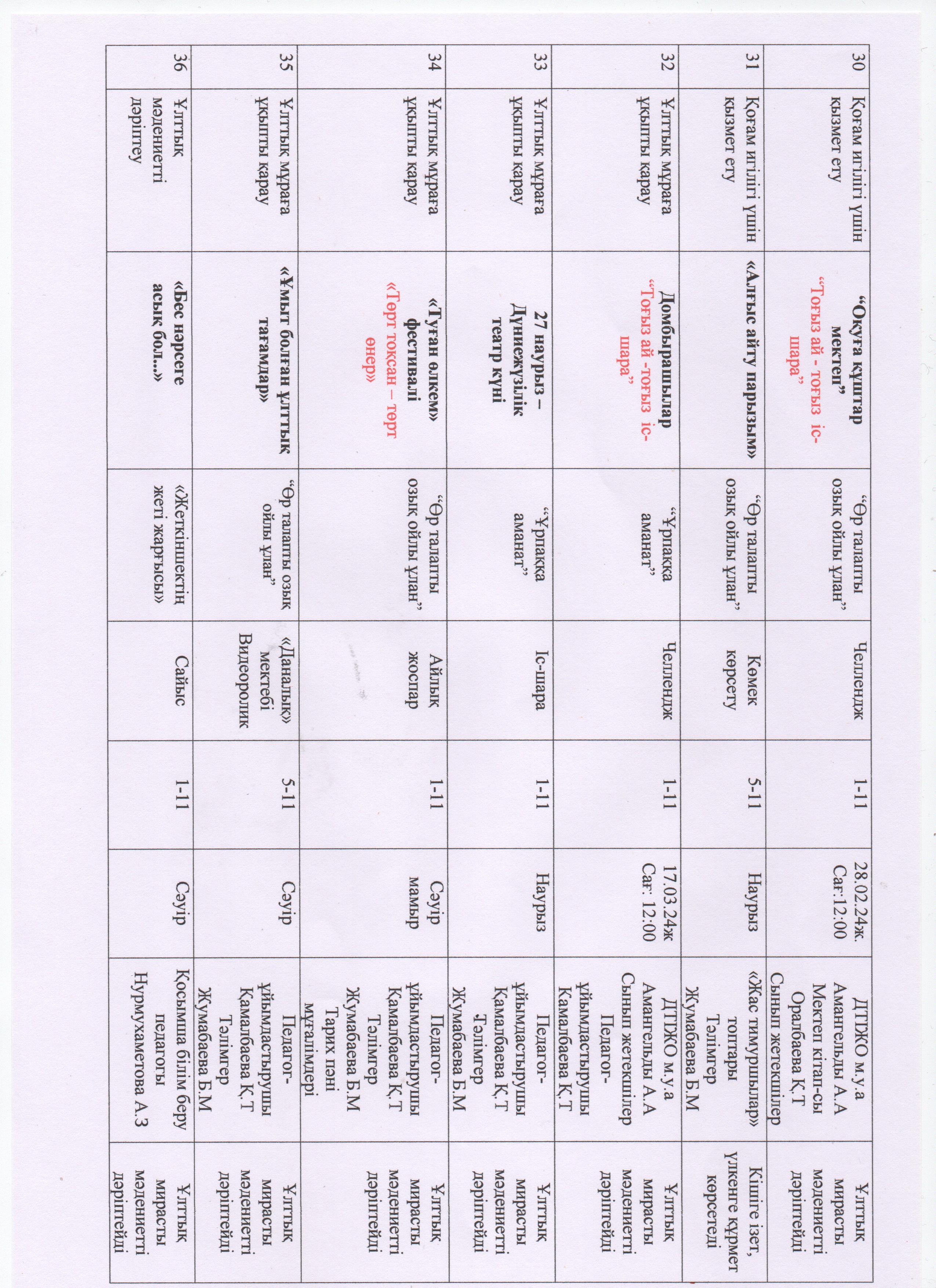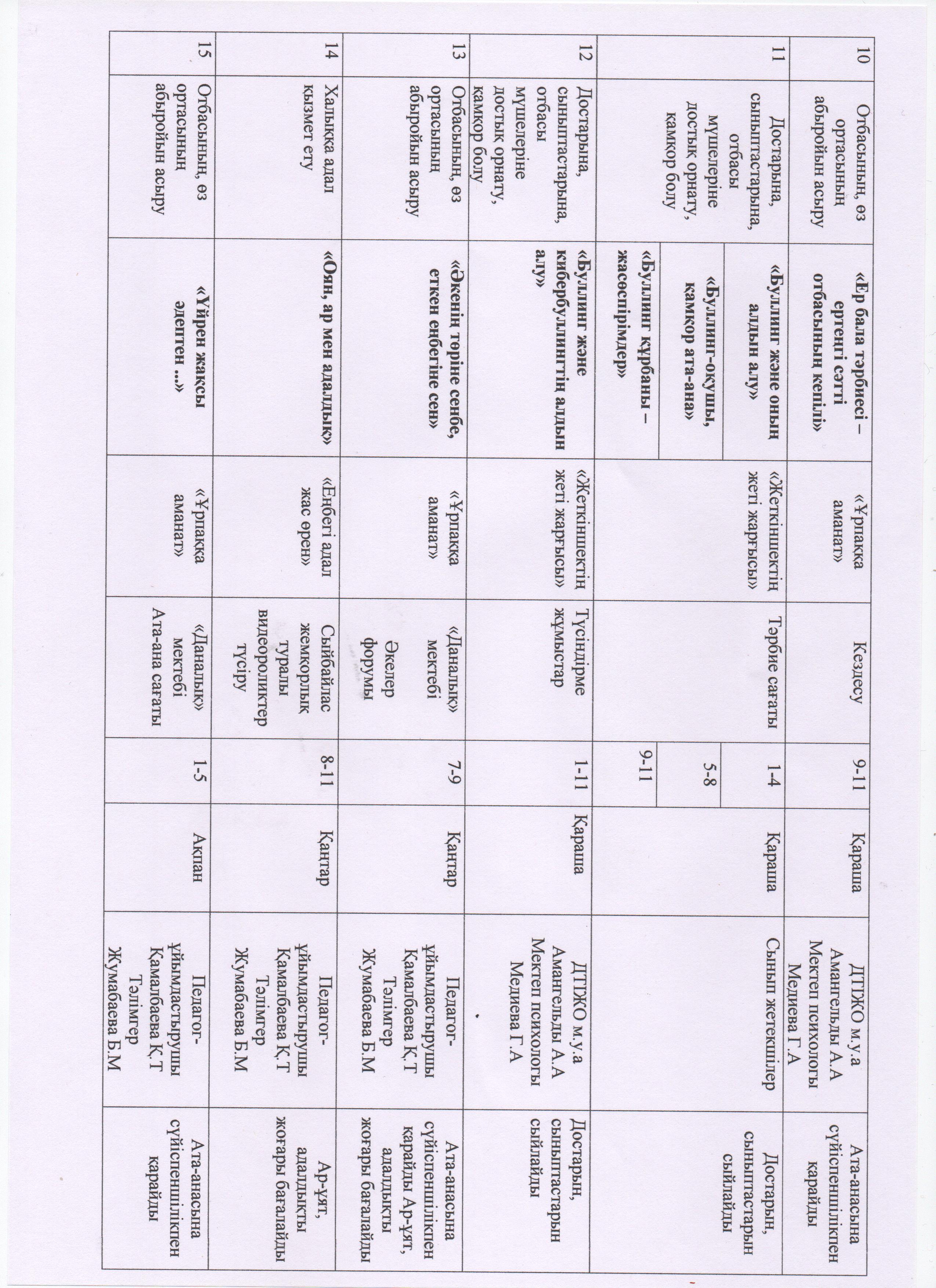 2023-2024 оқу жылына арналған тәрбие жұмысының жоспары