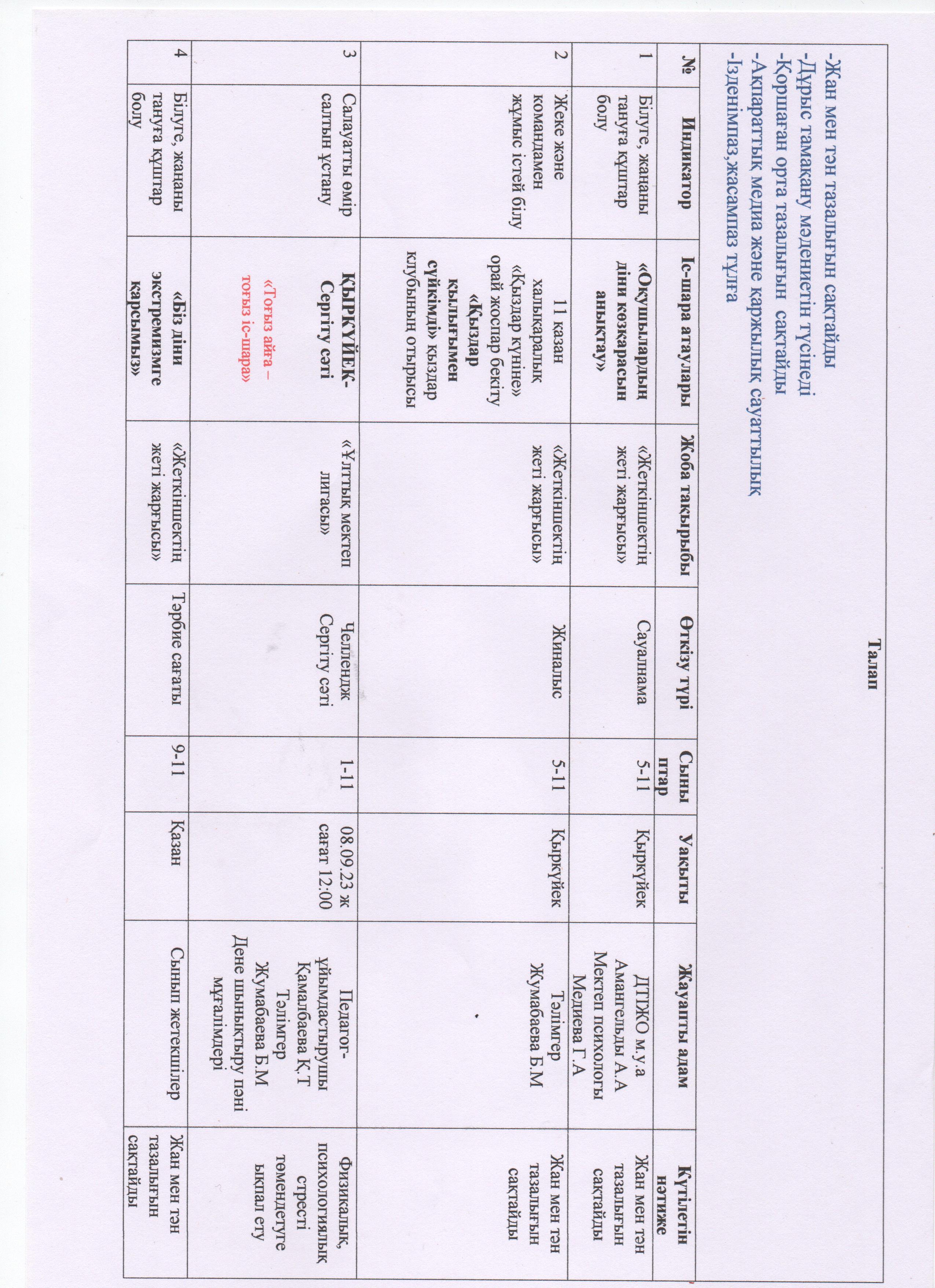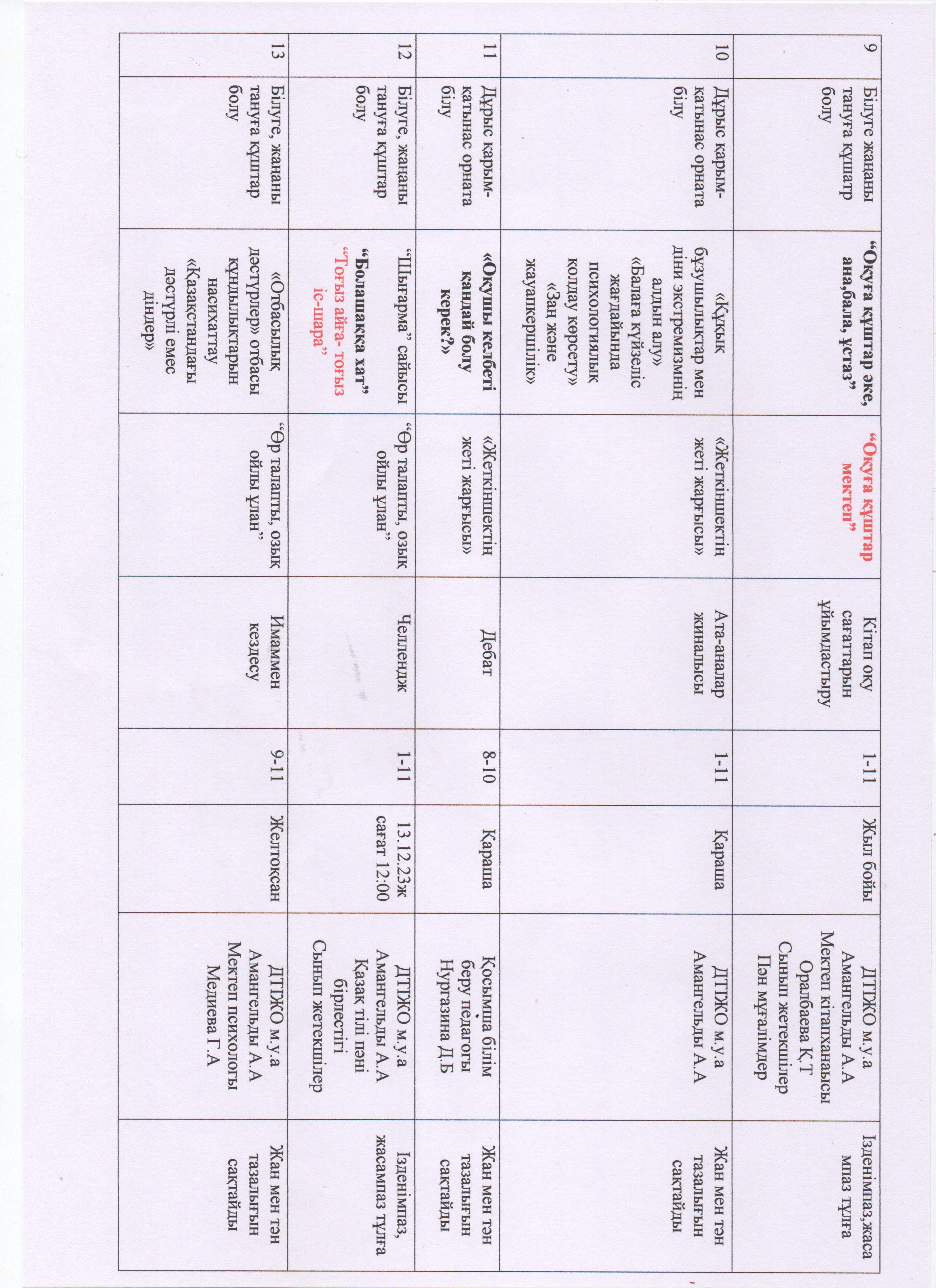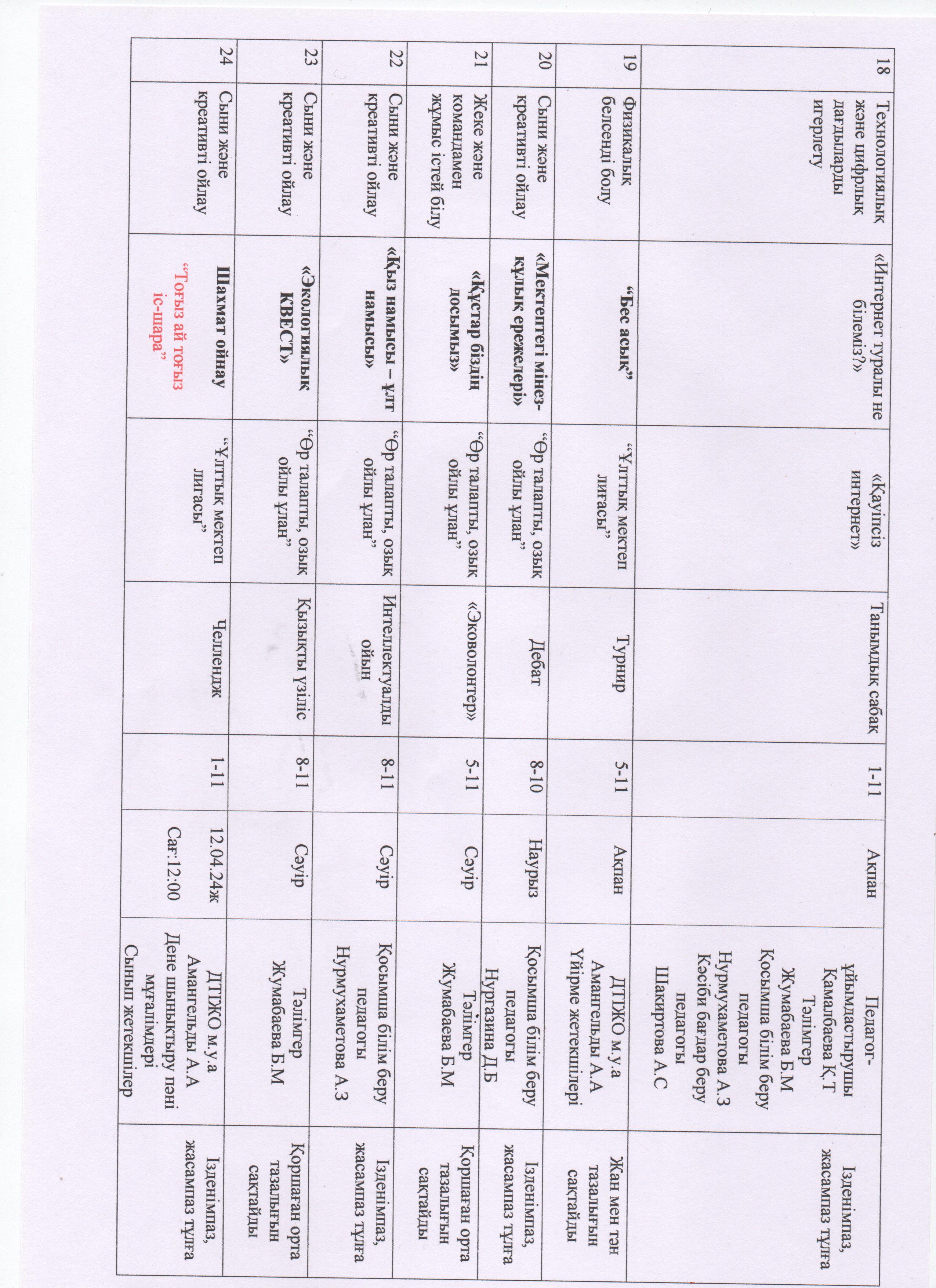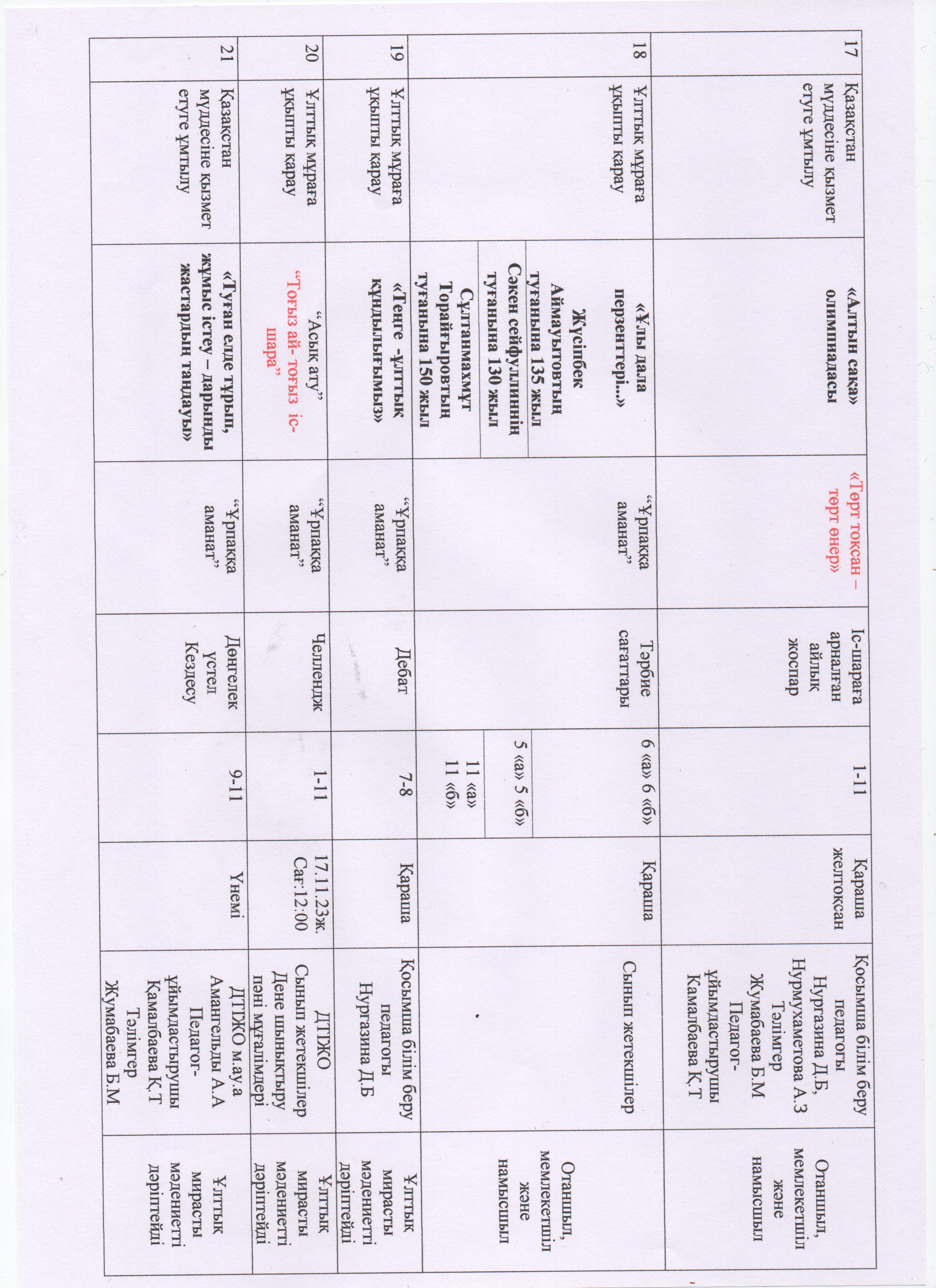 2023-2024 оқу жылына арналған тәрбие жұмысының жоспары