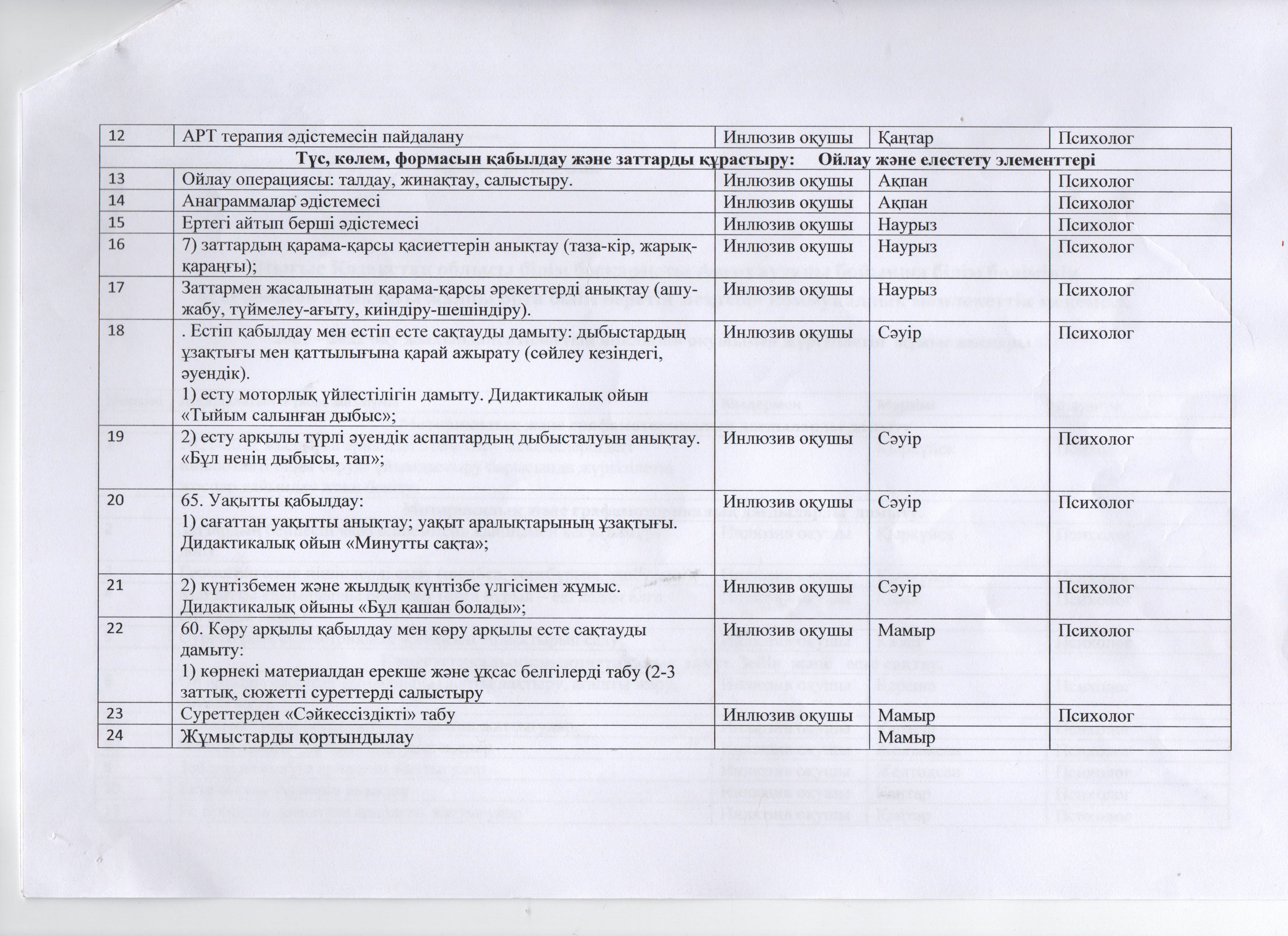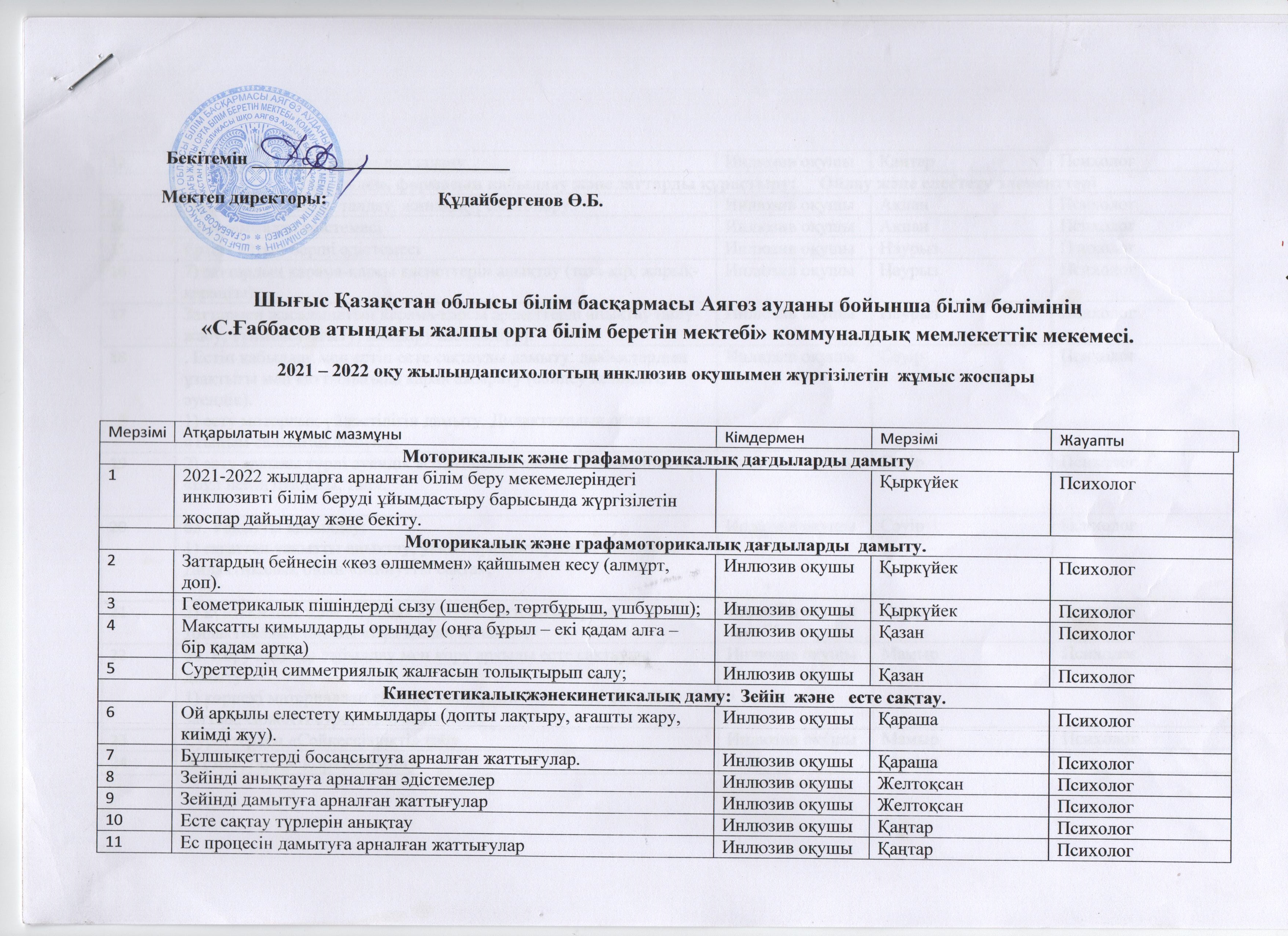 2021-2022 оқу жылында психологтың инклюзив оқушымен жүргізілетін жұмыс жоспары
