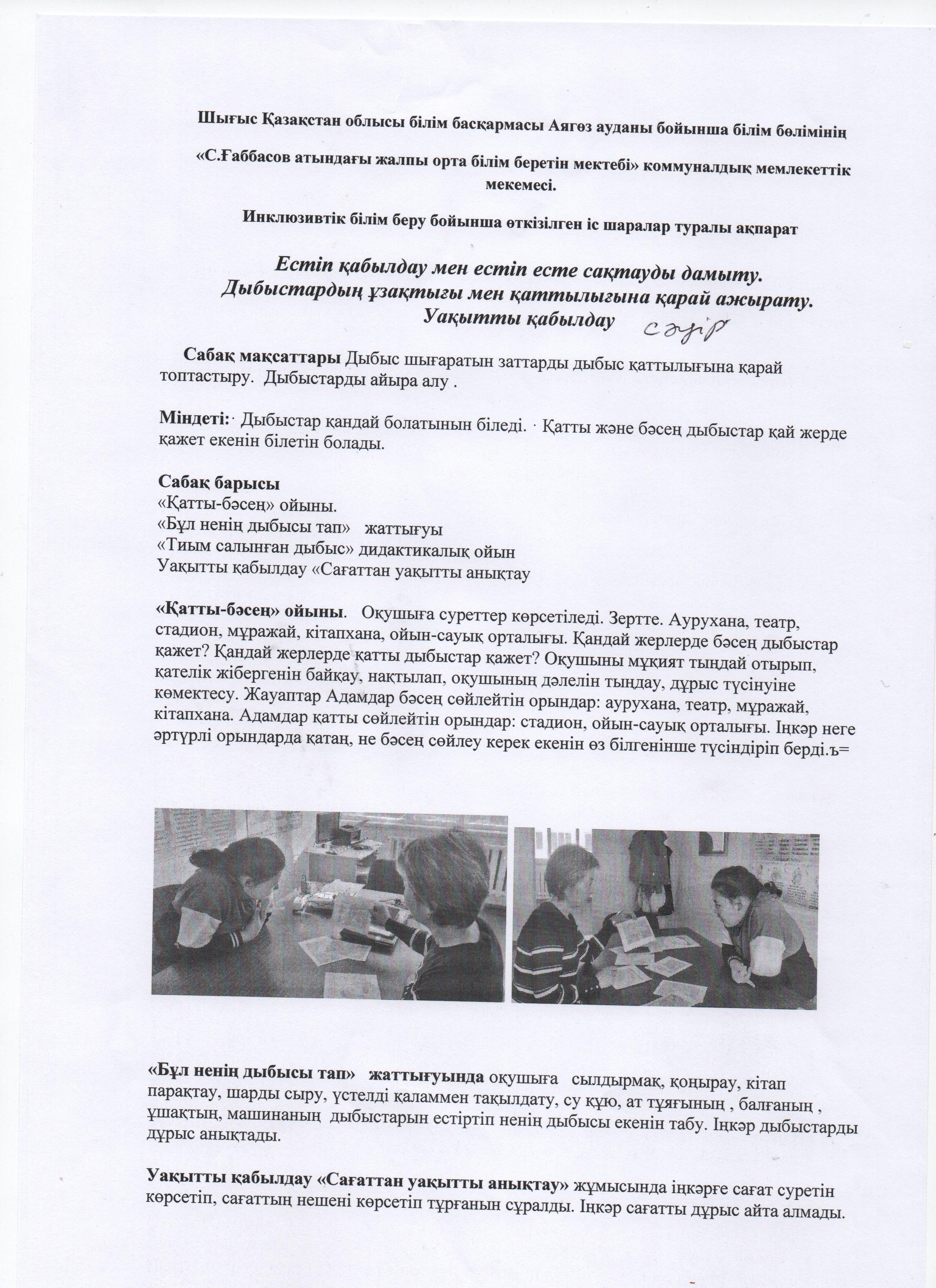 » Инклюзивтік білім беру бойынша өткізілетін іс-шаралар туралы акпарат