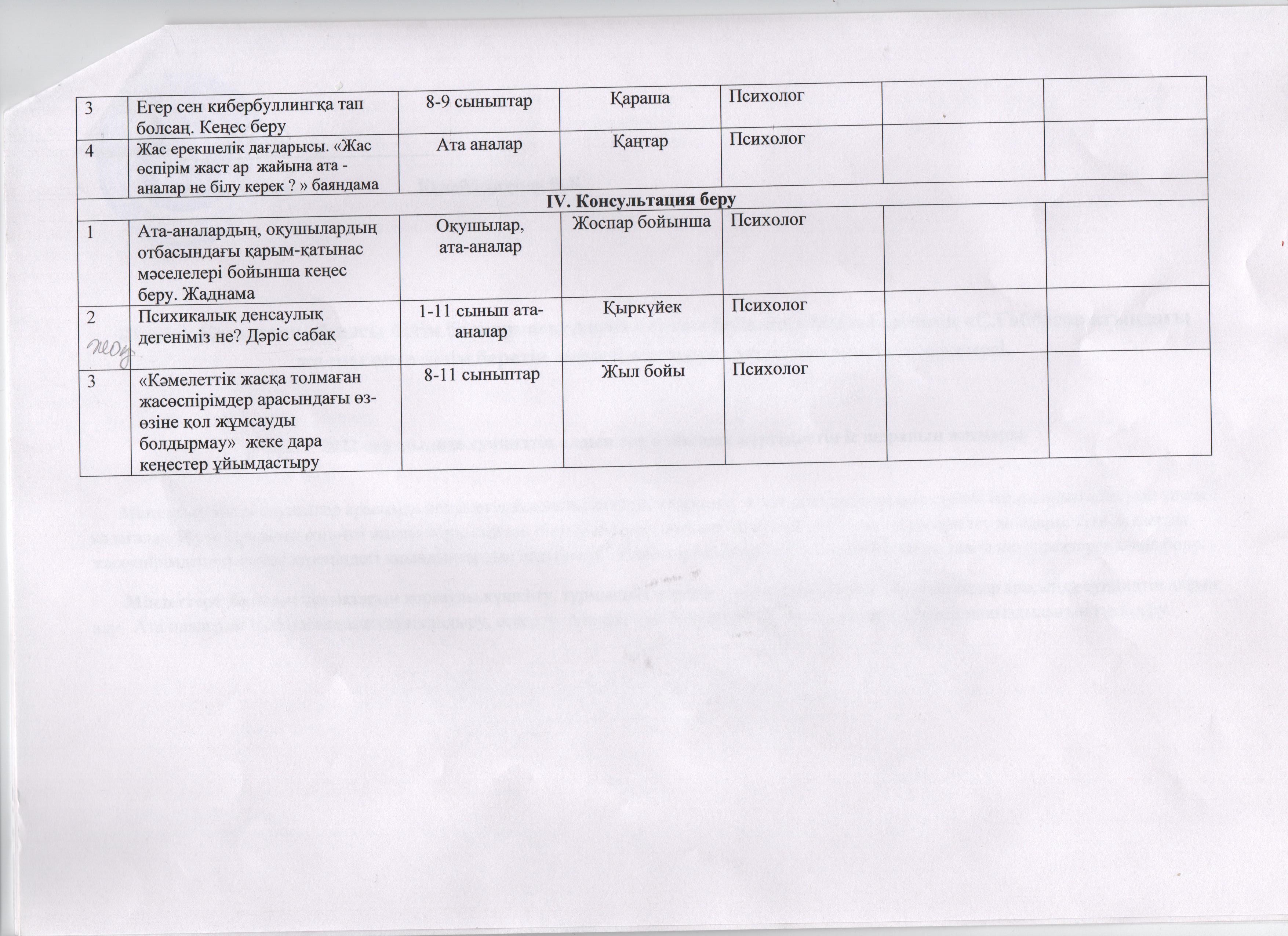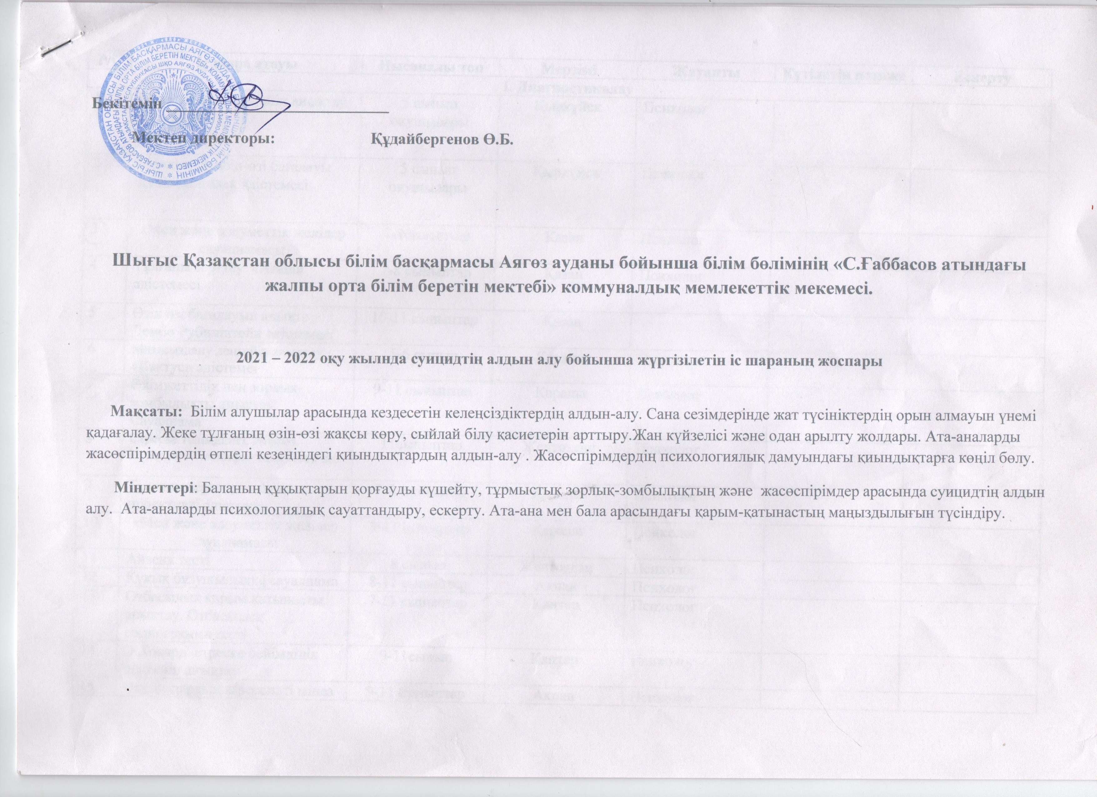 2021-2022 оқу жылында суицидтің жолын алу бойынша жүргізілетін іс-шараның жоспары