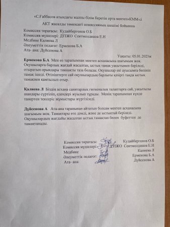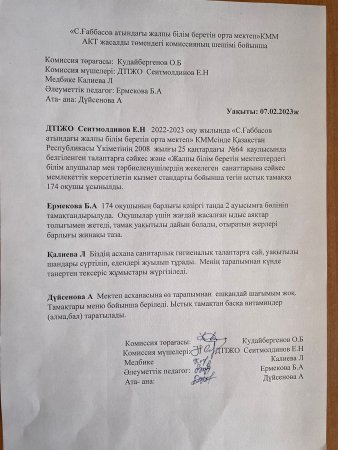 » Қаңтар-Ақпан айындағы ыстық тамақ туралы мәлімет