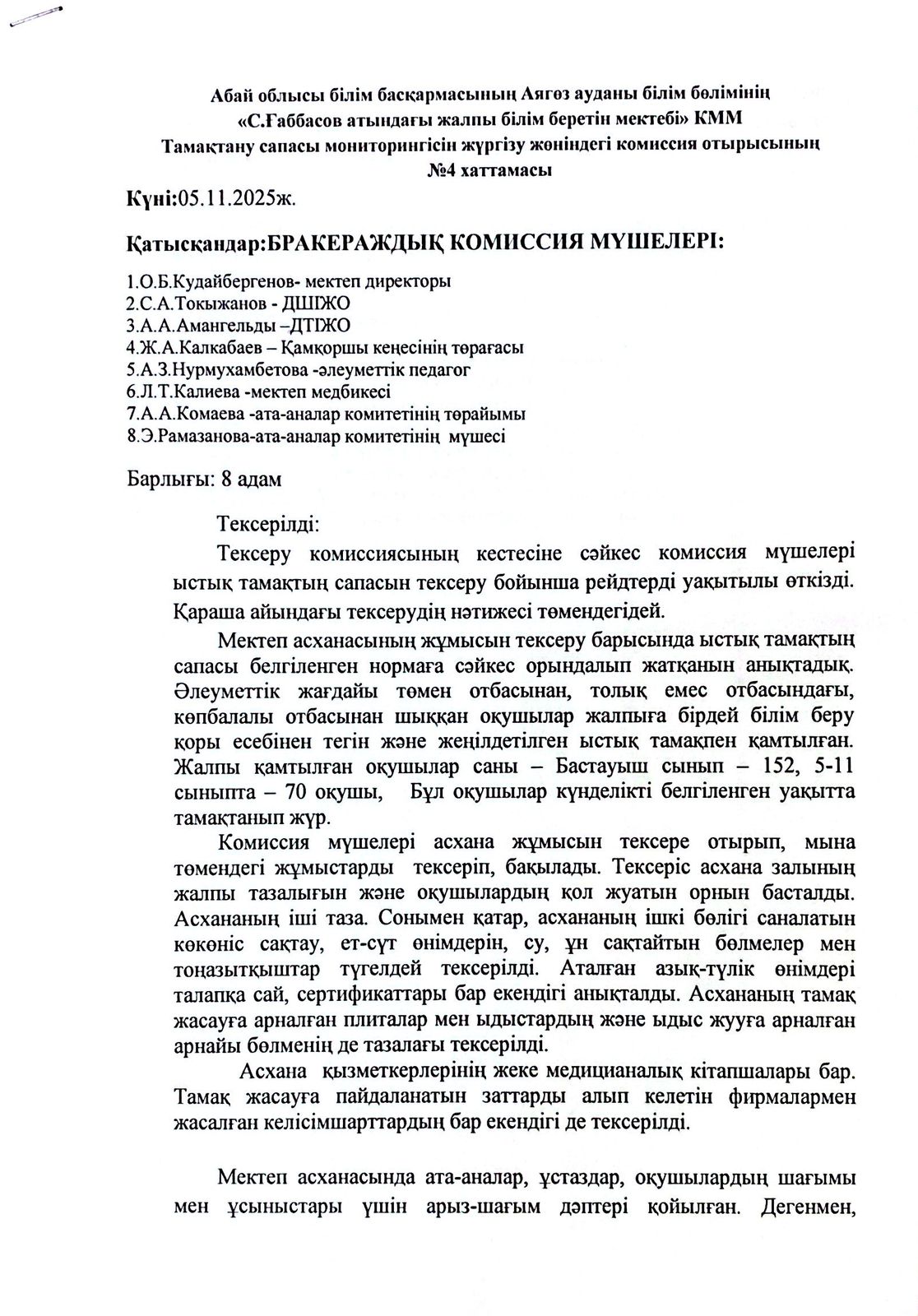 » ТАМАҚТАНУ САПАСЫНЫҢ МОНИТОРИНГІ 05.11.2025