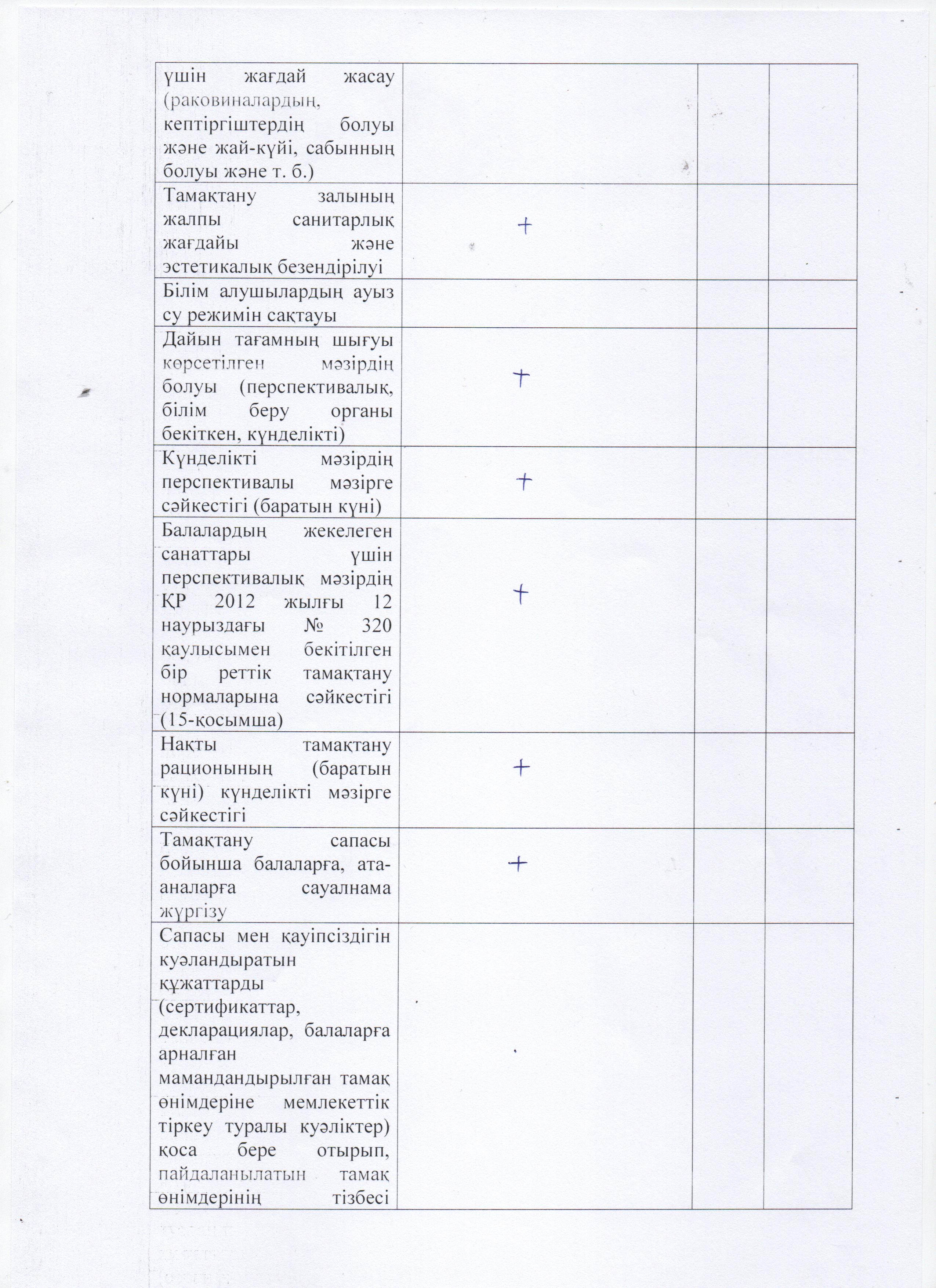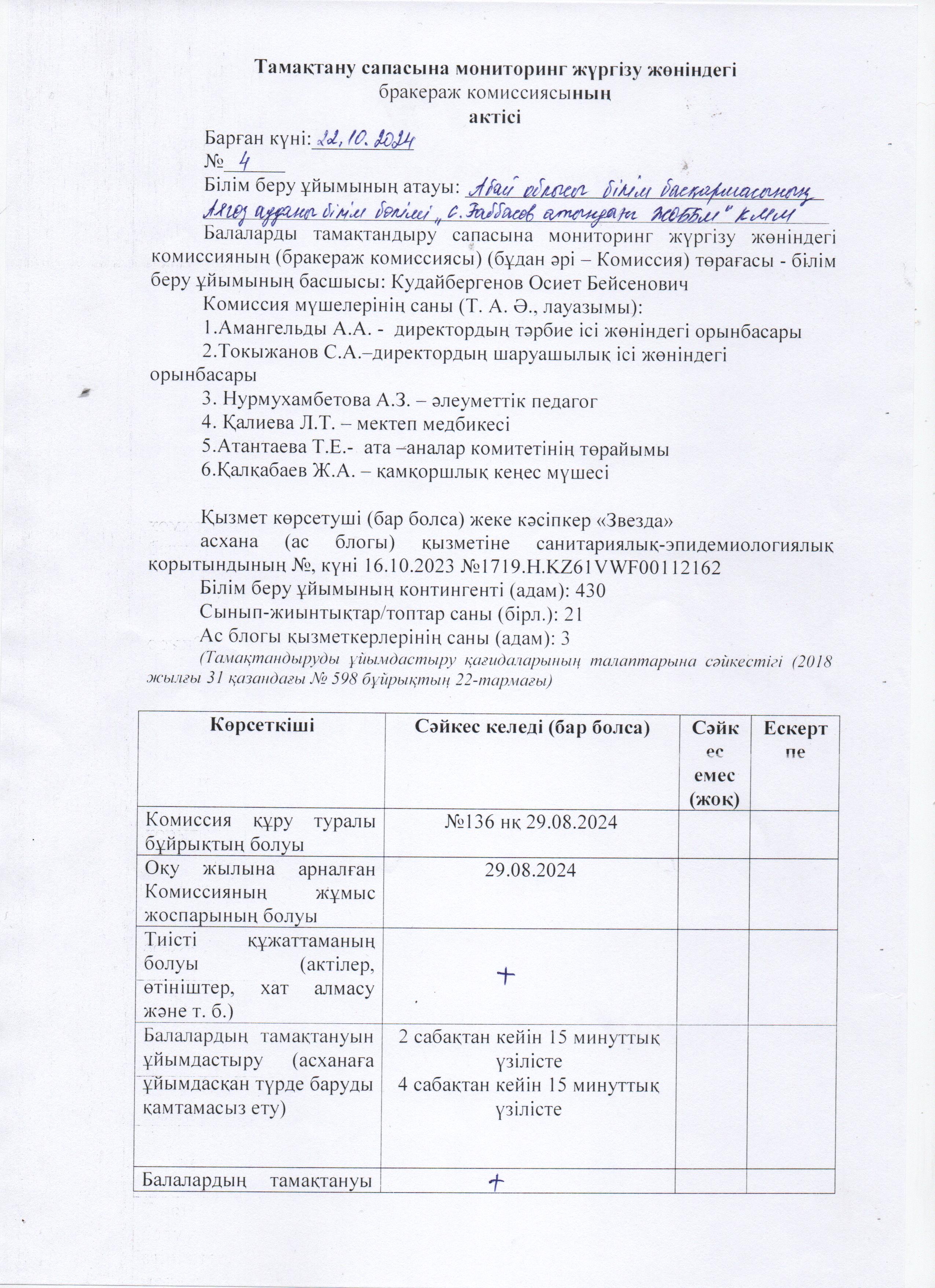 » Тамақтану сапасына мониторинг жүргізу жөніндегі бракераж комиссиясының актісі
