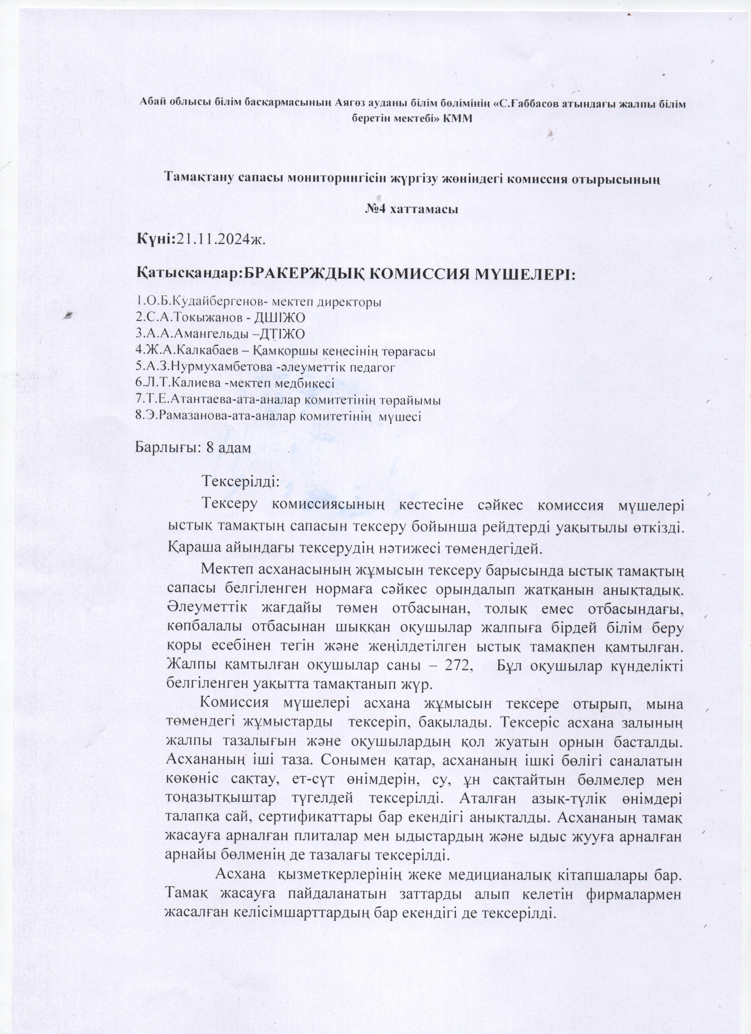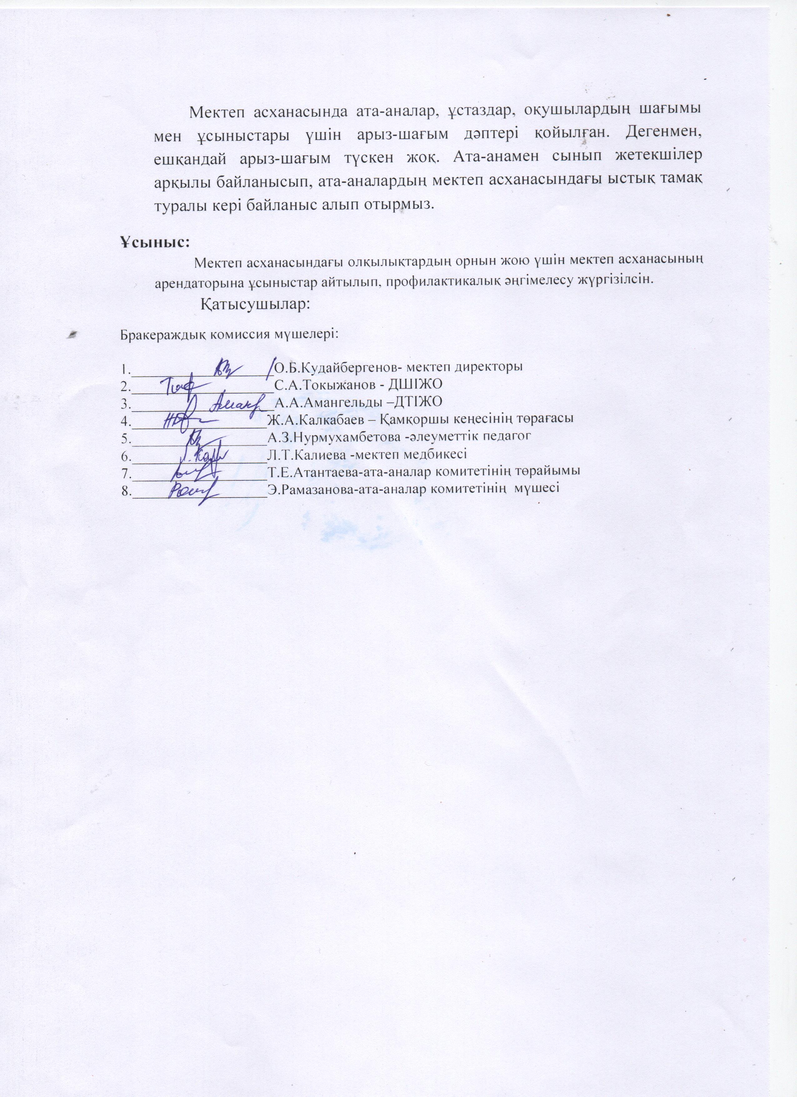 Бракераж комиссиясының хаттамасы Караша