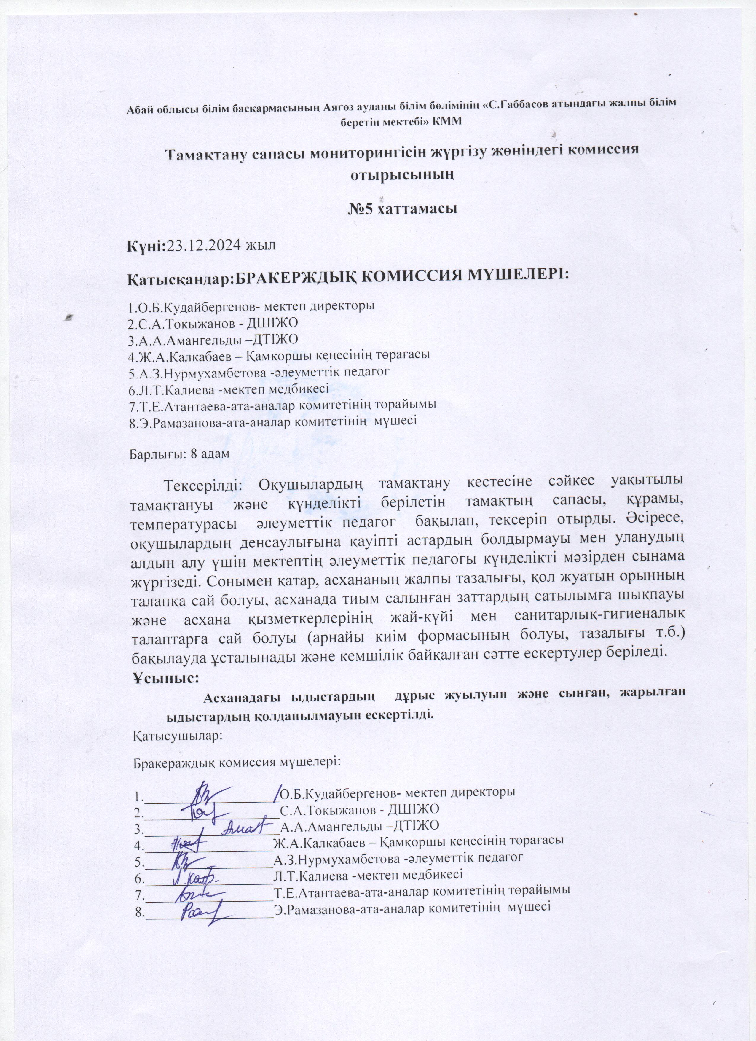 » Бракераж комиссиясының хаттамасы Желтоксан