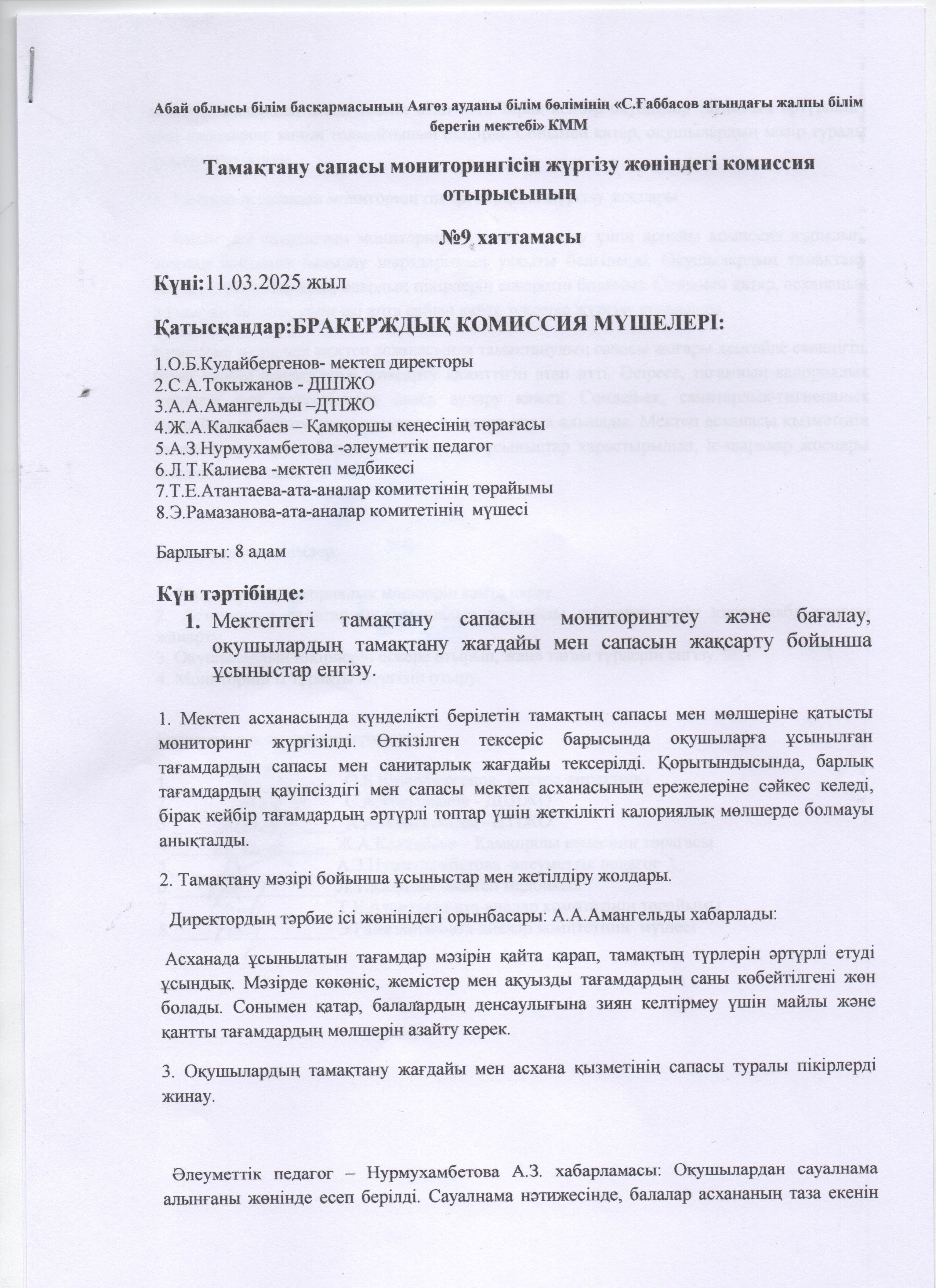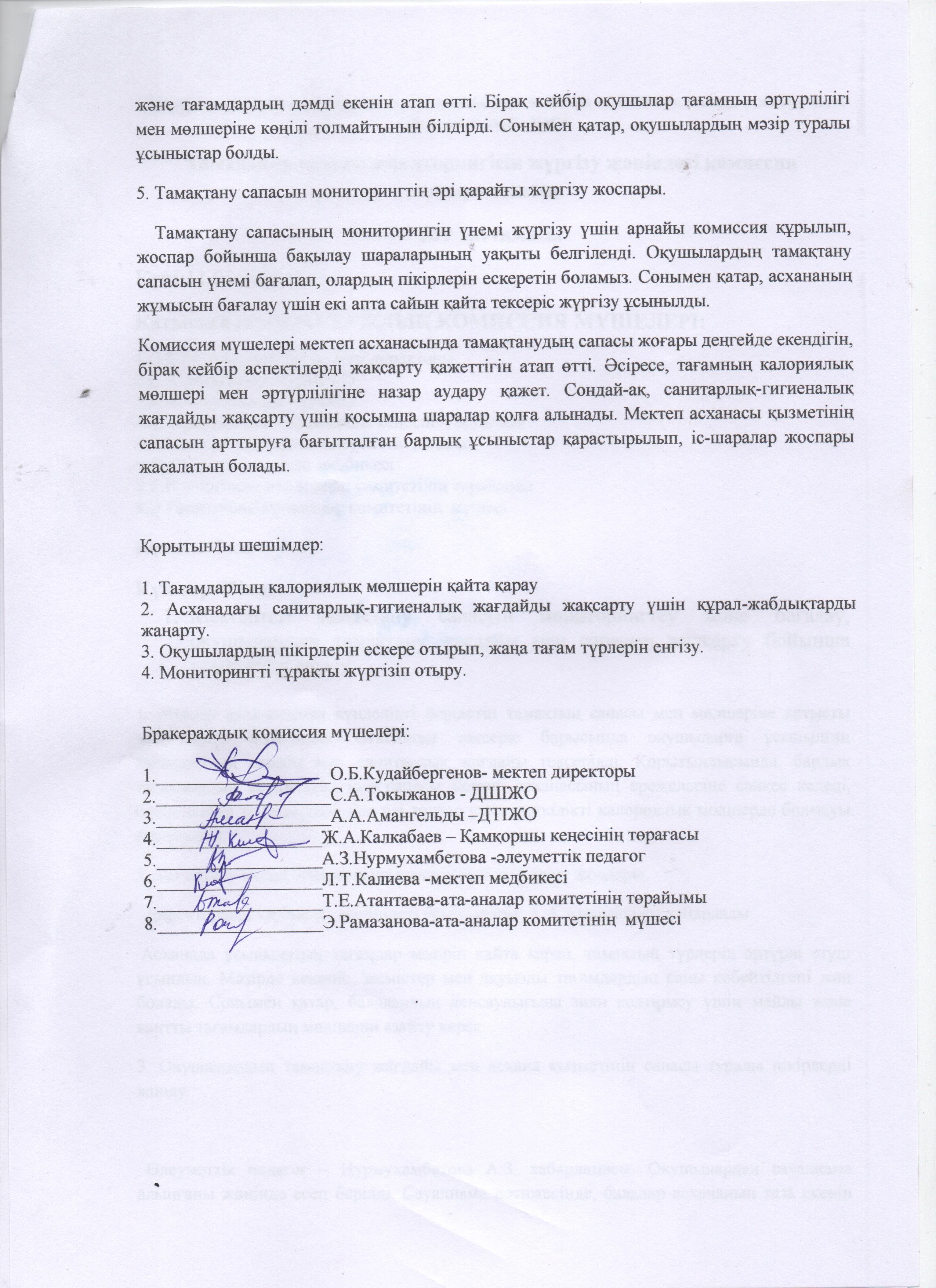 » Бракераж комиссиясының мониторинг актісі