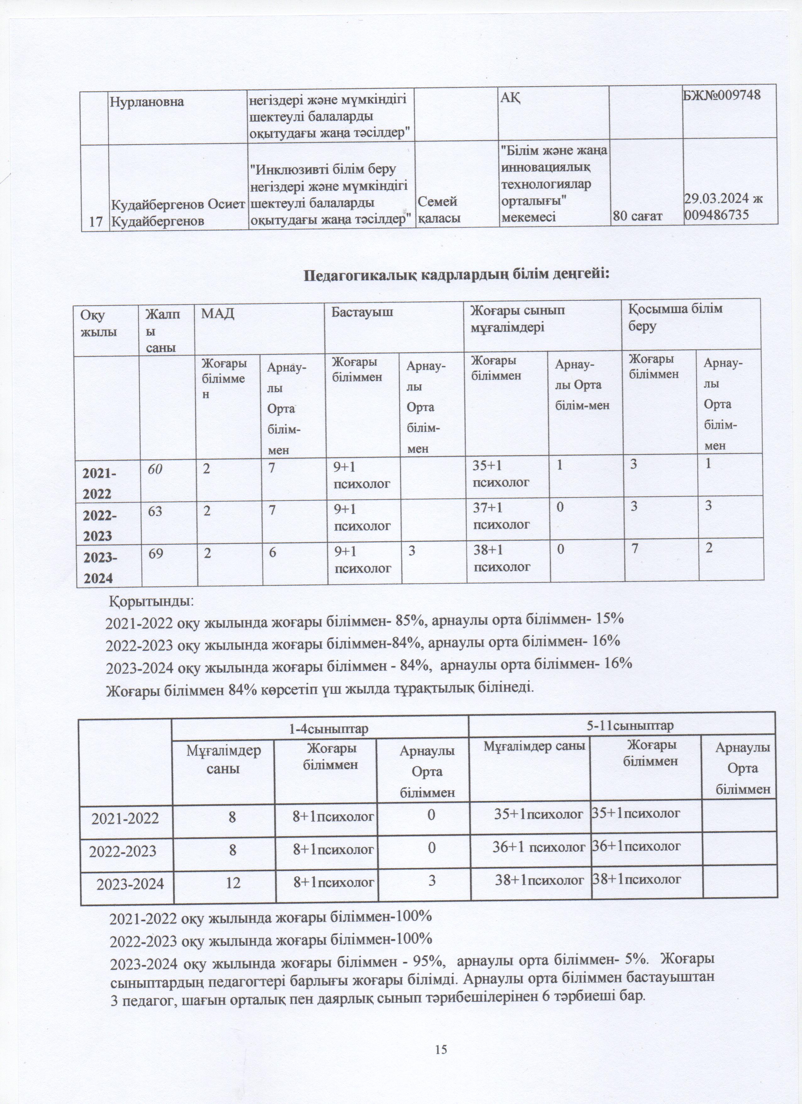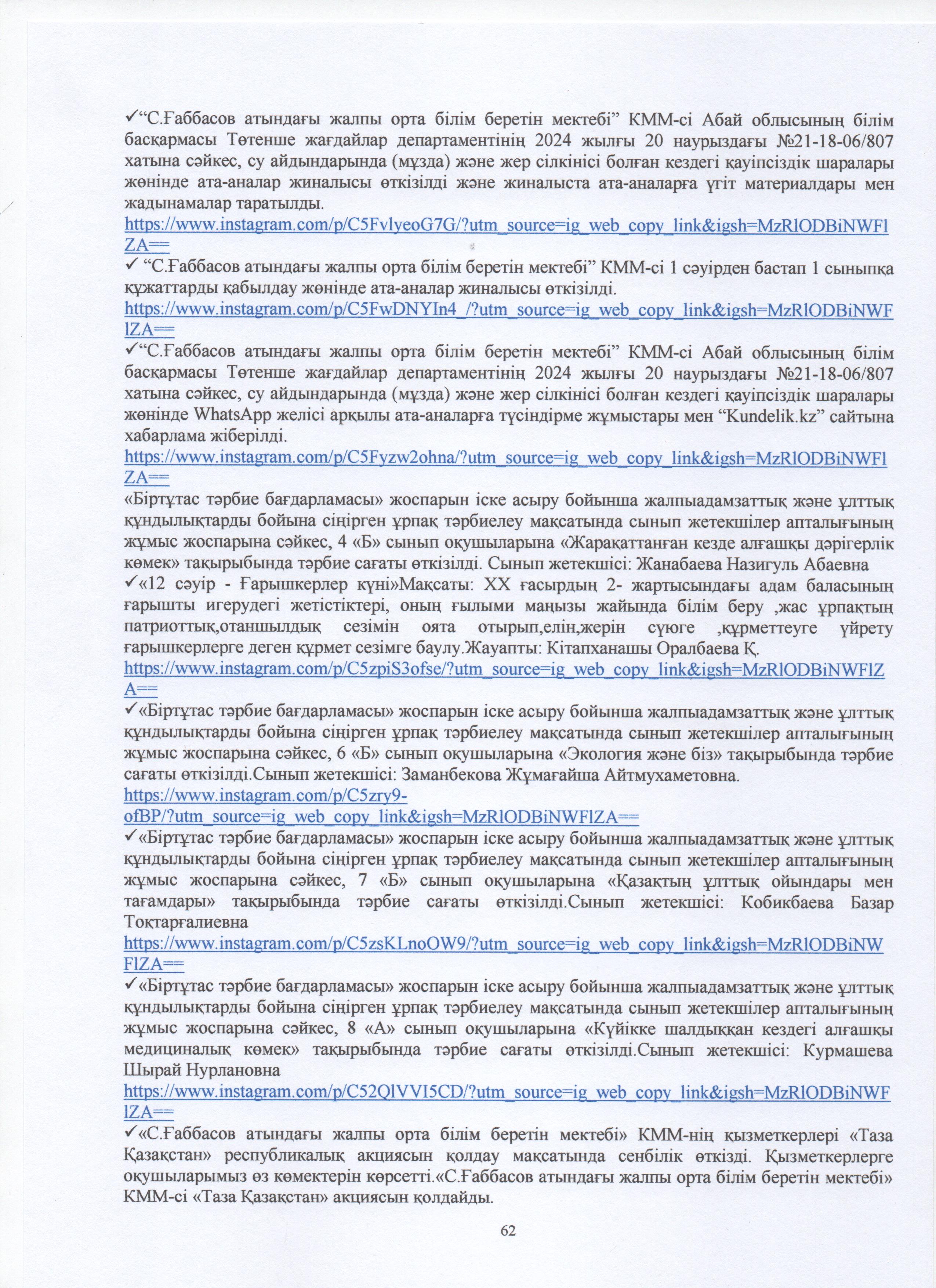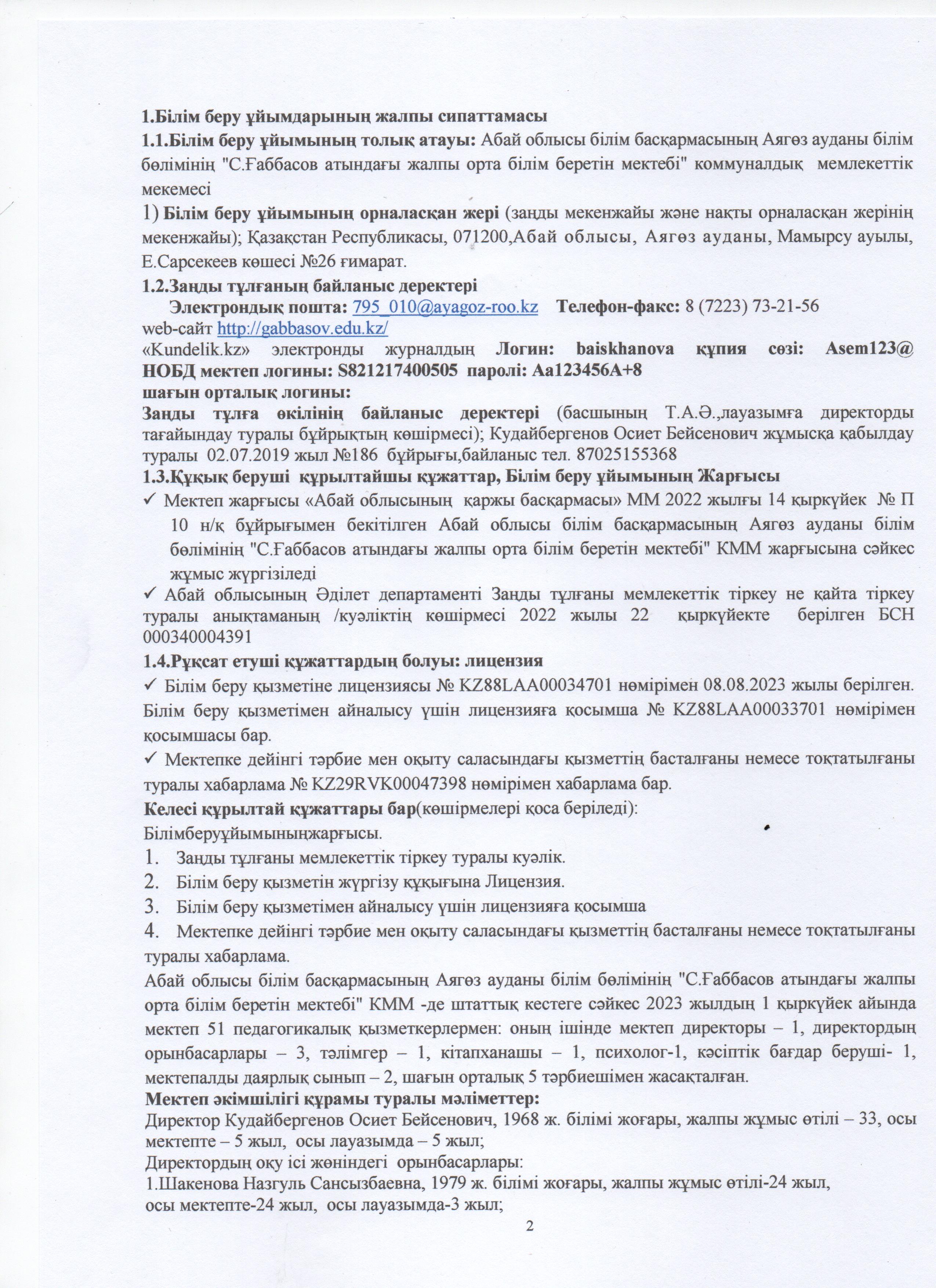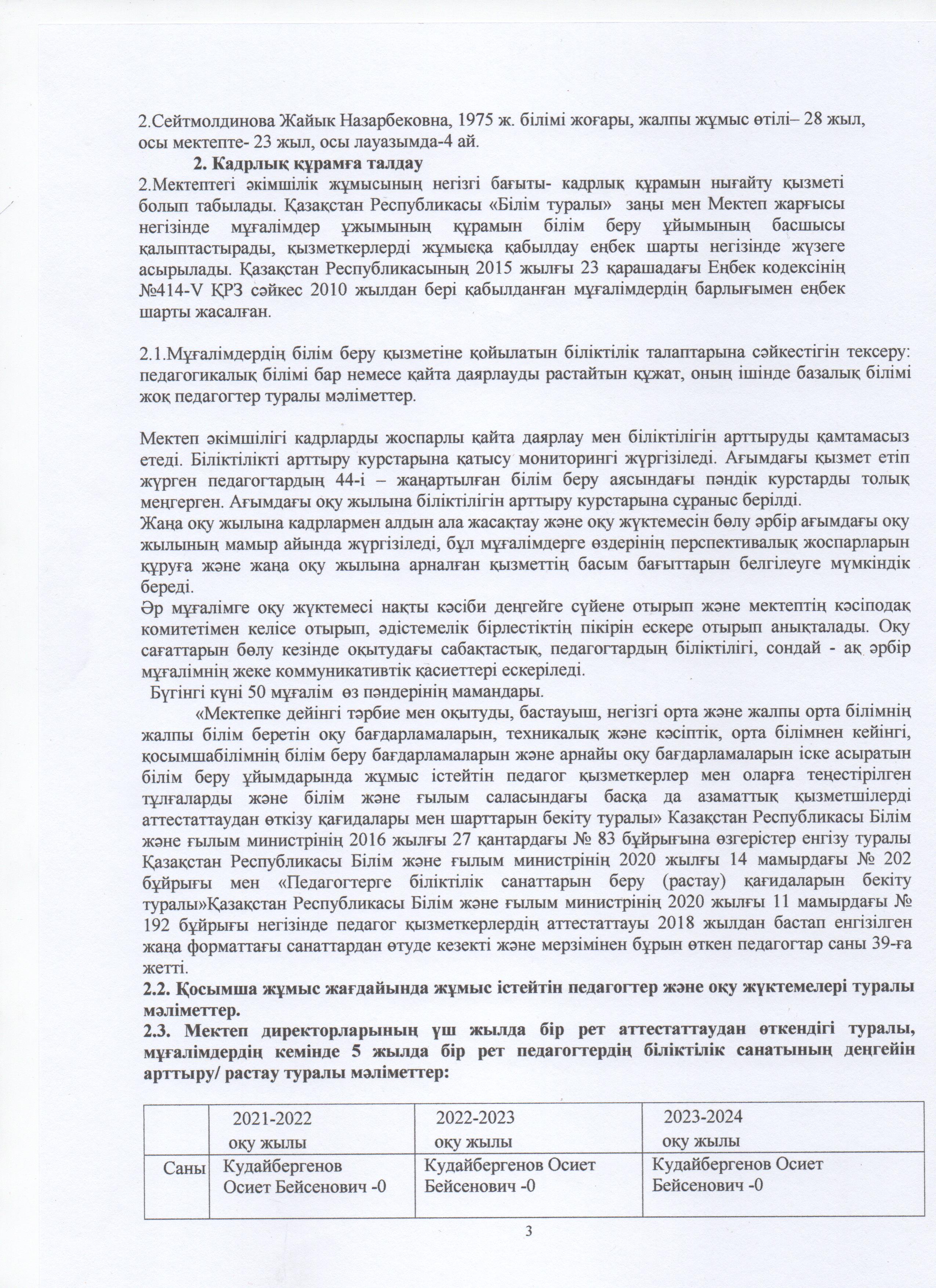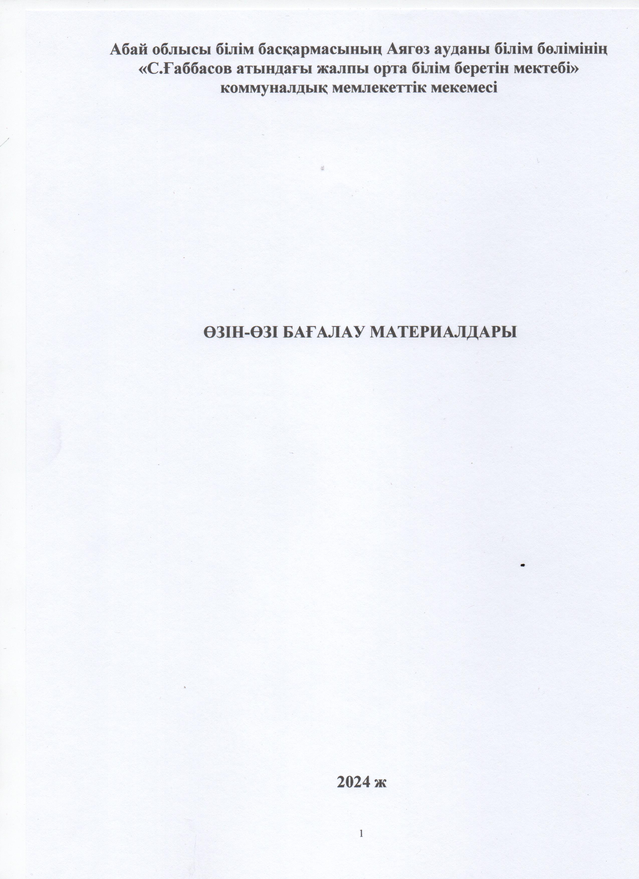 » ӨЗІН-ӨЗІ БАҒАЛАУ МАТЕРИАЛДАРЫ 2024 Жыл