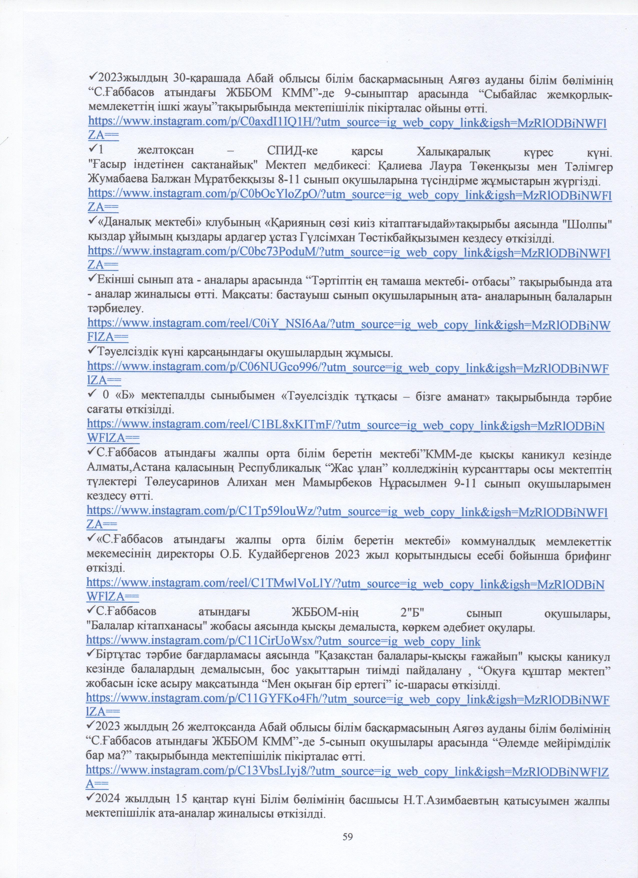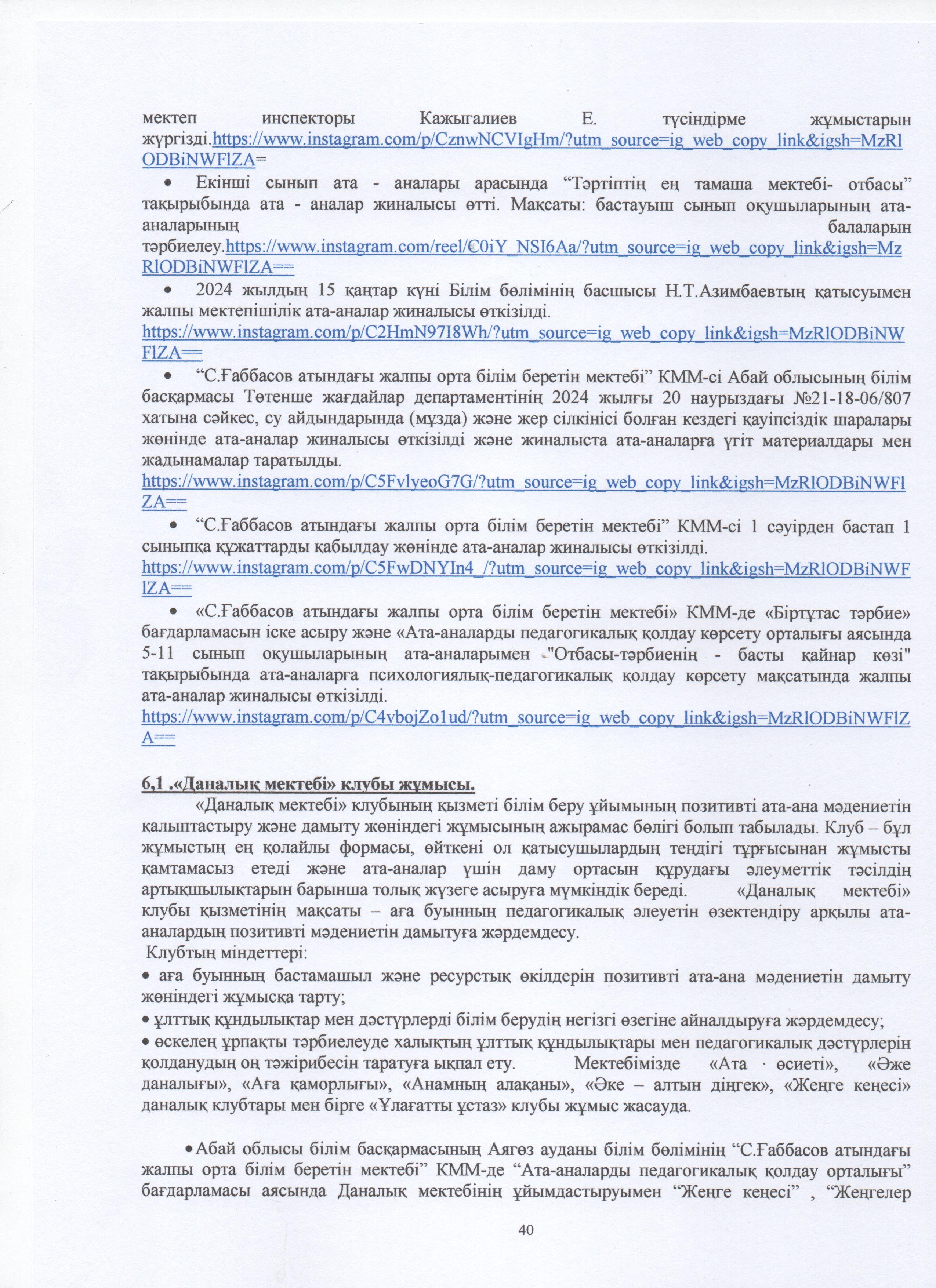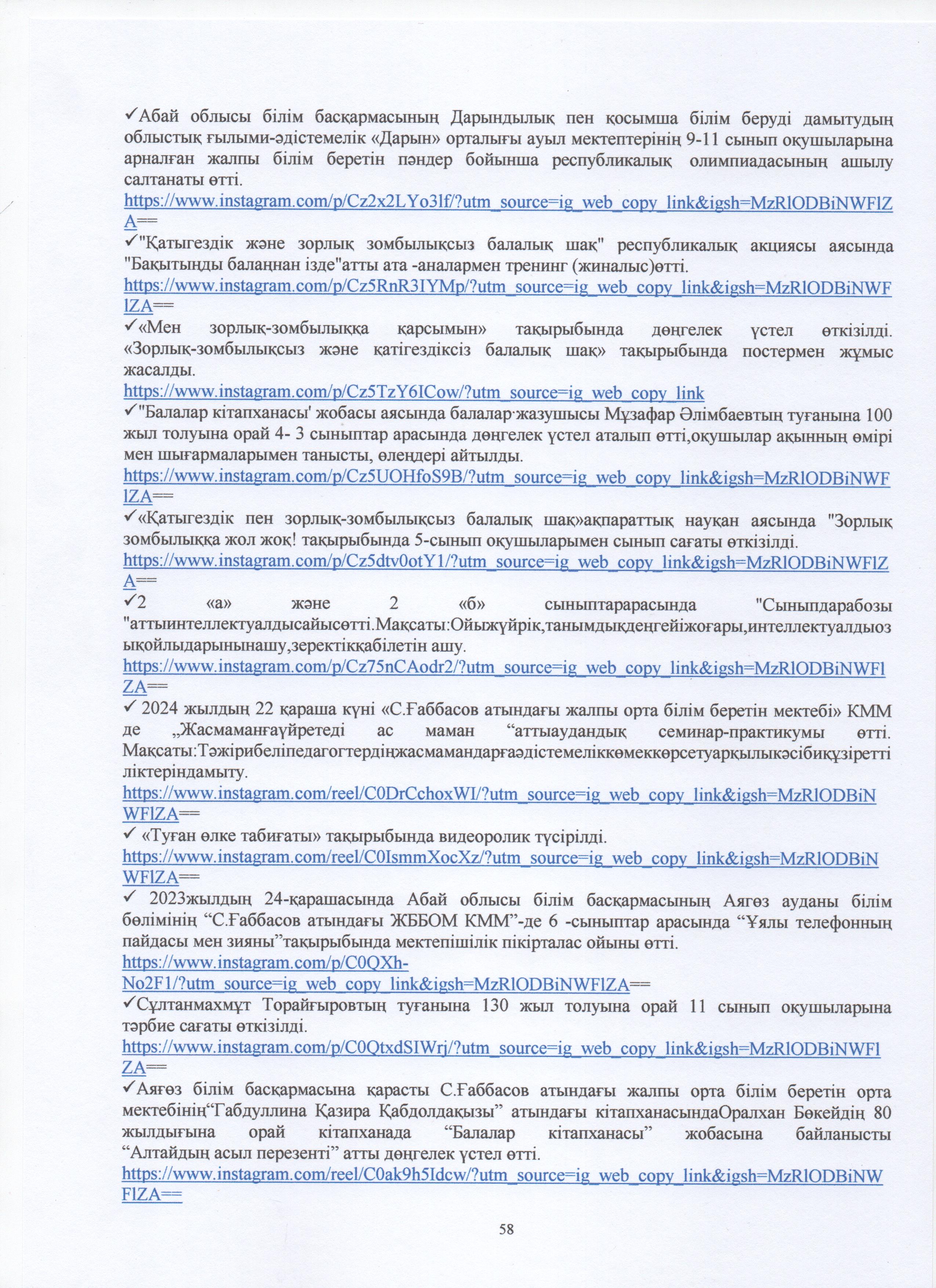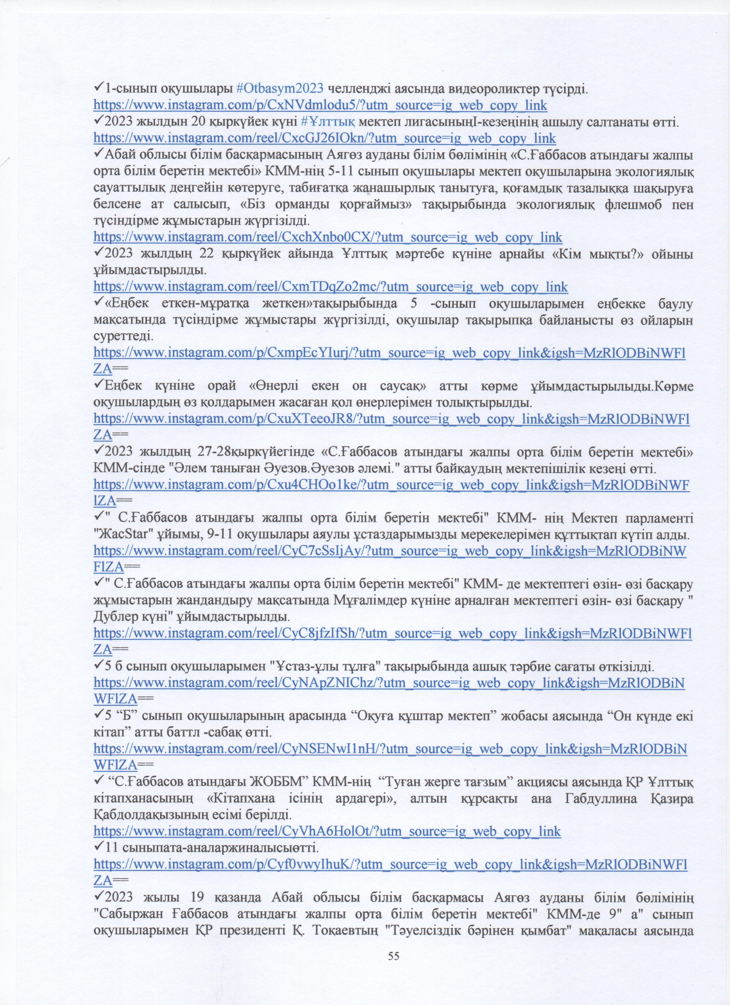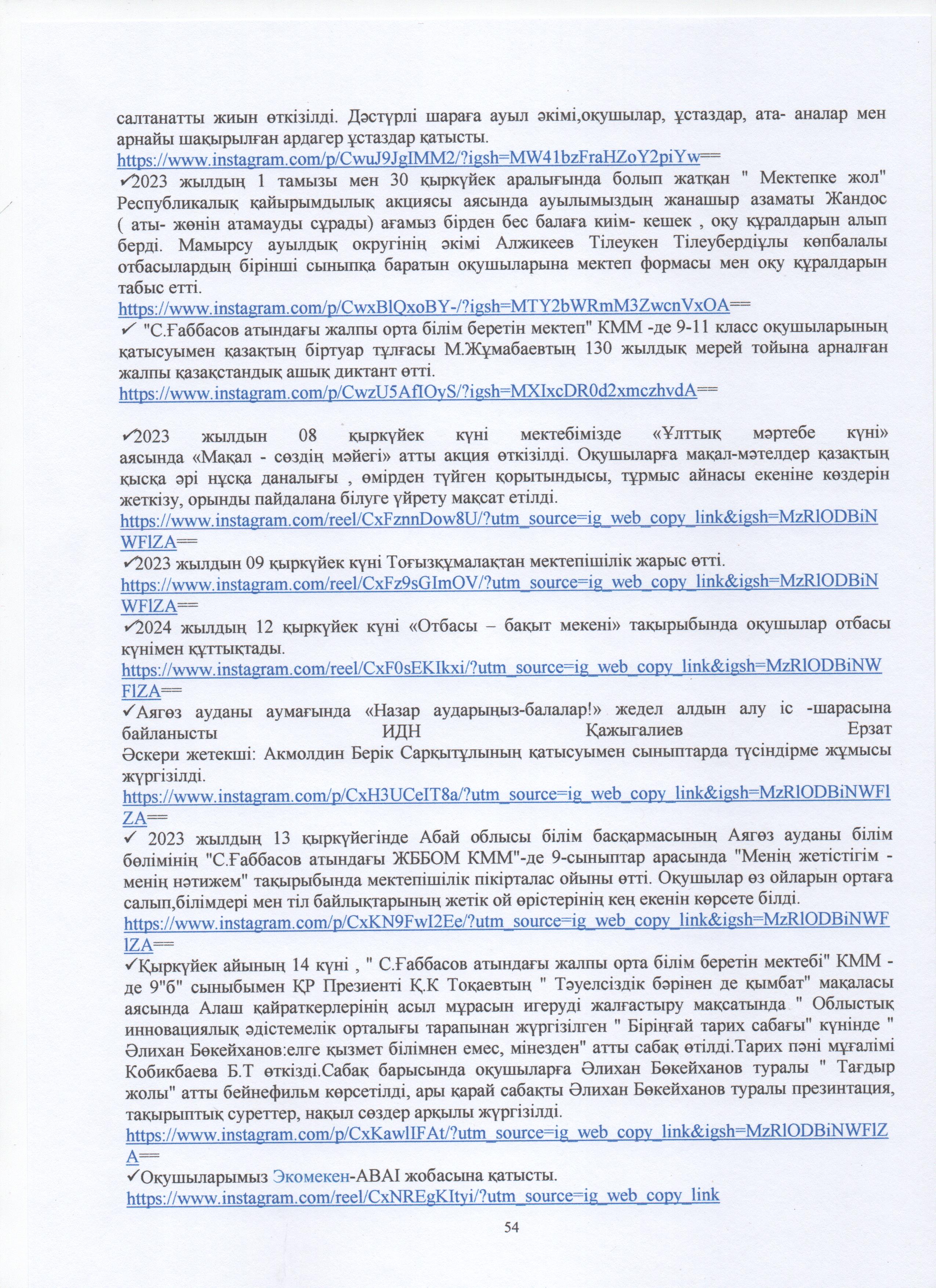 » ӨЗІН-ӨЗІ БАҒАЛАУ МАТЕРИАЛДАРЫ 2024 Жыл