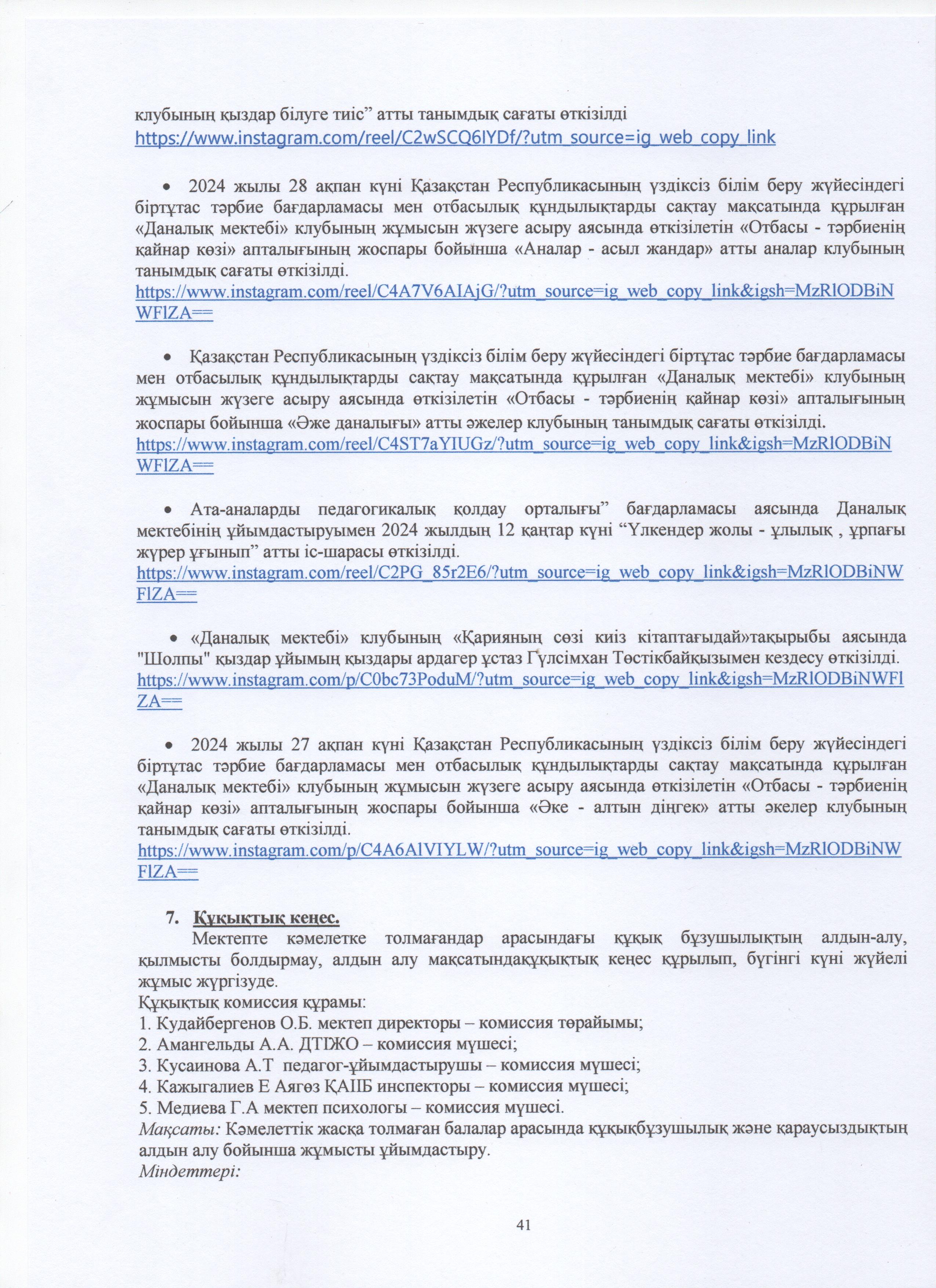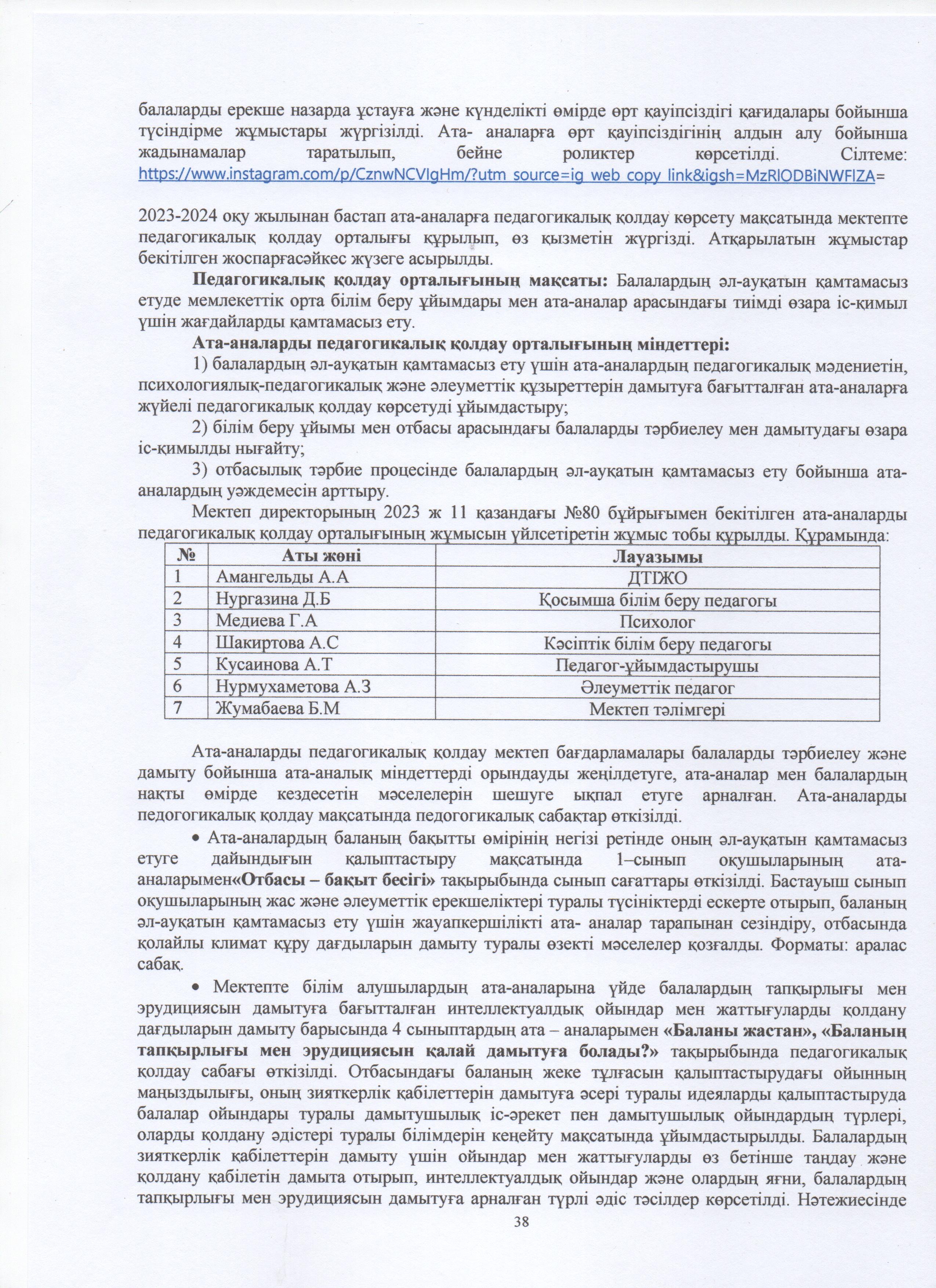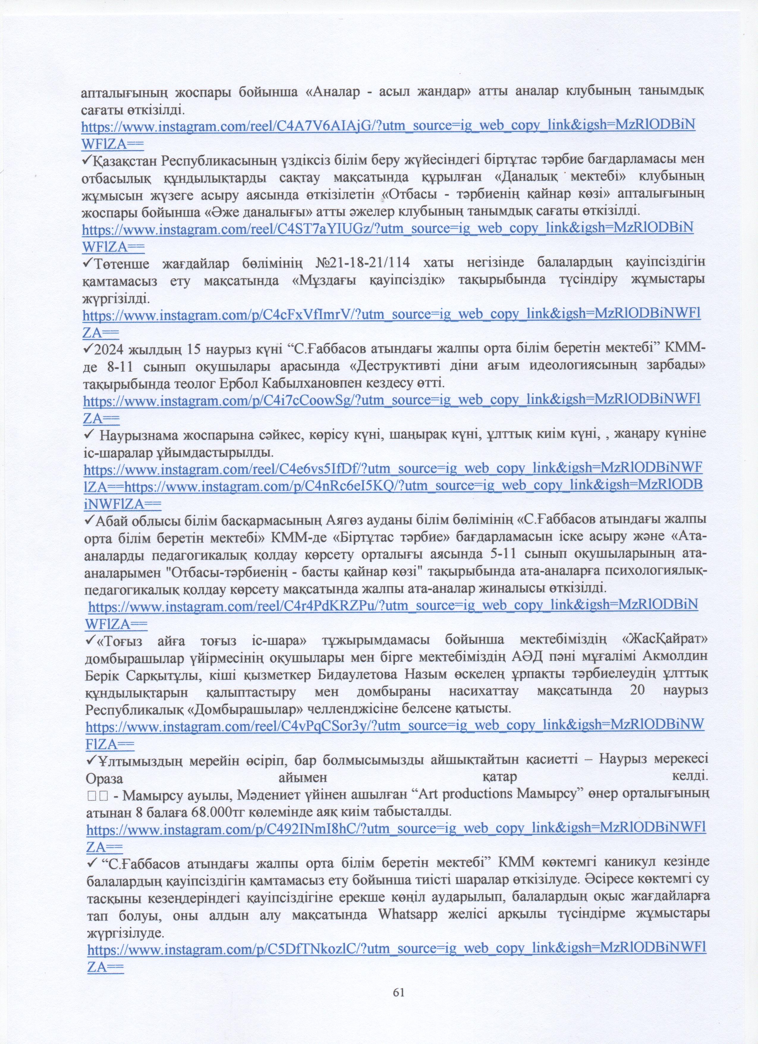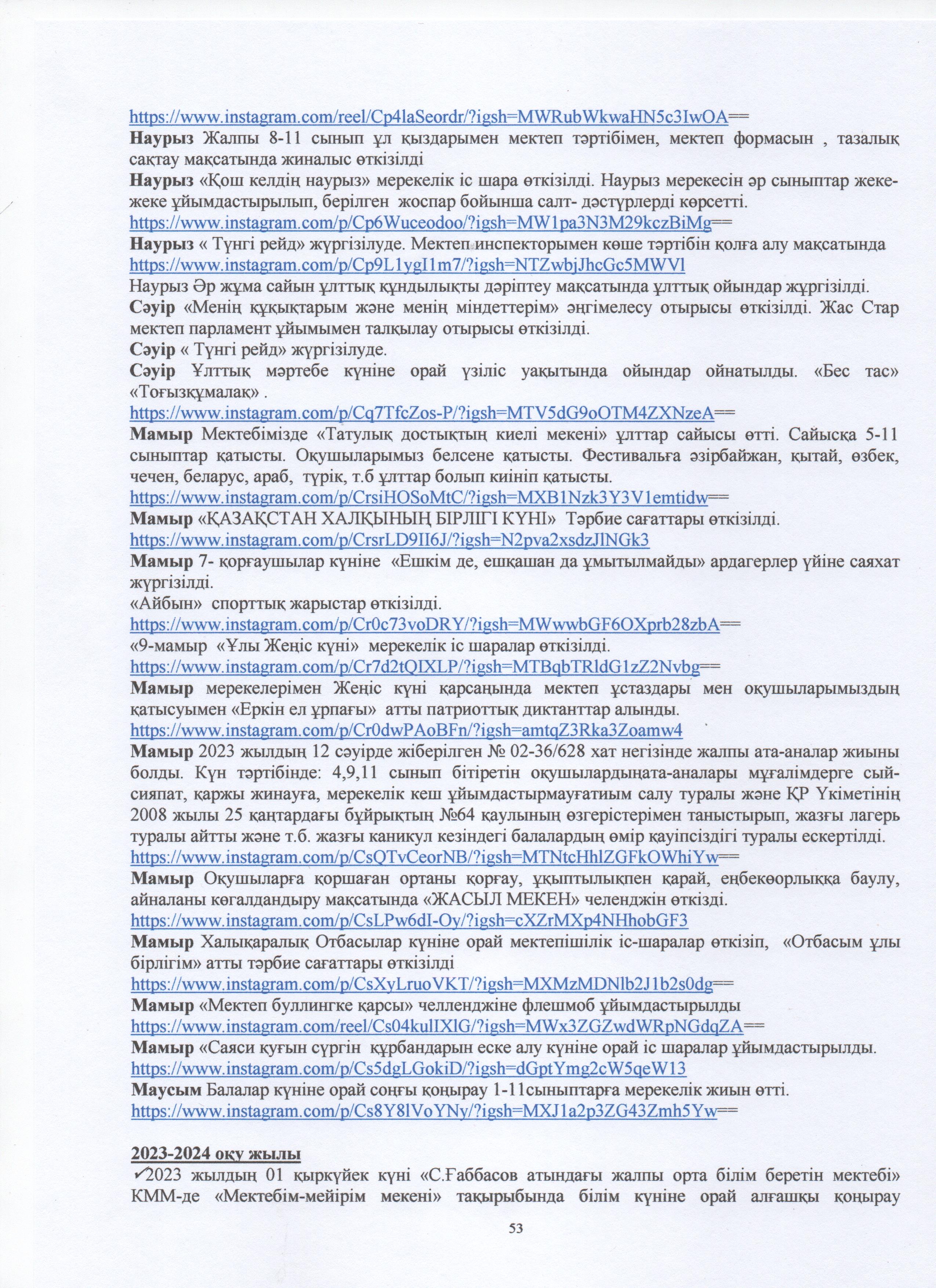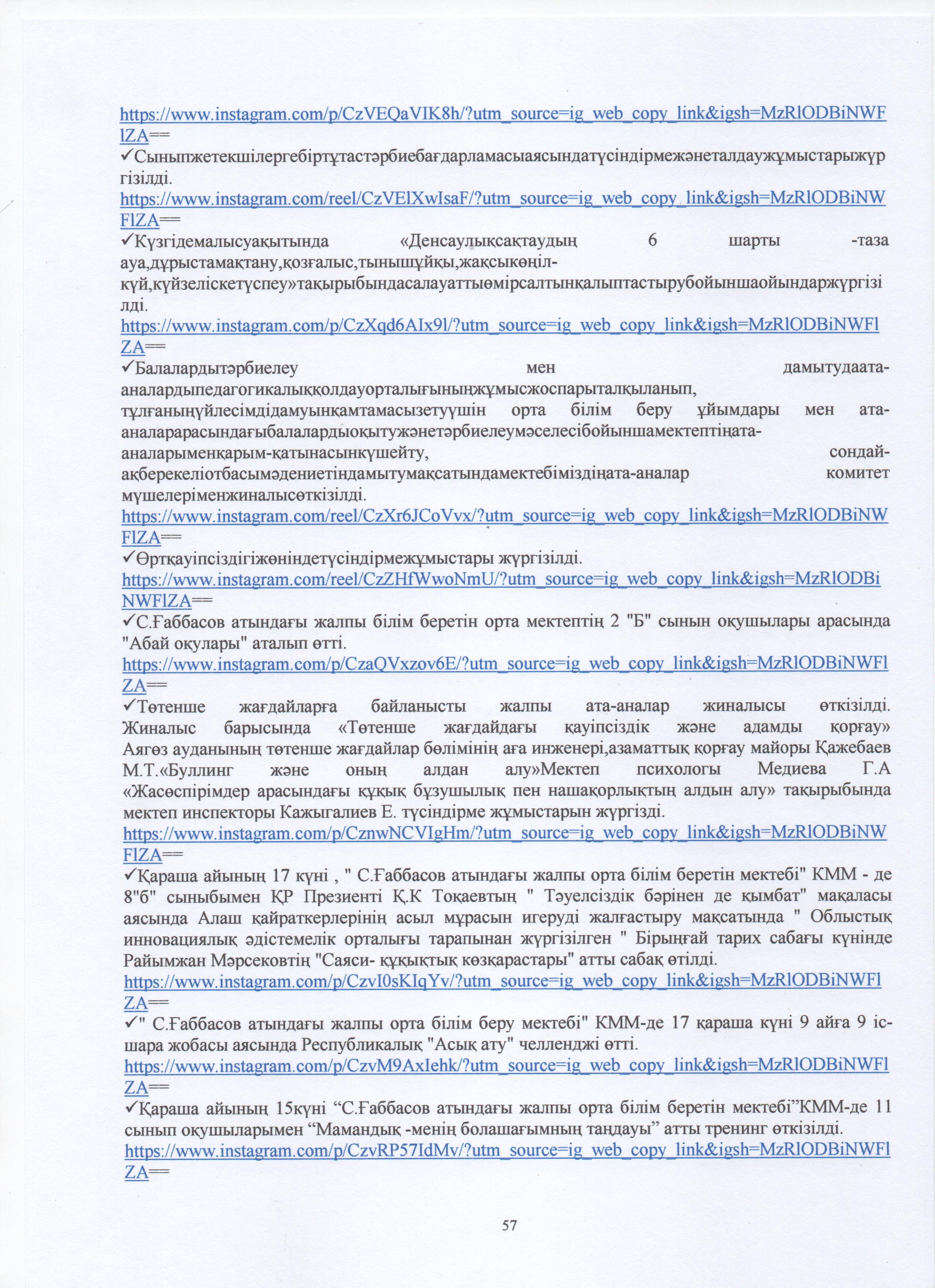 » ӨЗІН-ӨЗІ БАҒАЛАУ МАТЕРИАЛДАРЫ 2024 Жыл