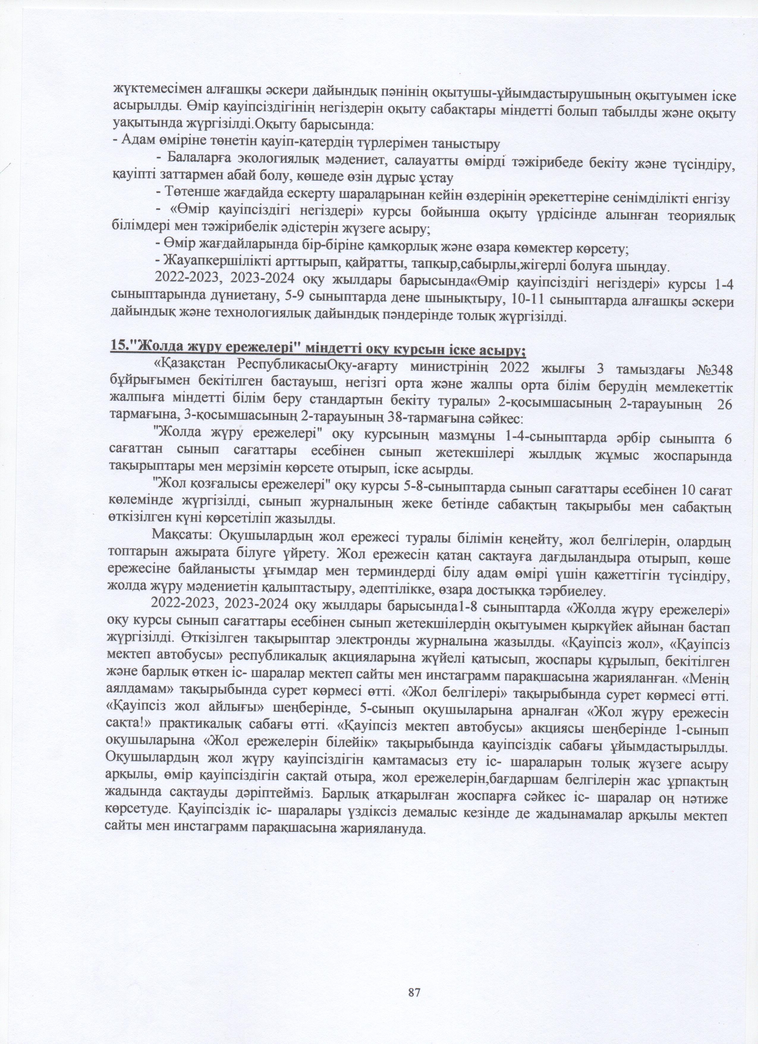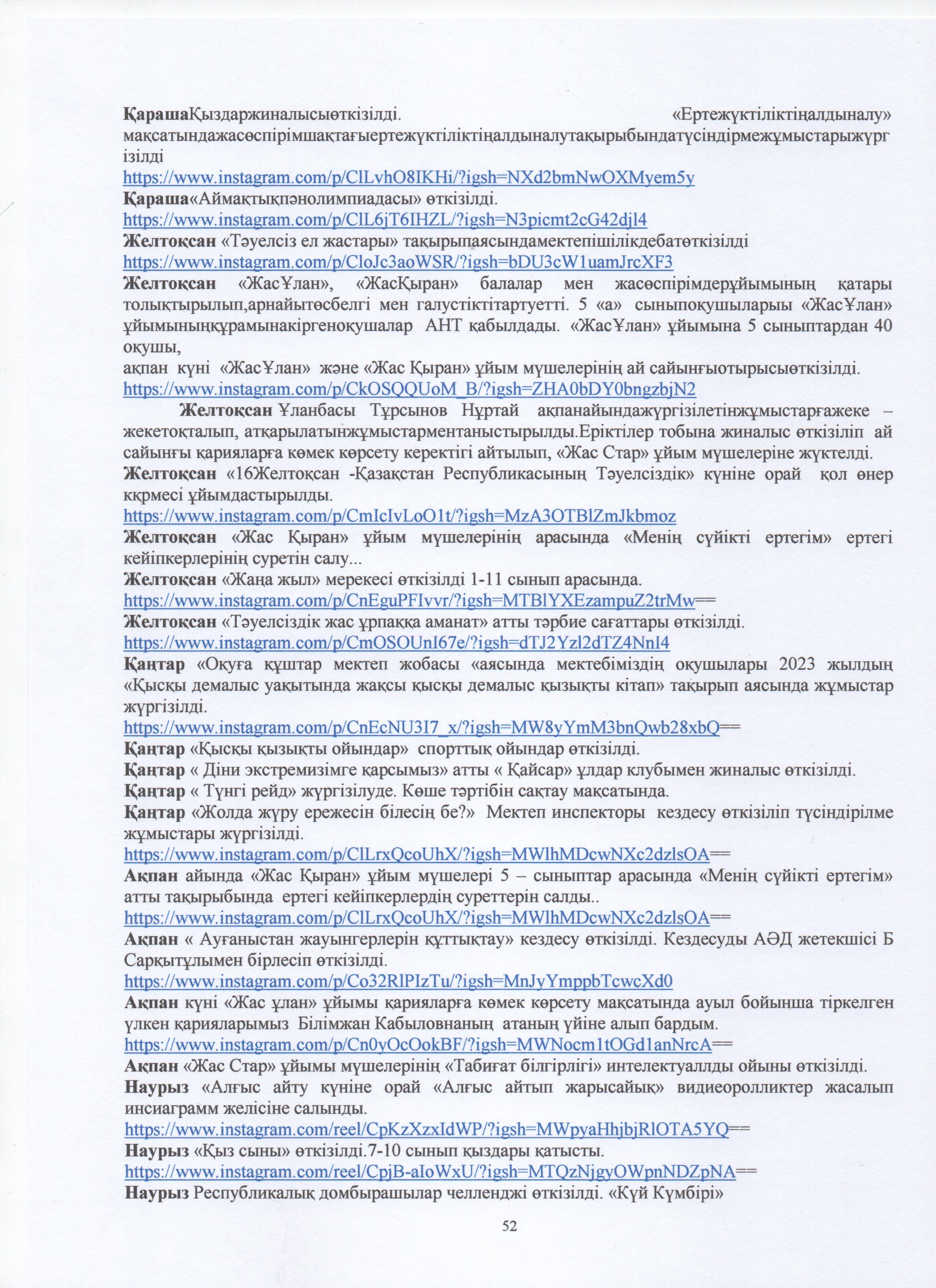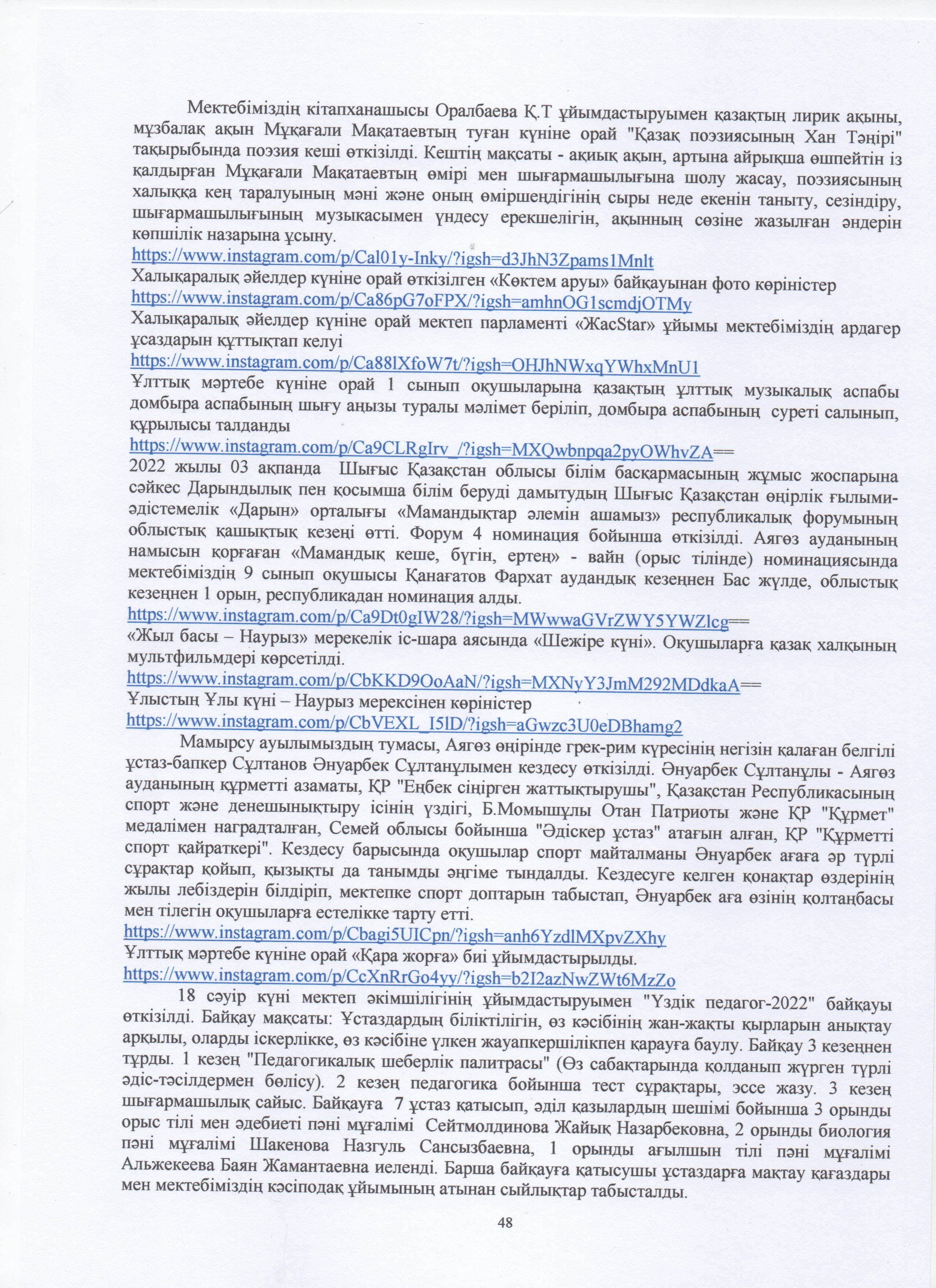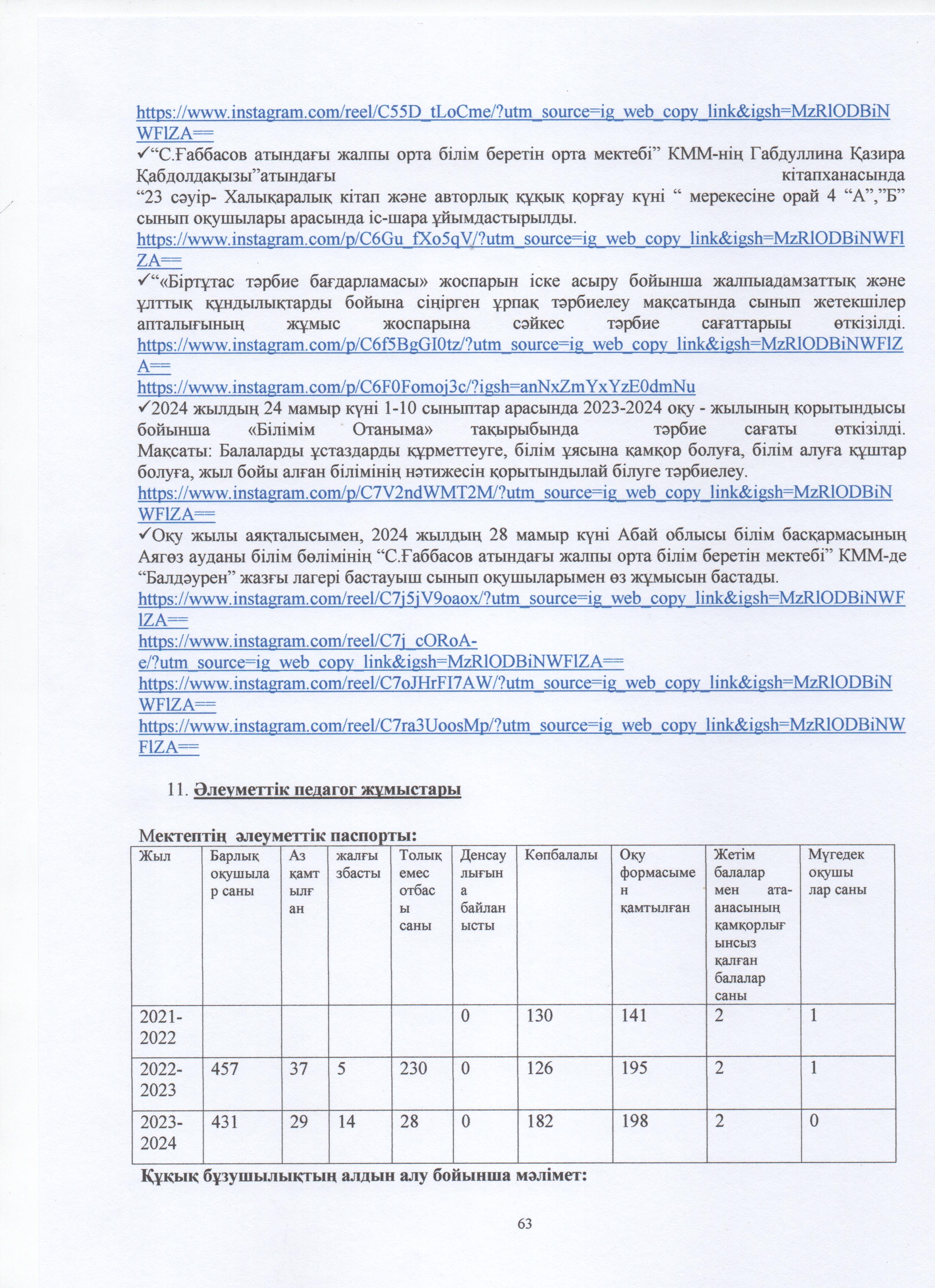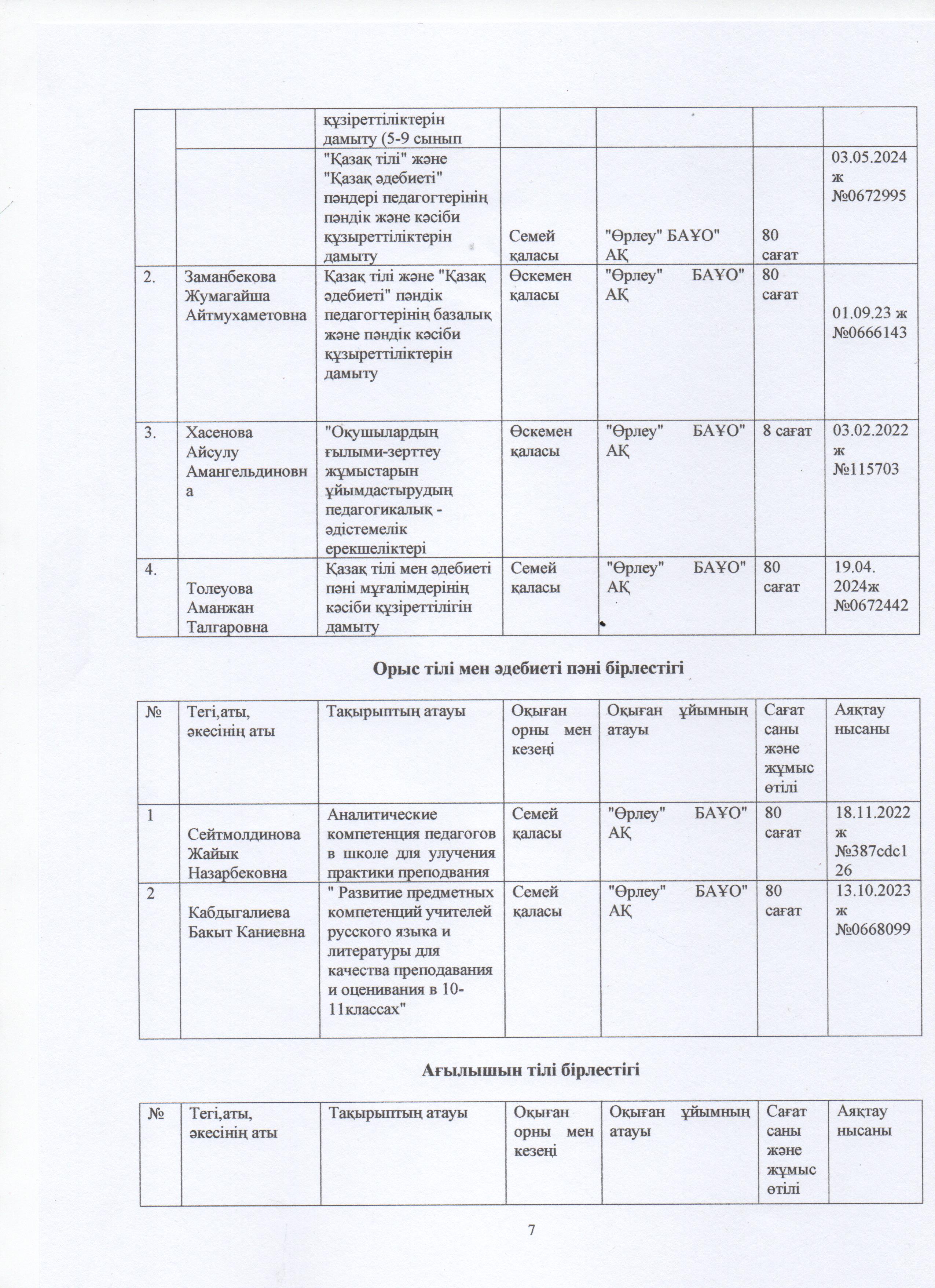 » ӨЗІН-ӨЗІ БАҒАЛАУ МАТЕРИАЛДАРЫ 2024 Жыл