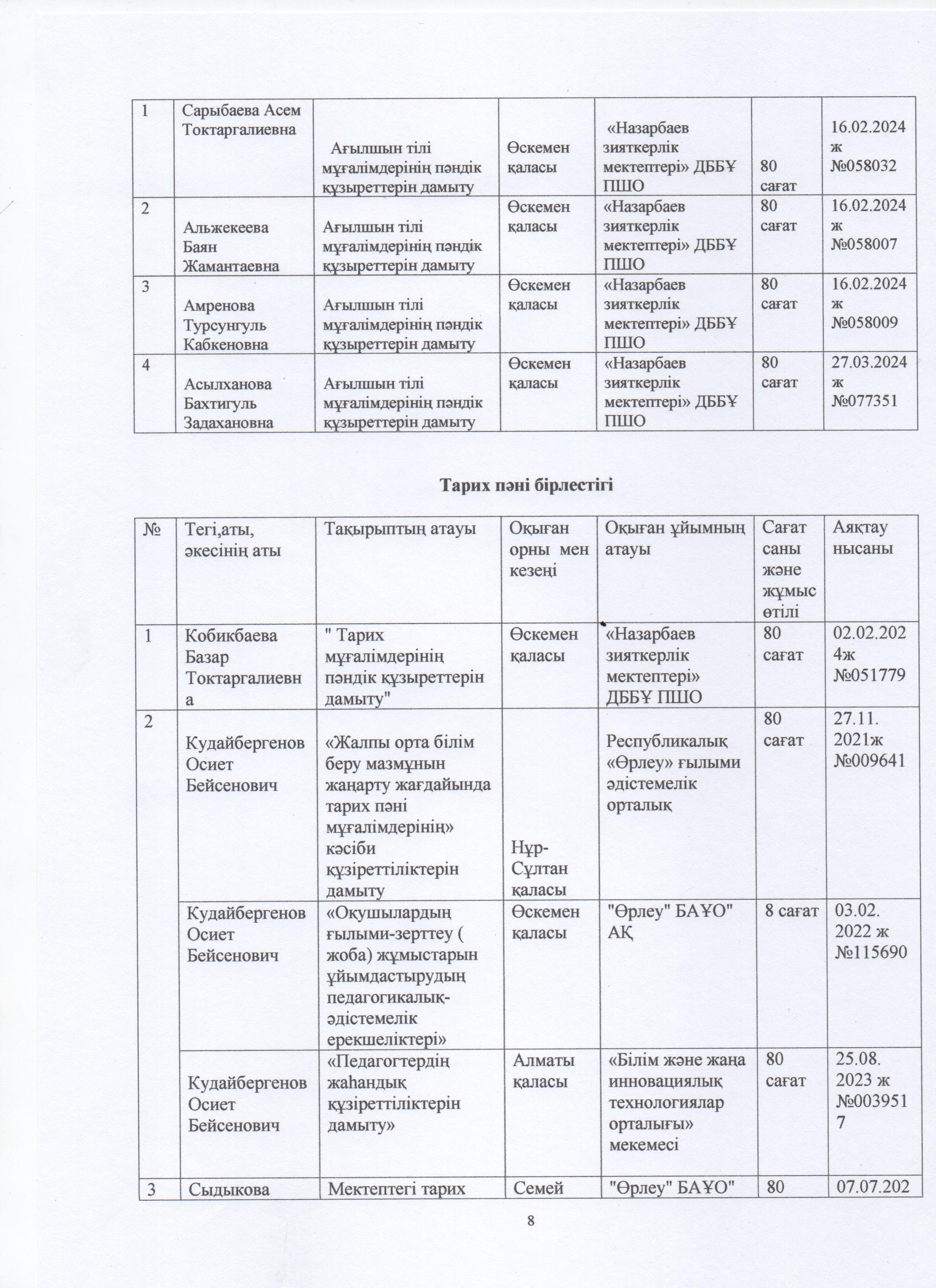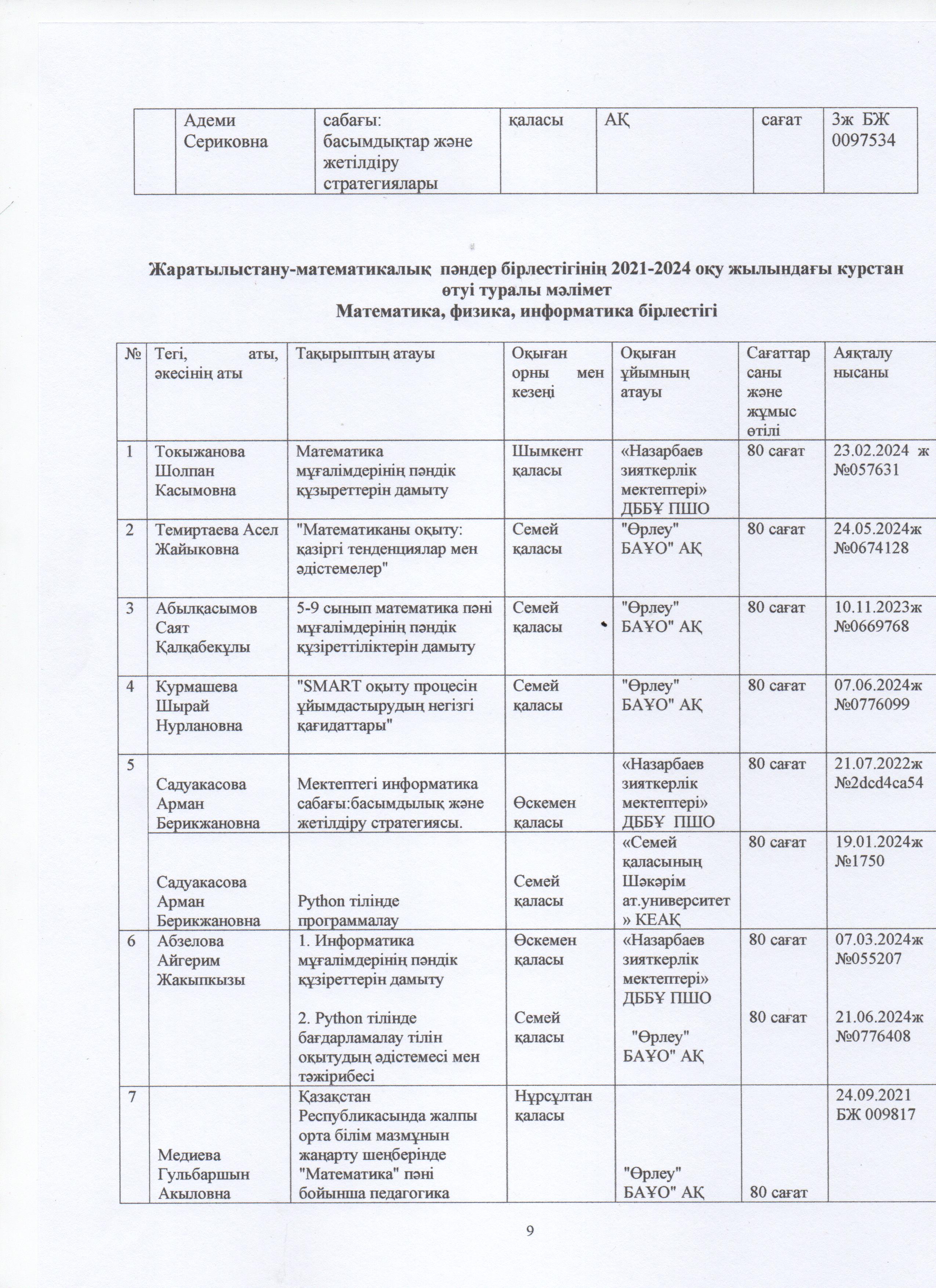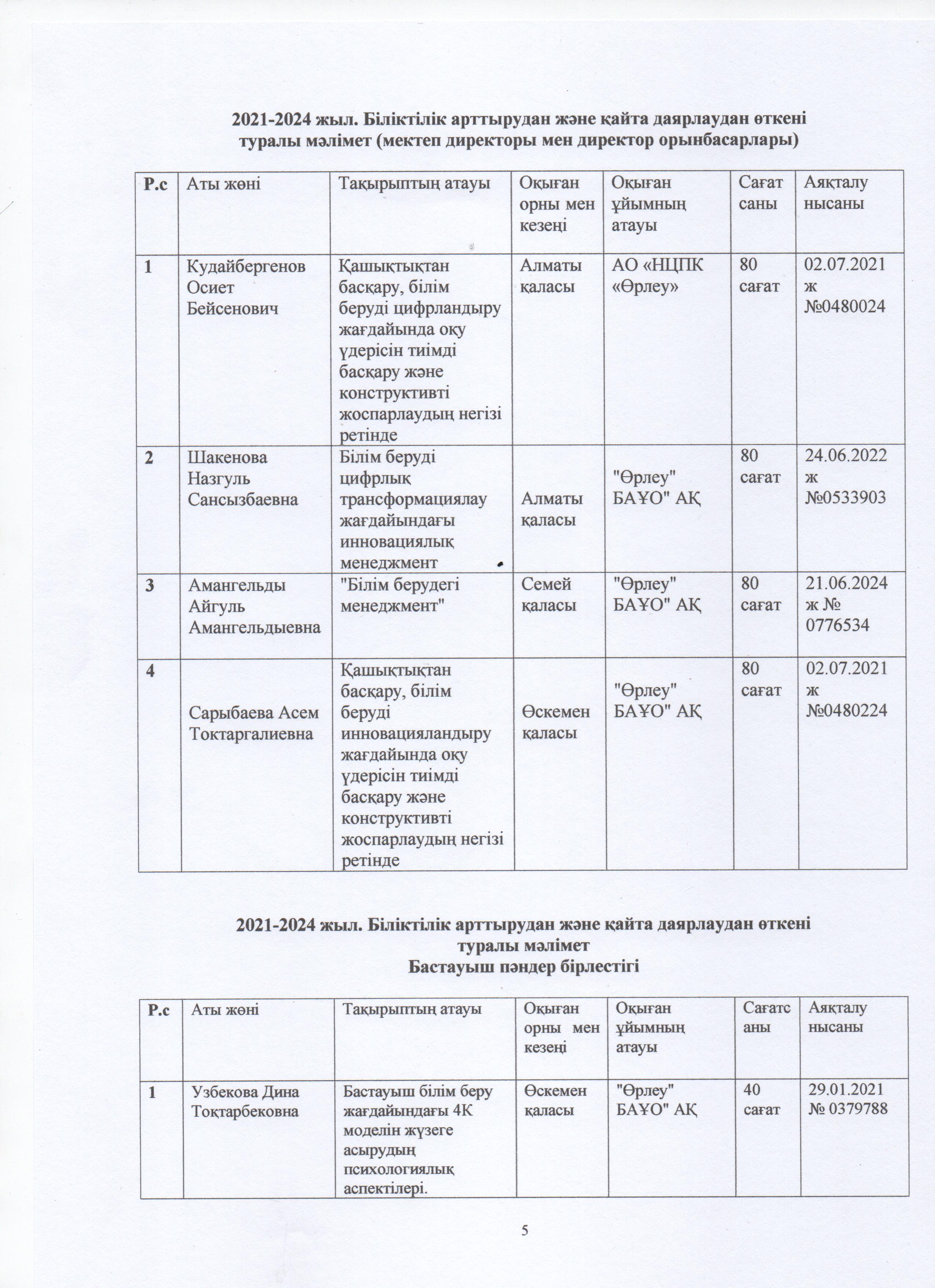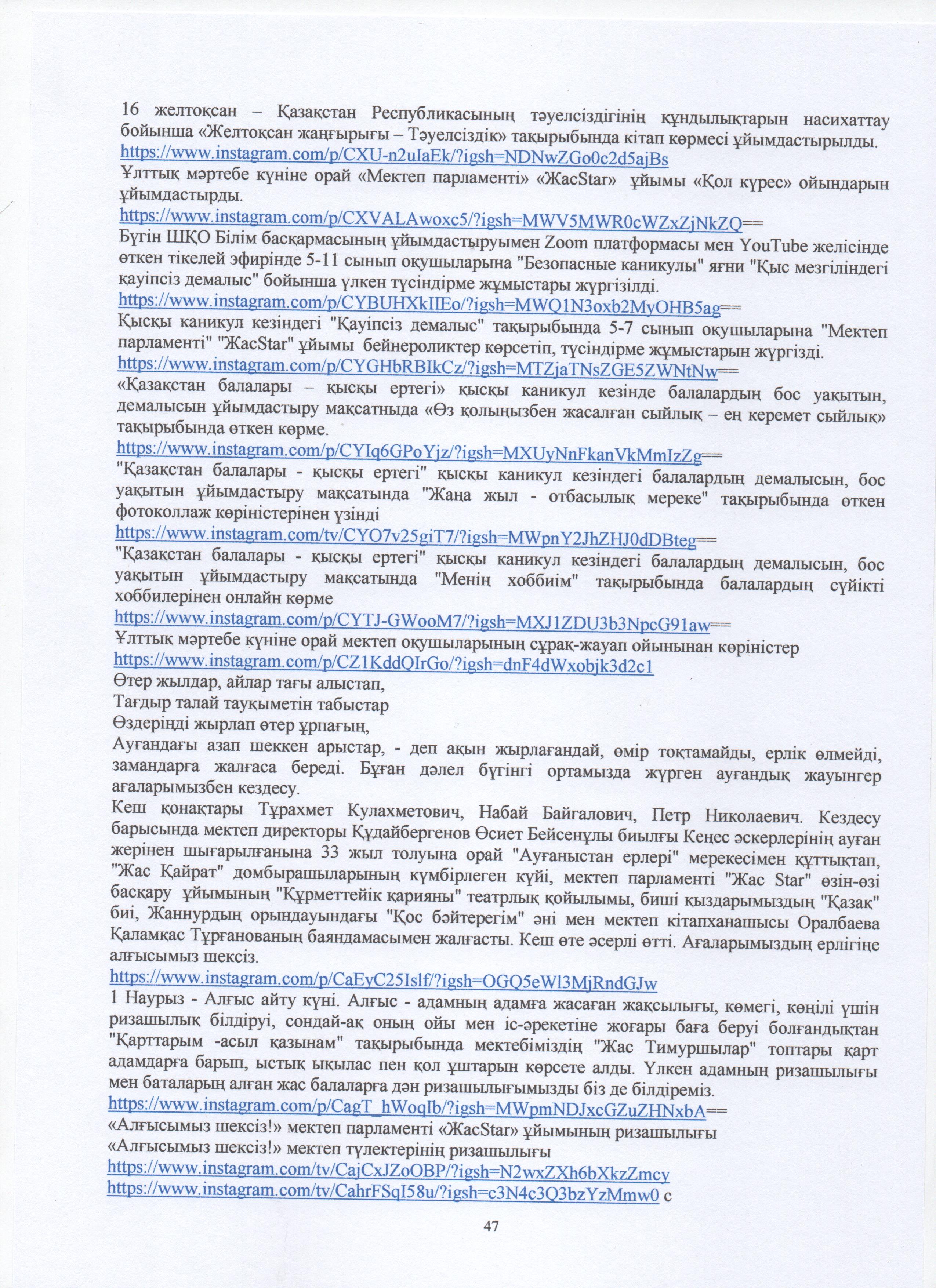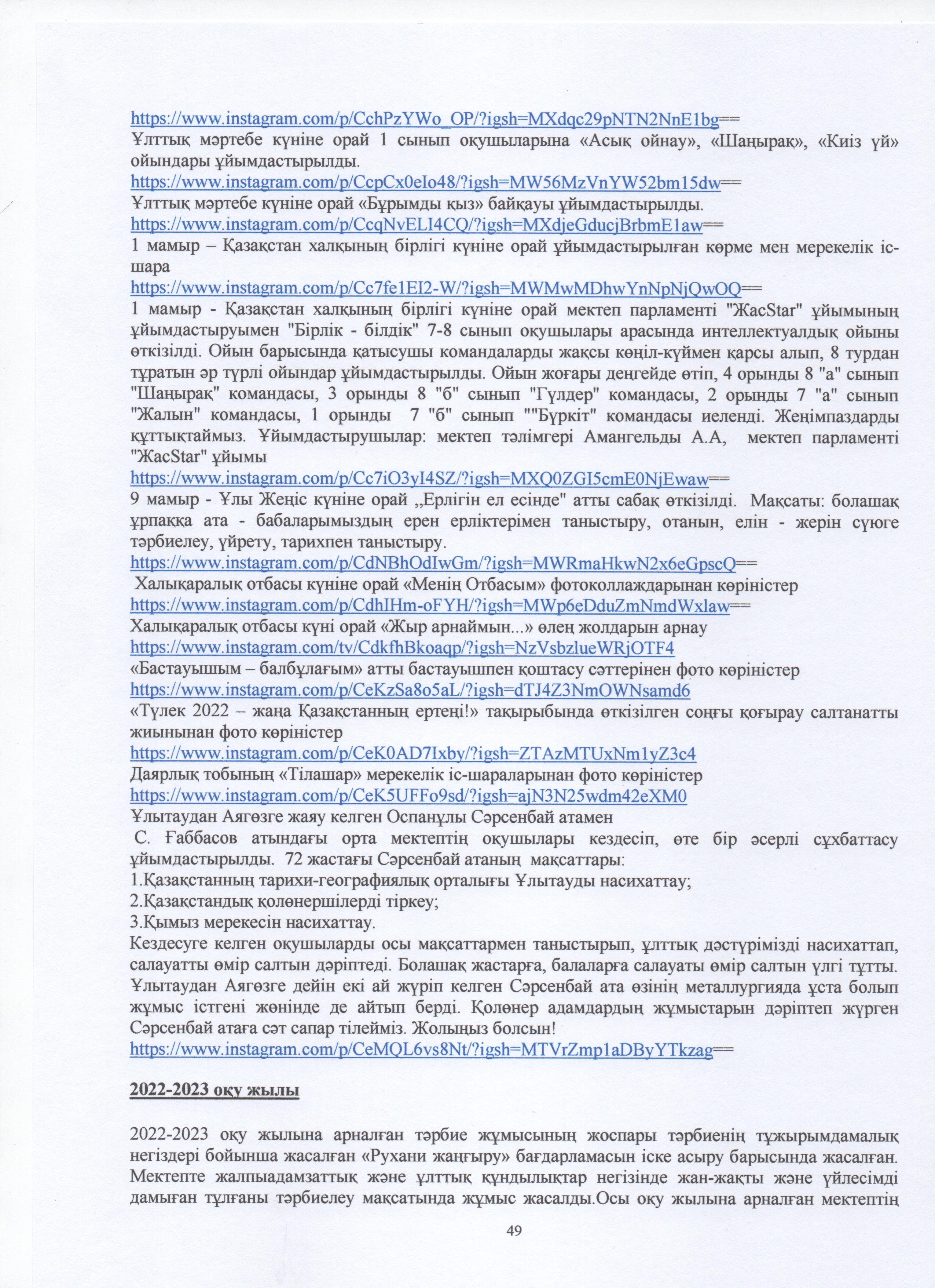 » ӨЗІН-ӨЗІ БАҒАЛАУ МАТЕРИАЛДАРЫ 2024 Жыл