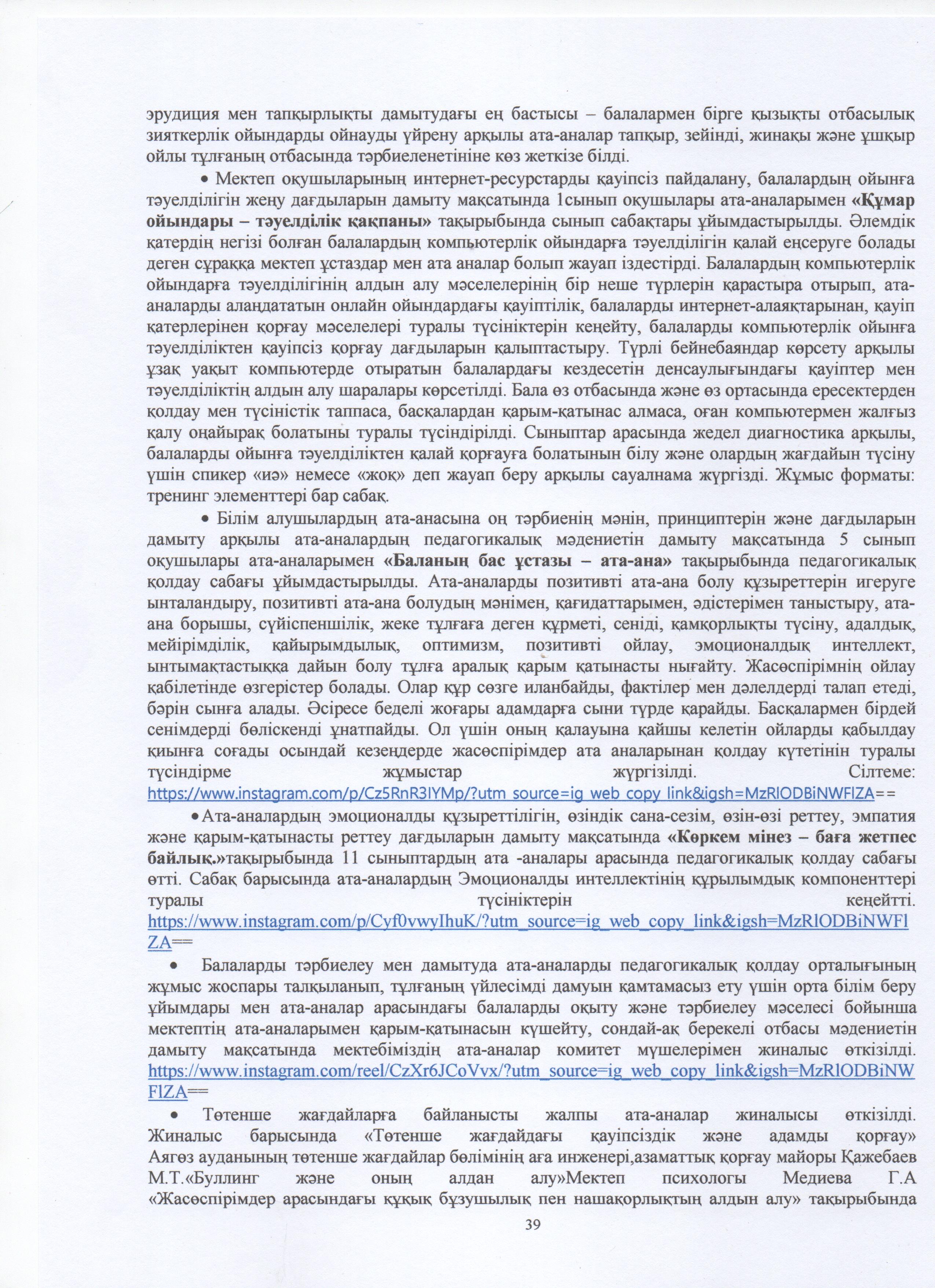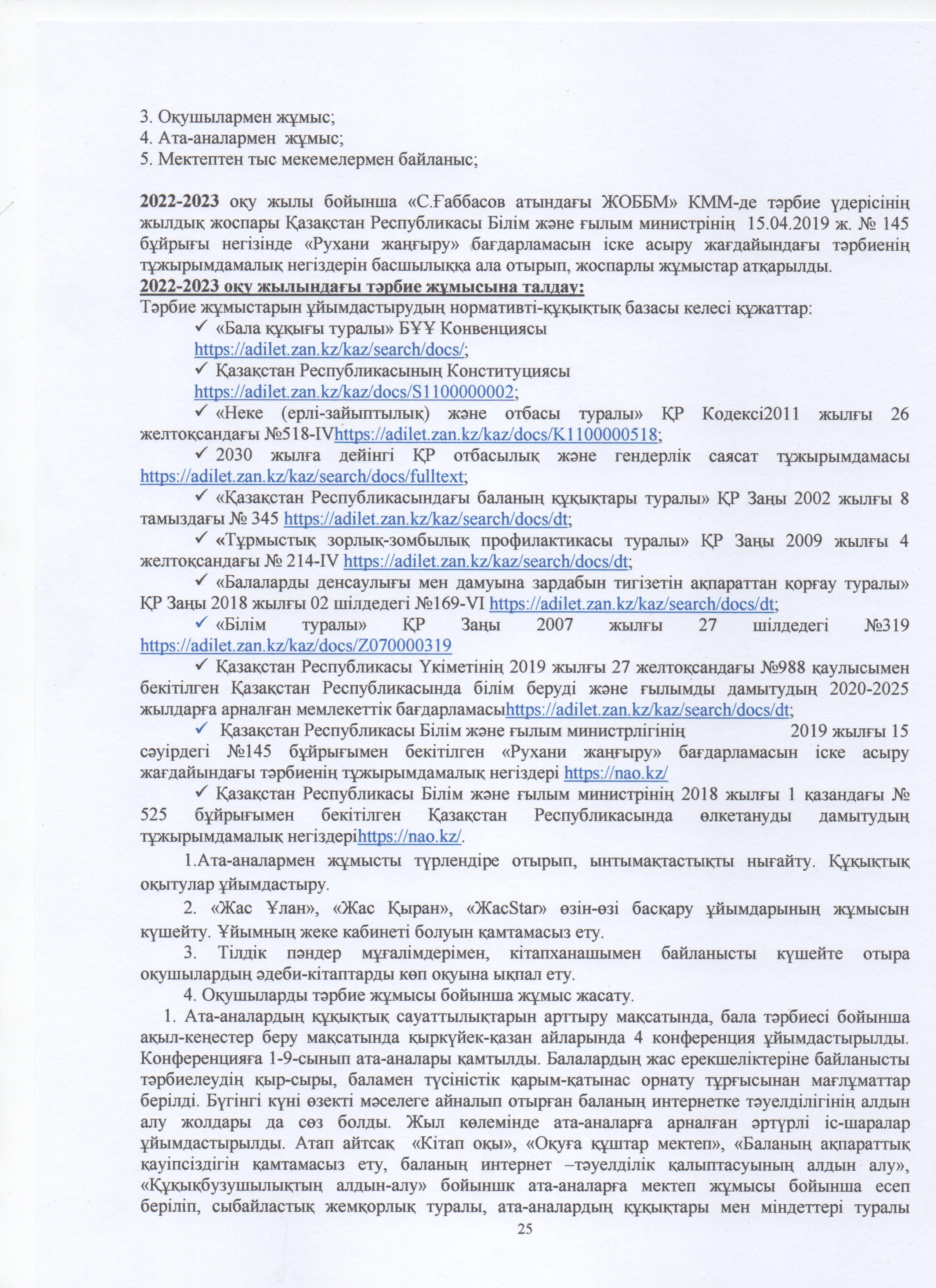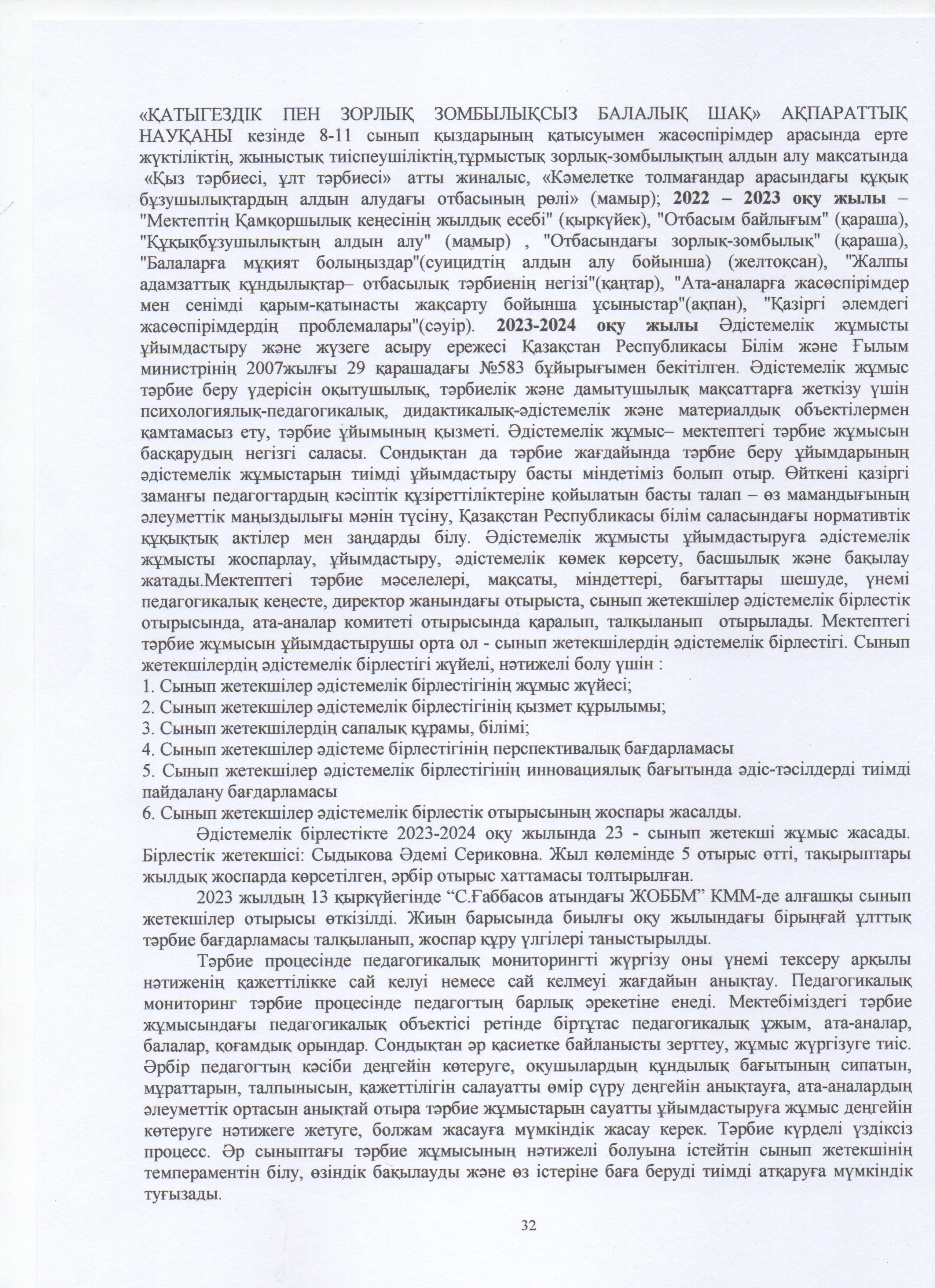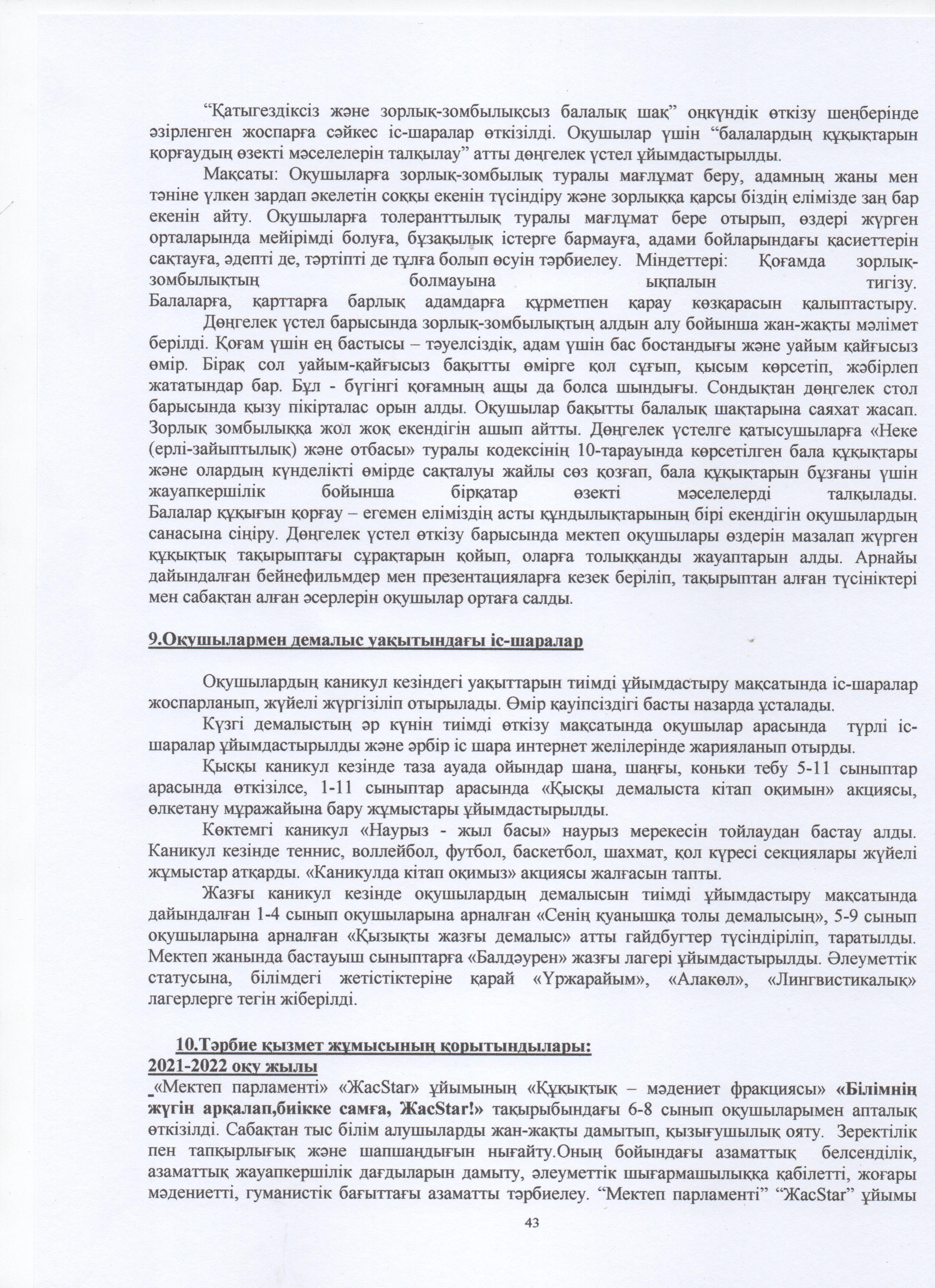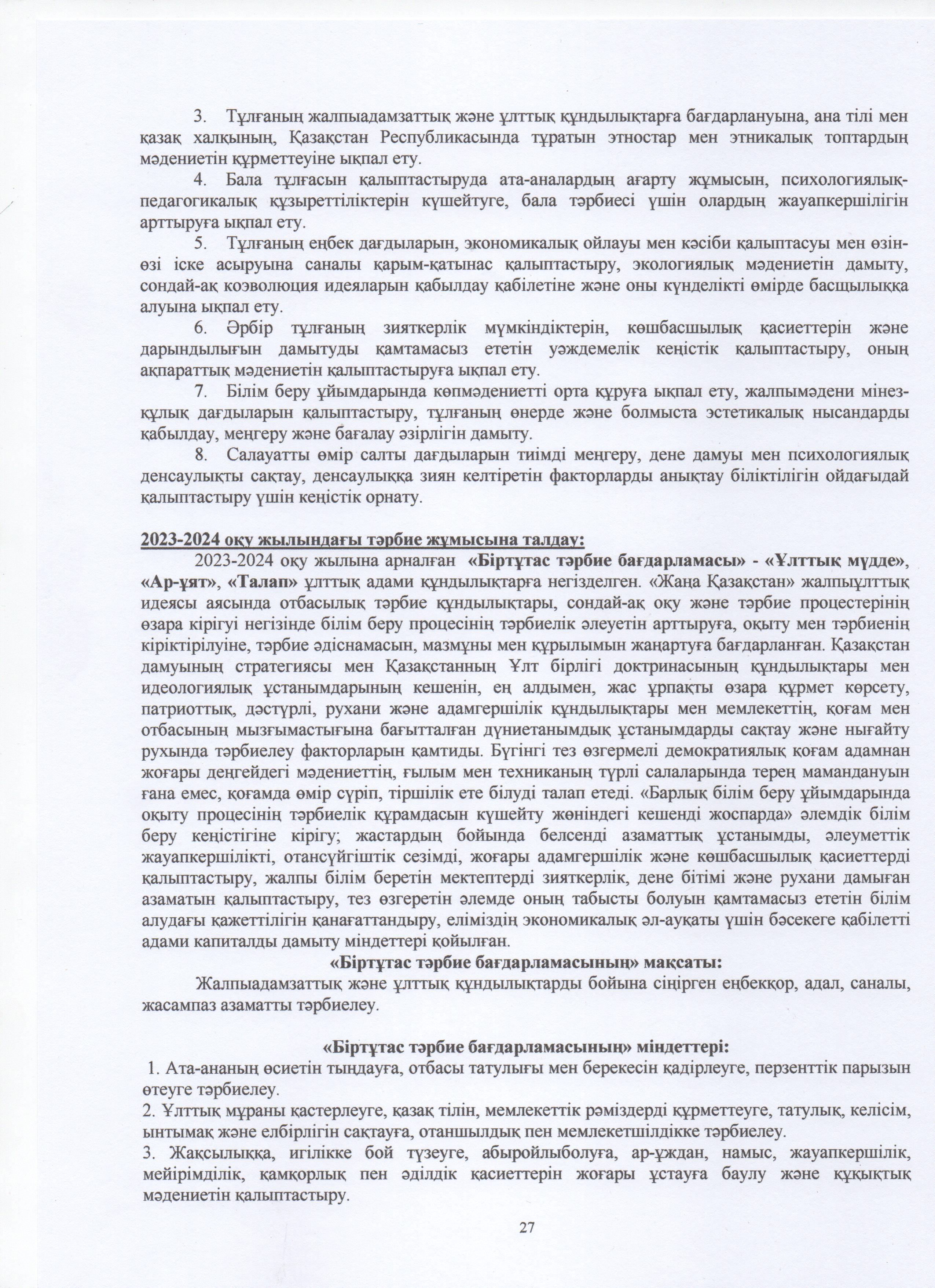ТӘРБИЕ ЖҰМЫСЫ