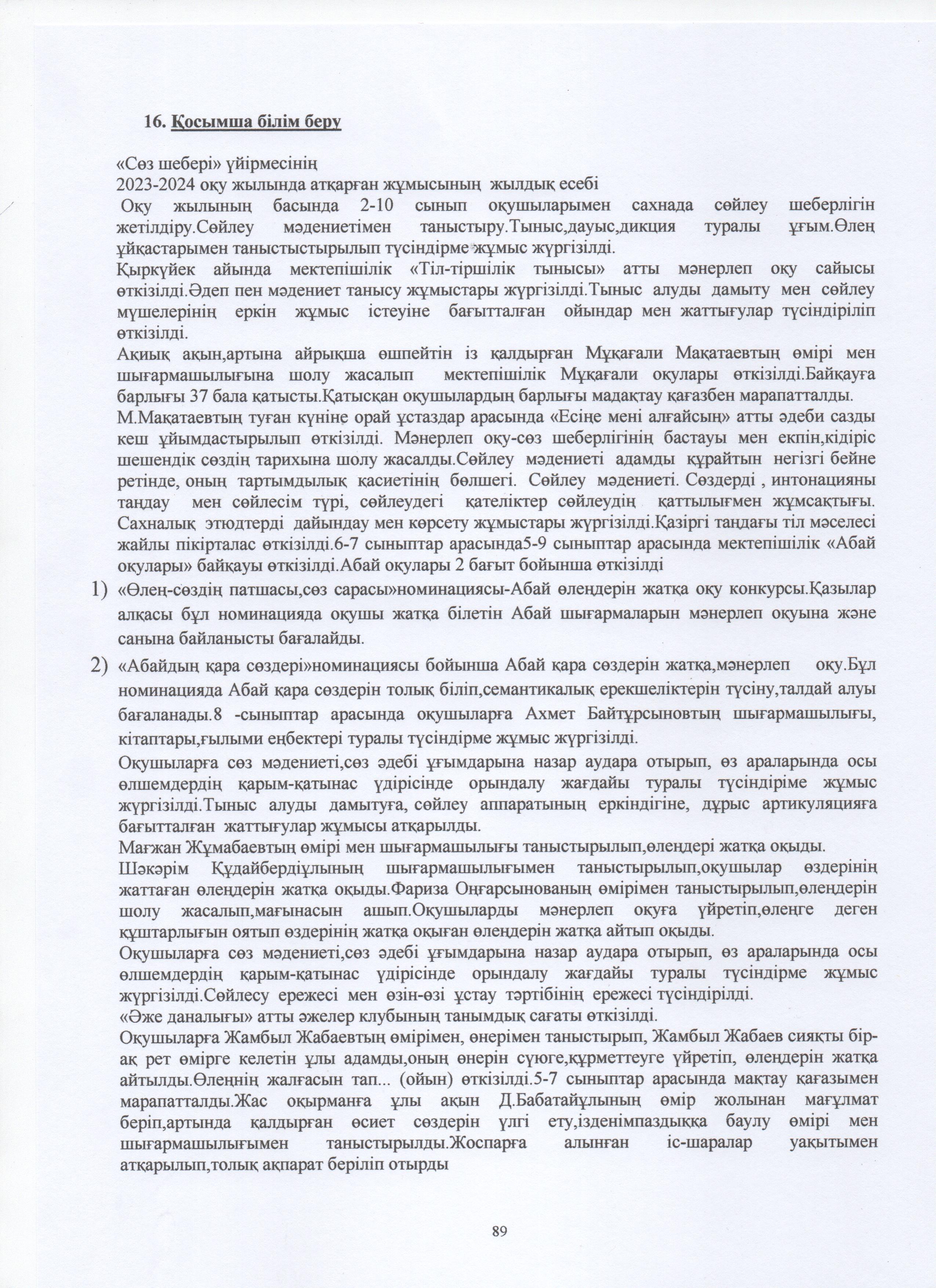 ӨЗІН-ӨЗІ БАҒАЛАУ МАТЕРИАЛДАРЫ 2024 Жыл