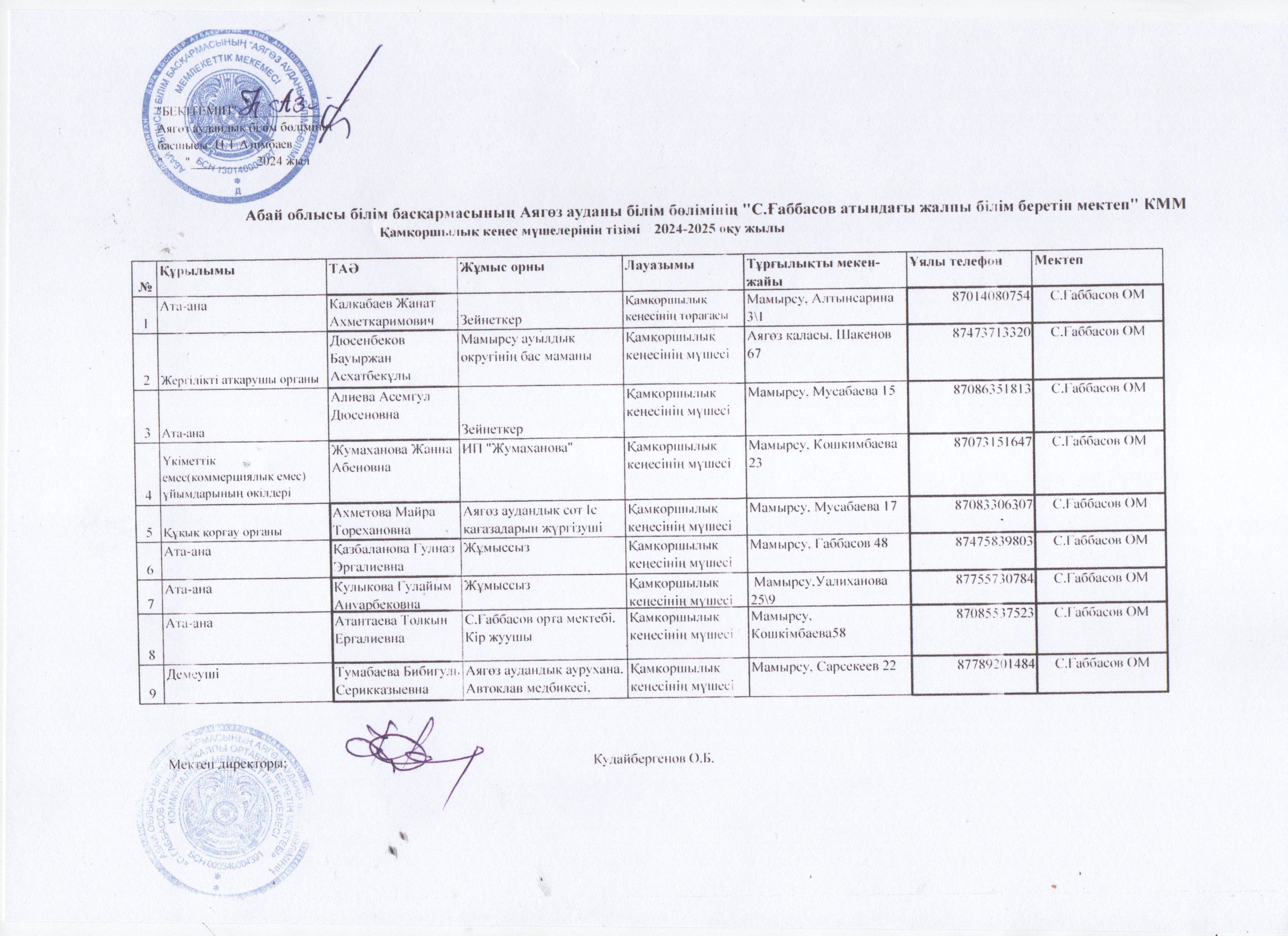 2024-2025 оқу жылындағы қамқоршылық кеңес мүшелерінің тізімдері