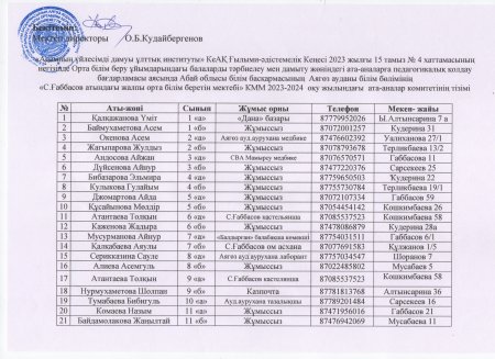 «Ата-аналарды педагогикалық қолдау орталығы" жұмысын ұйымдастыру бойынша 1-11 сынып оқушыларының ата-аналар комиттерінің тізімі